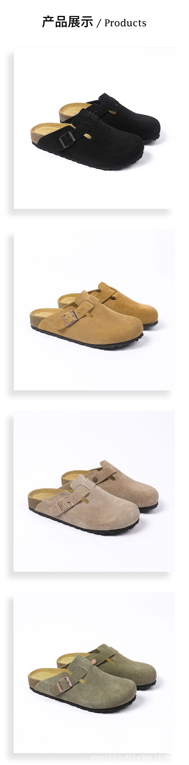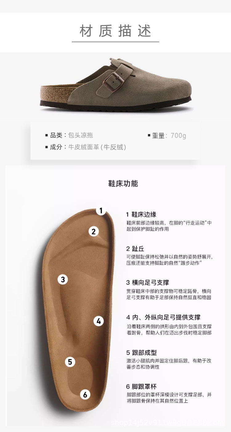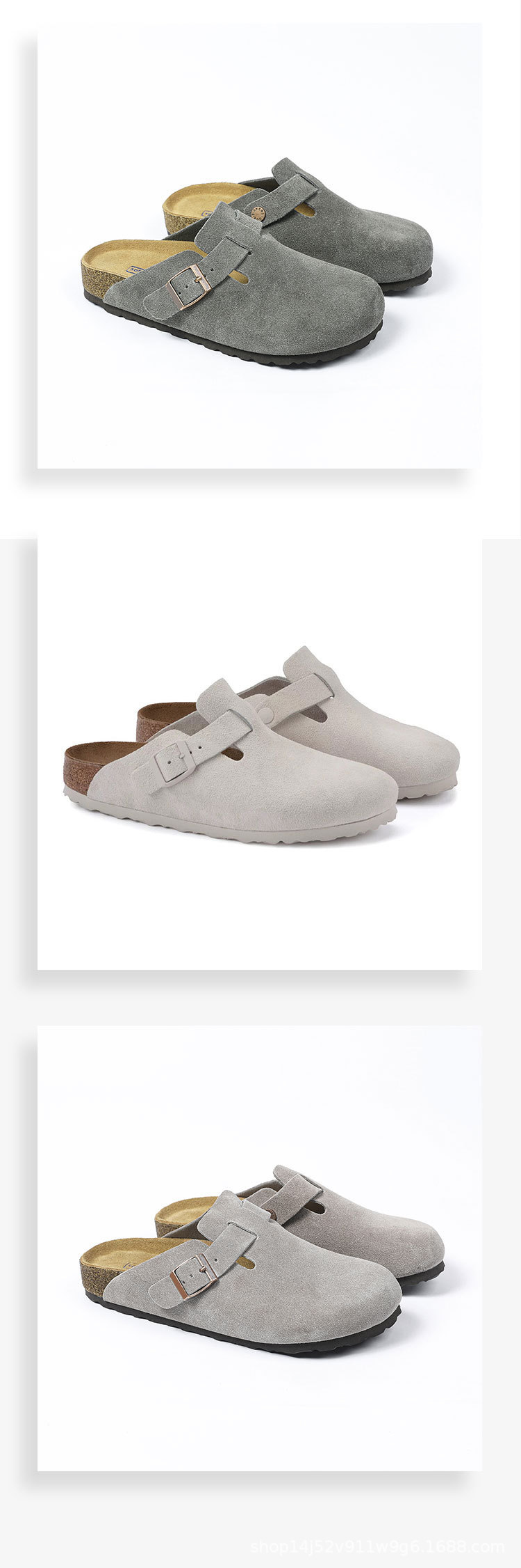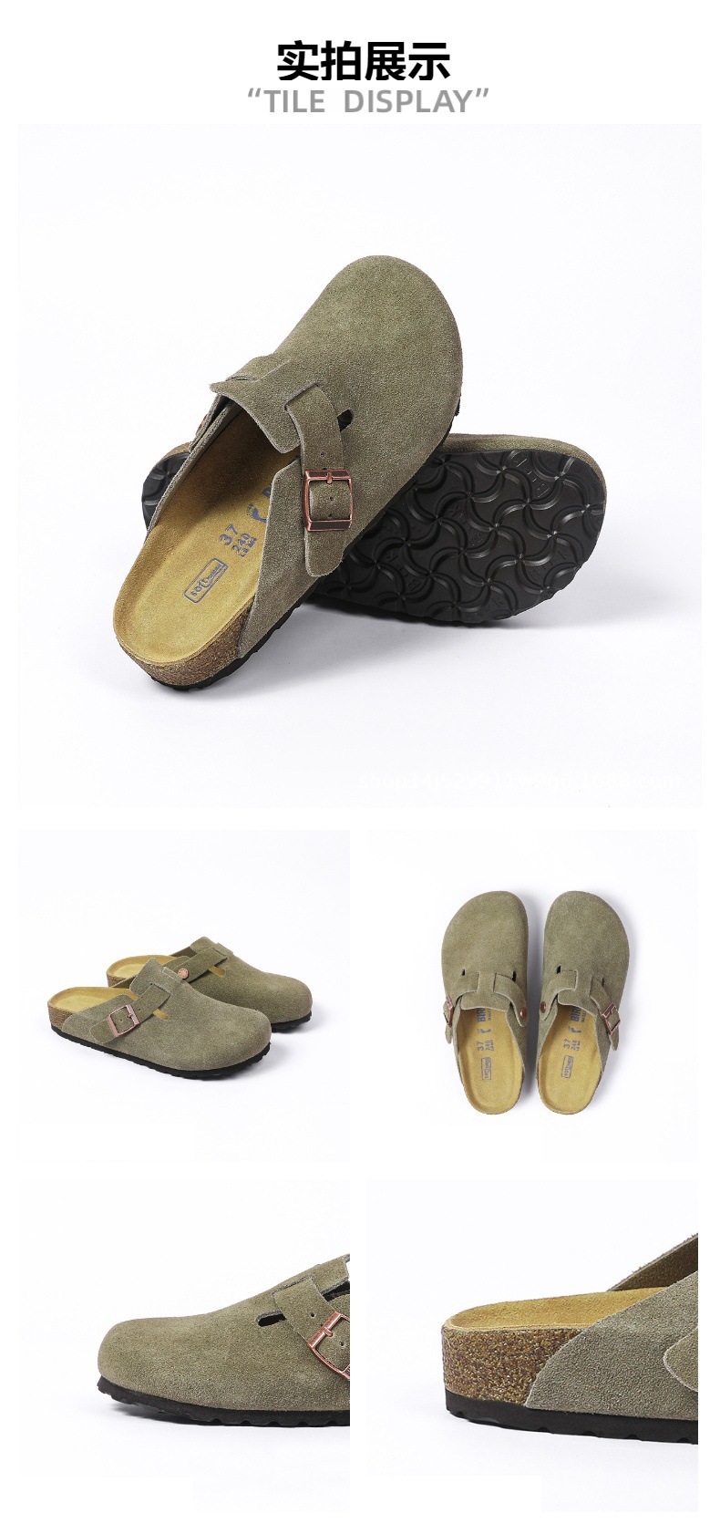 BK外贸现货全牛皮男女外穿半拖软木真皮勃肯鞋包头博肯拖鞋Boston