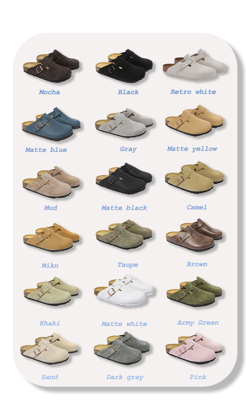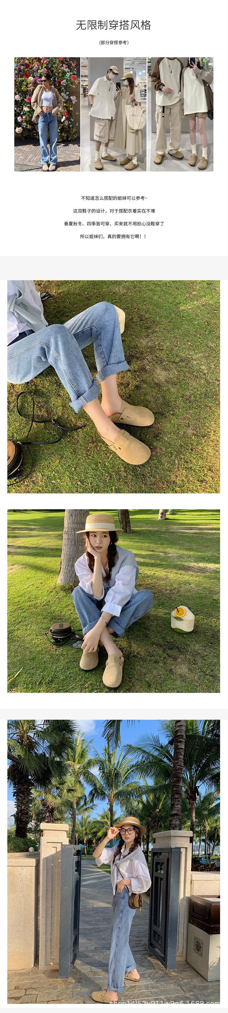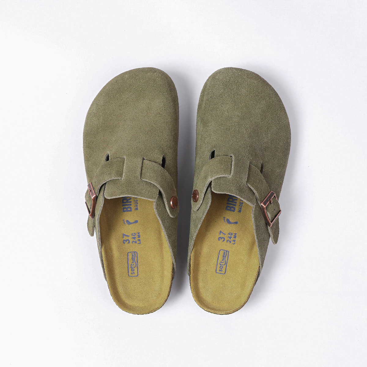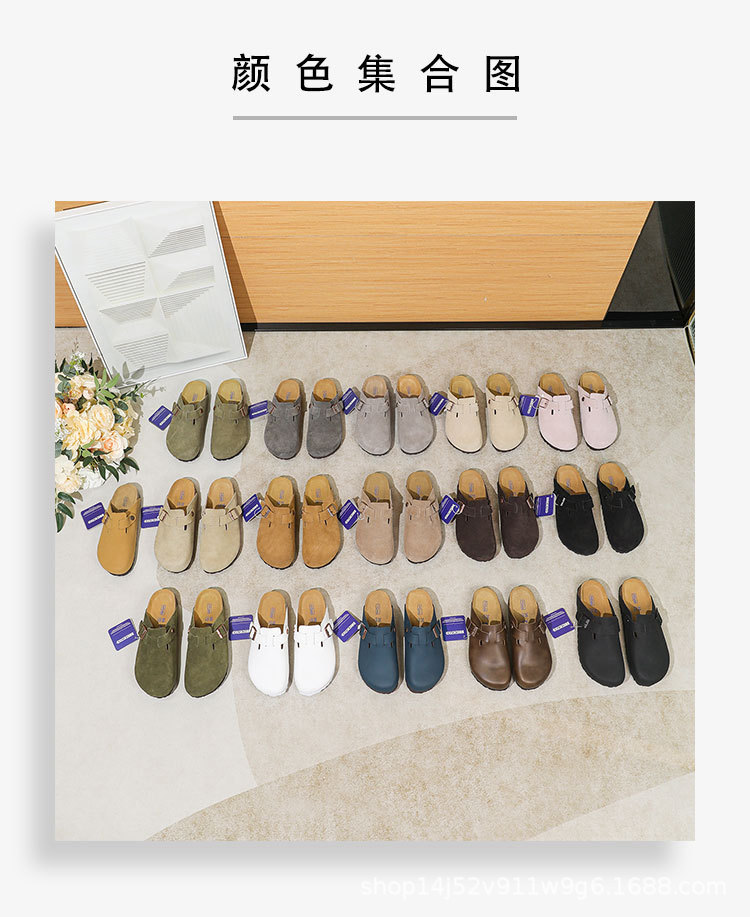 BK外贸现货全牛皮男女外穿半拖软木真皮勃肯鞋包头博肯拖鞋Boston
