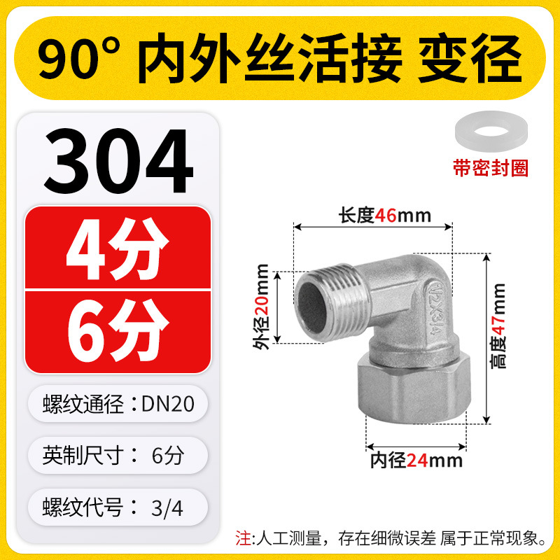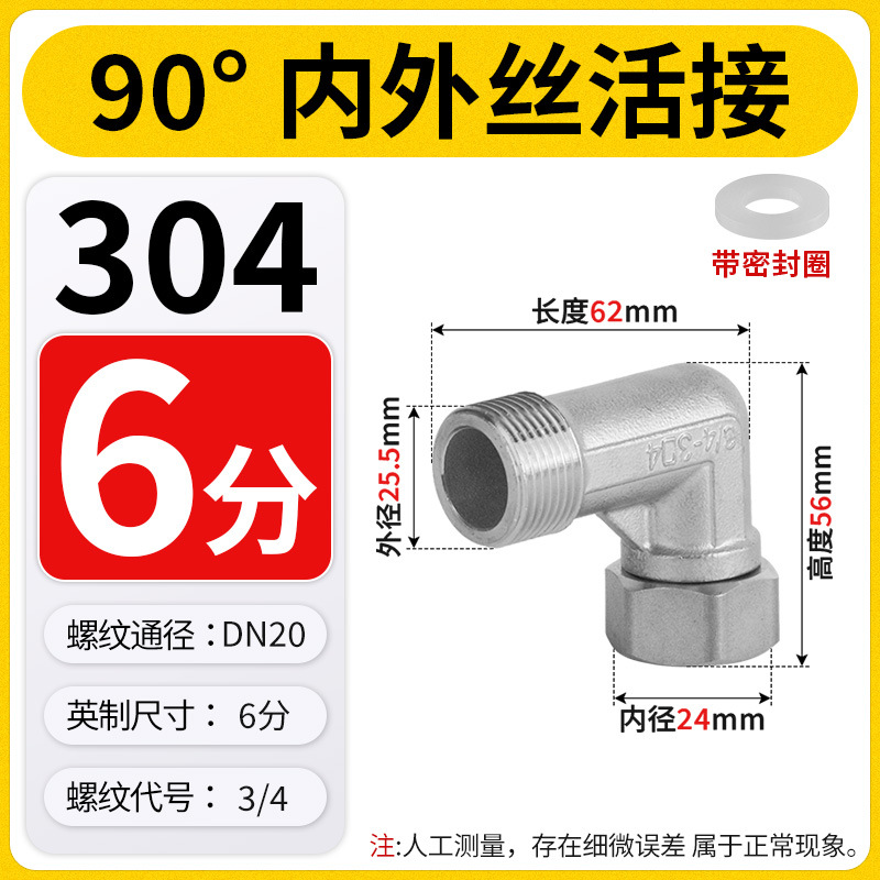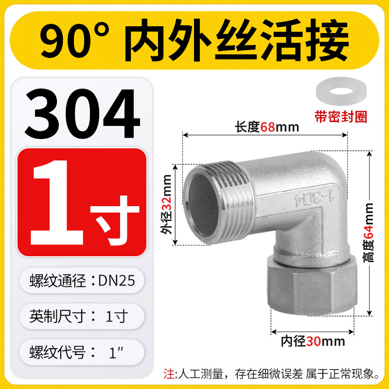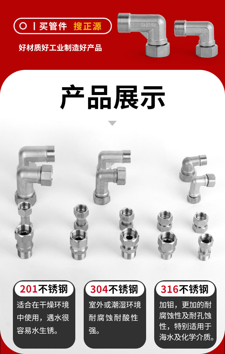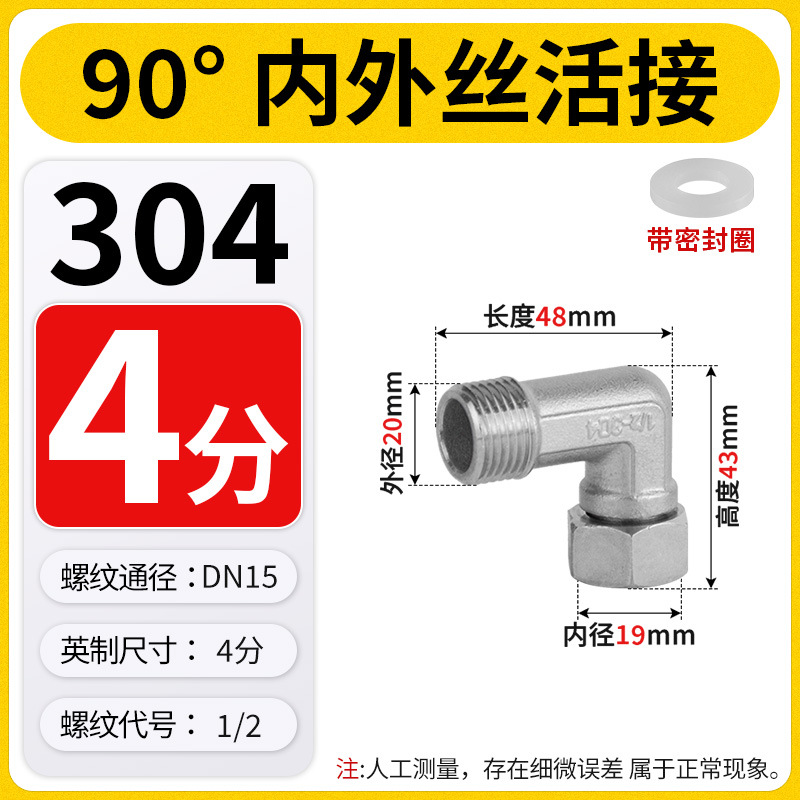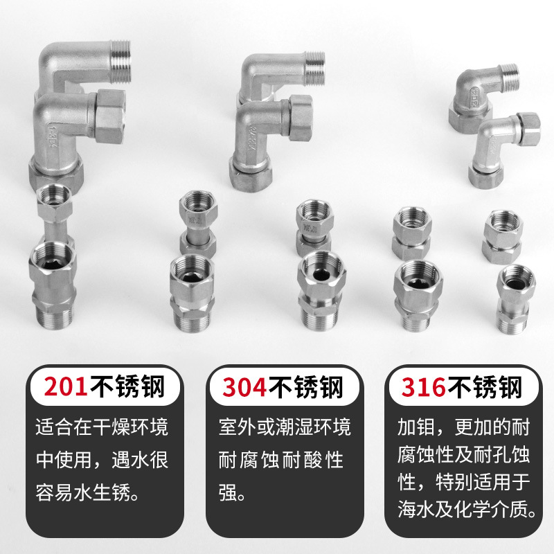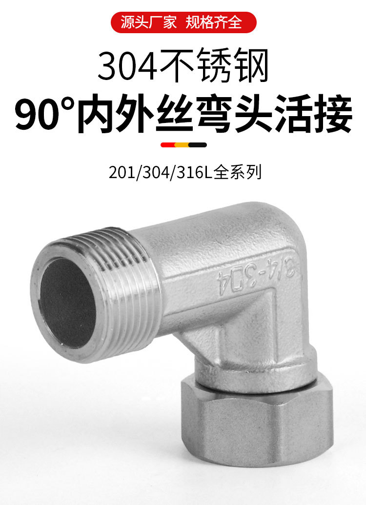 304不锈钢活接弯头90度水龙头4分直角双内外丝水管角阀活接头管件