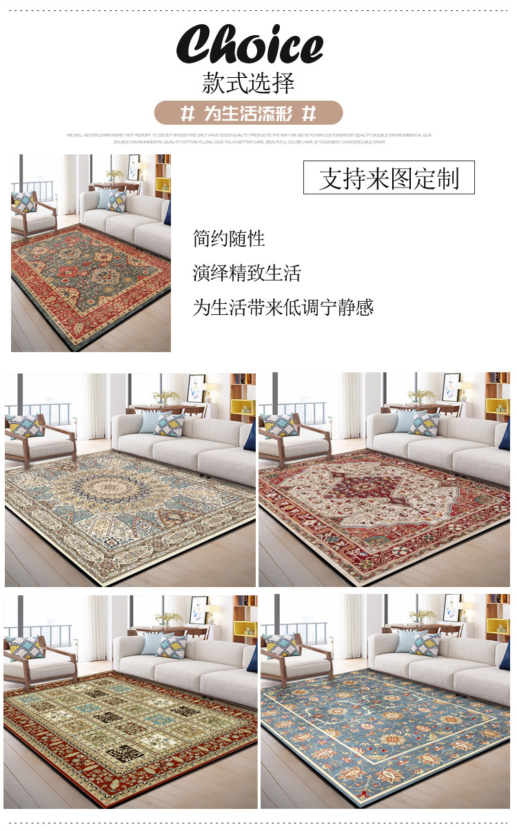 波斯客厅地毯卧室床边沙发茶几书房满铺中式复古欧美高档北欧全铺
