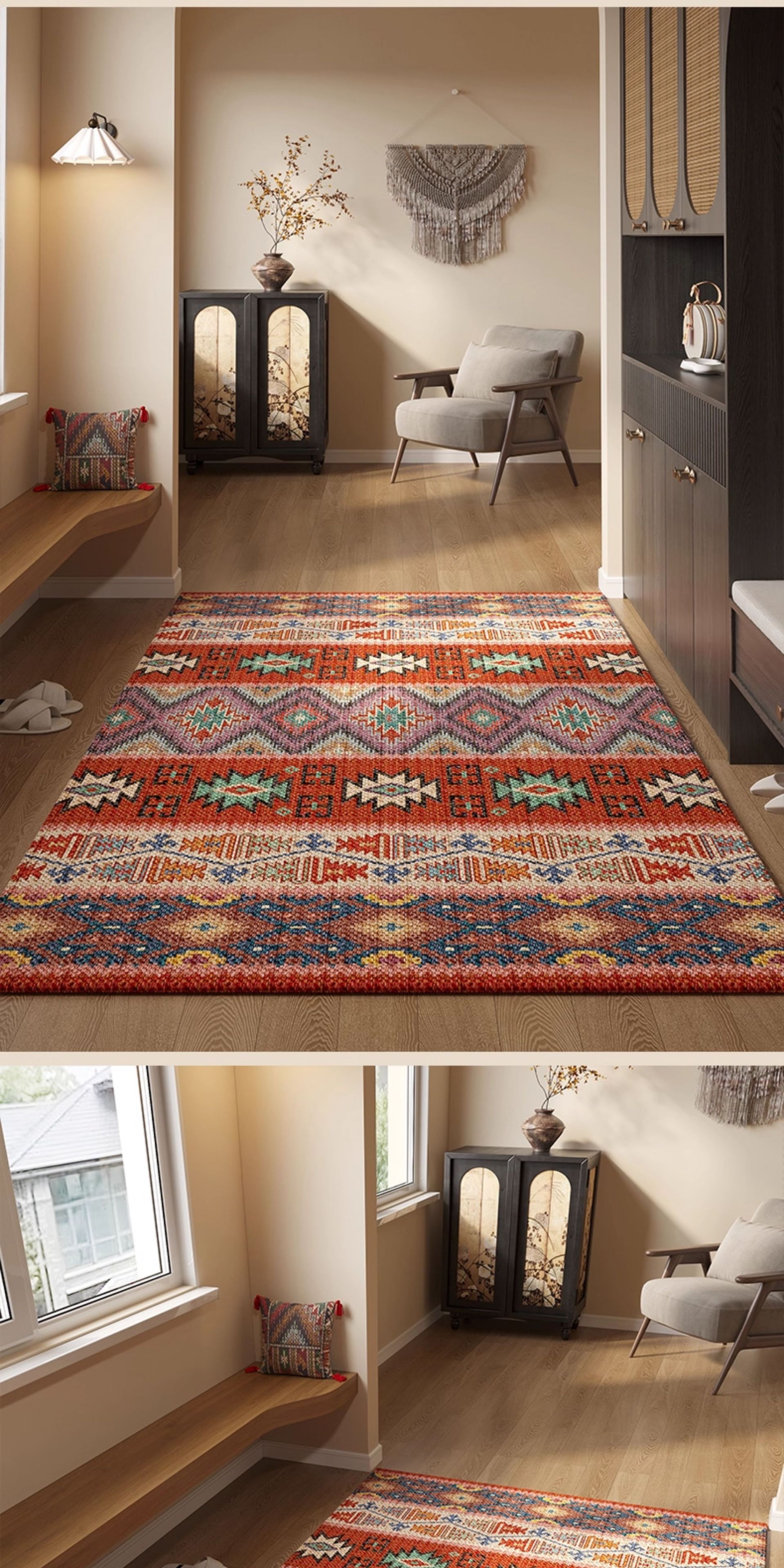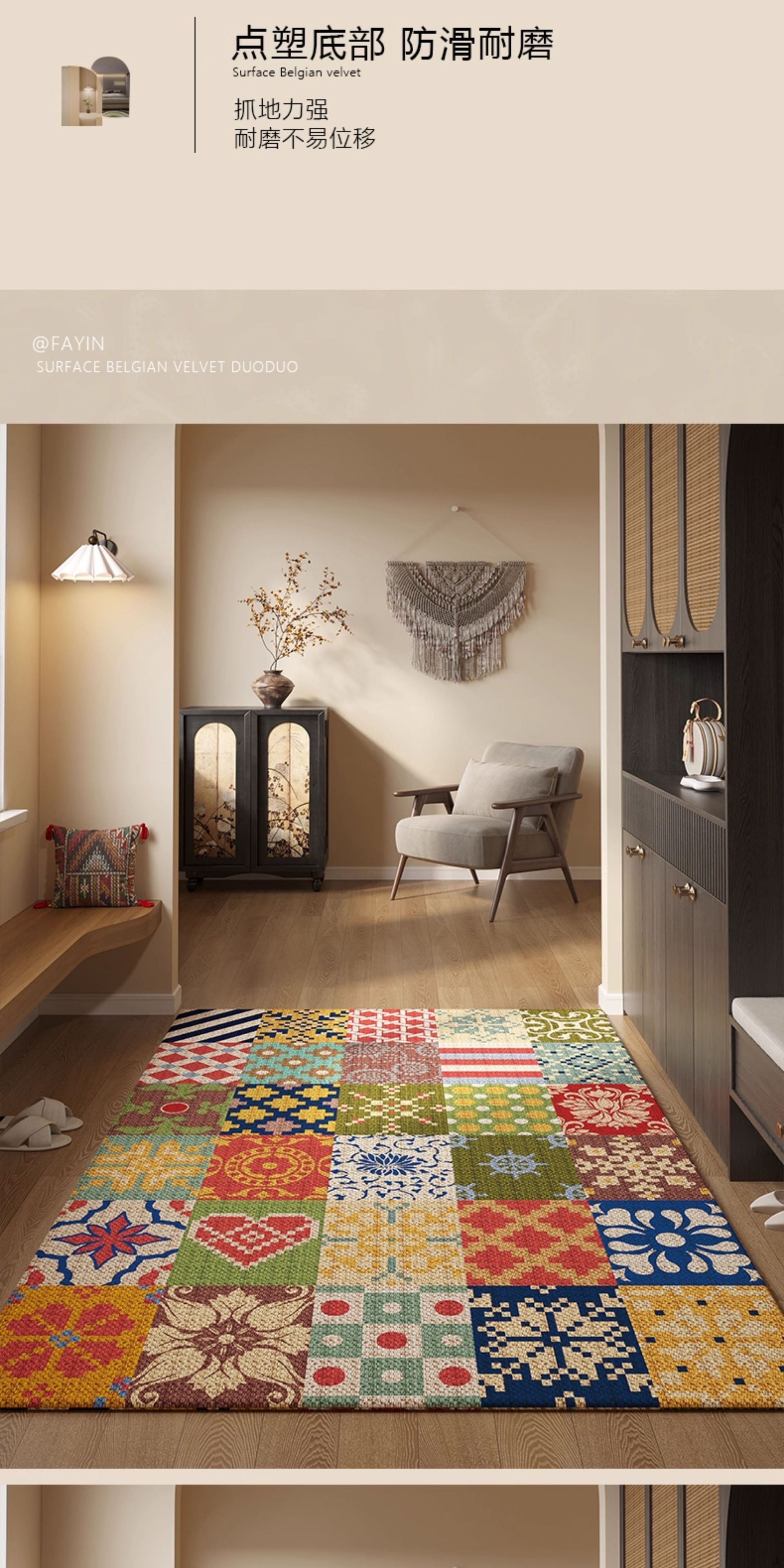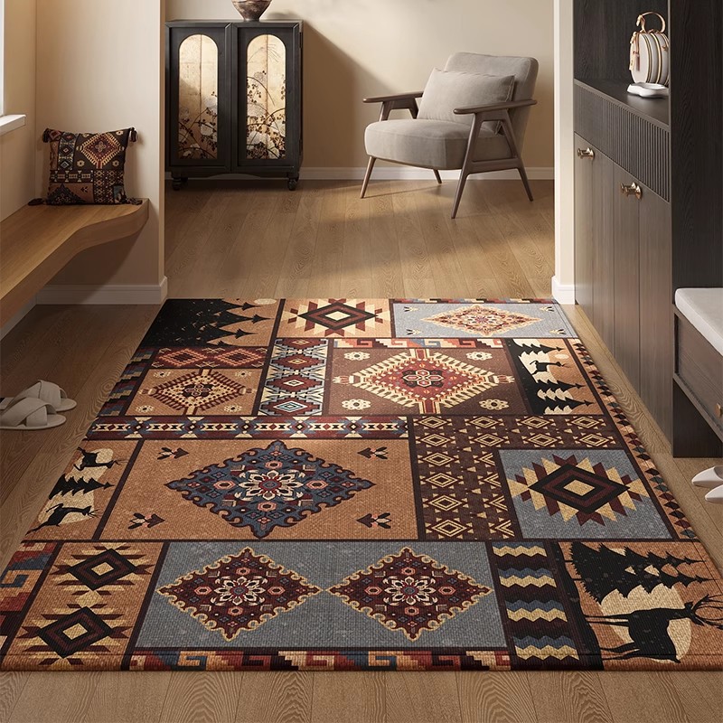 亚马逊热销玄关门垫吸水防滑民族风脚垫耐脏耐磨水晶绒波斯地毯