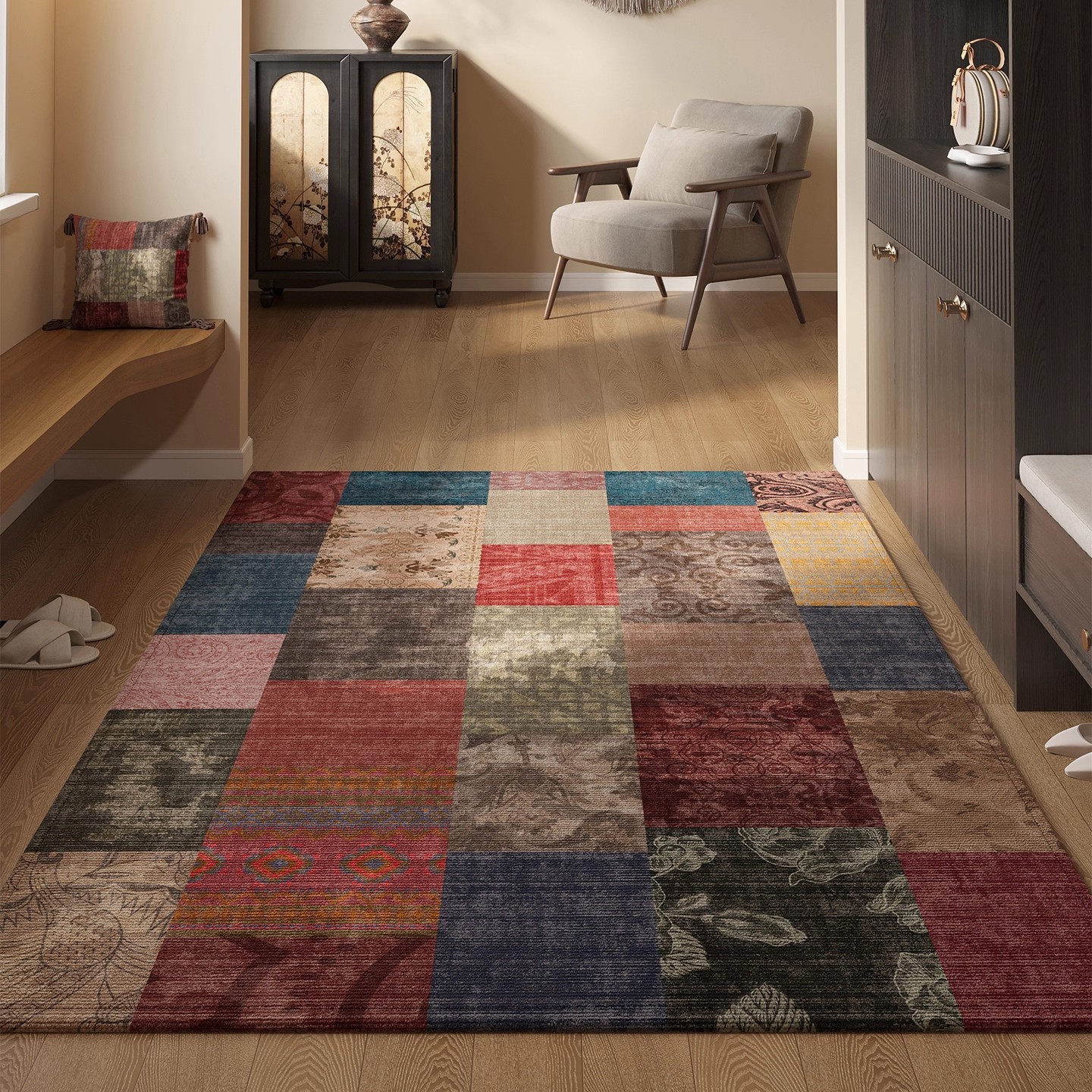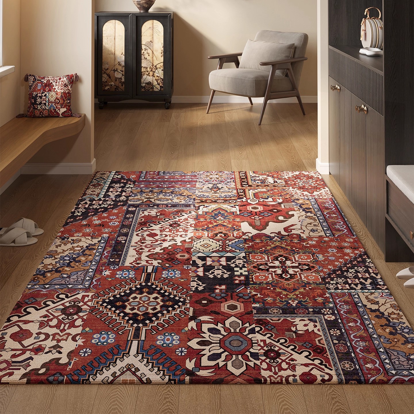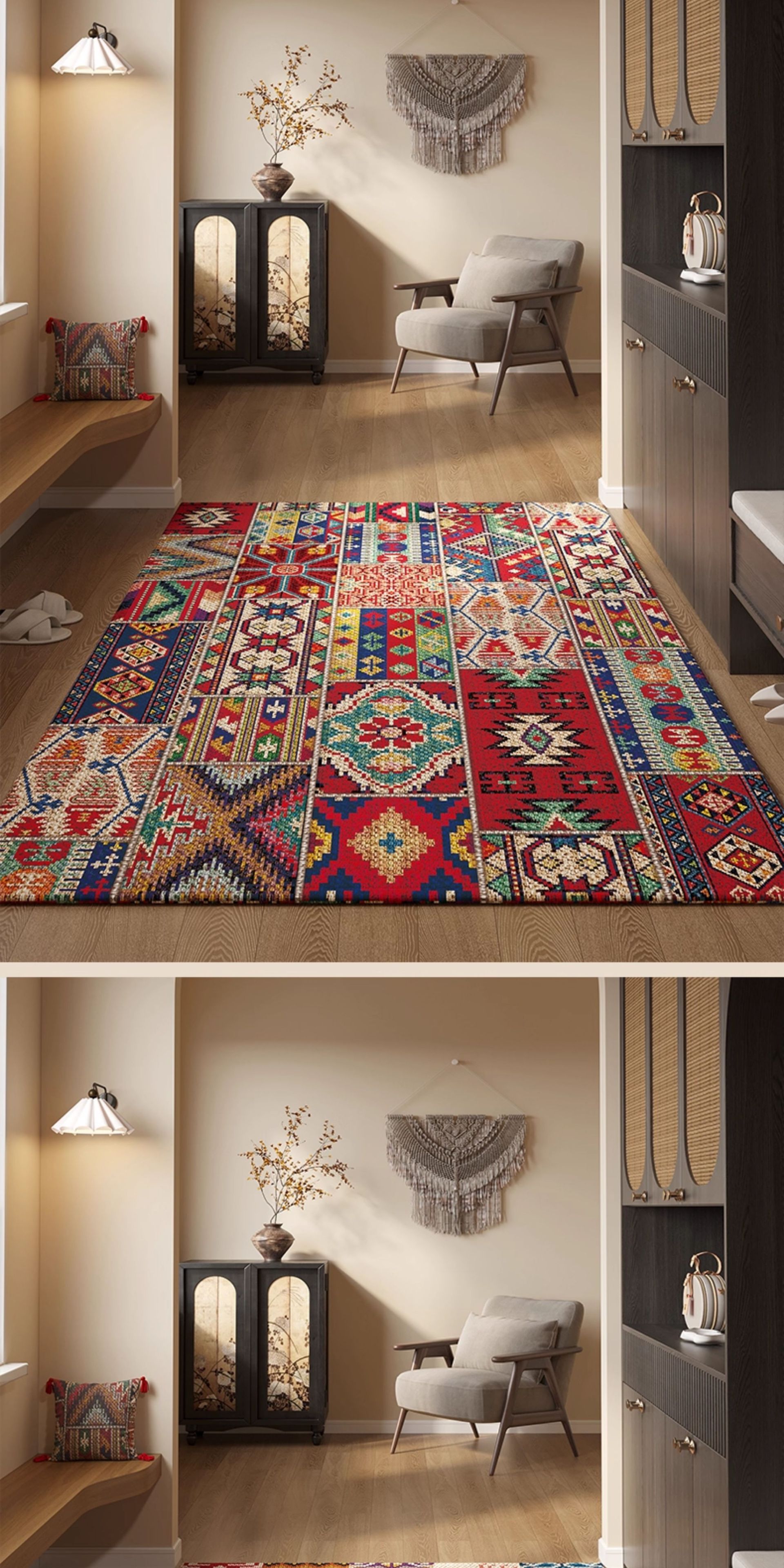 亚马逊热销玄关门垫吸水防滑民族风脚垫耐脏耐磨水晶绒波斯地毯