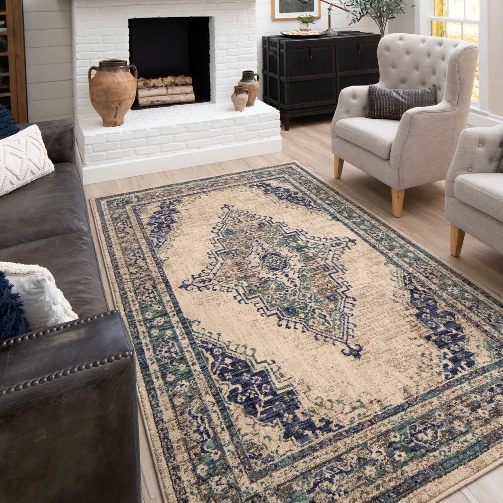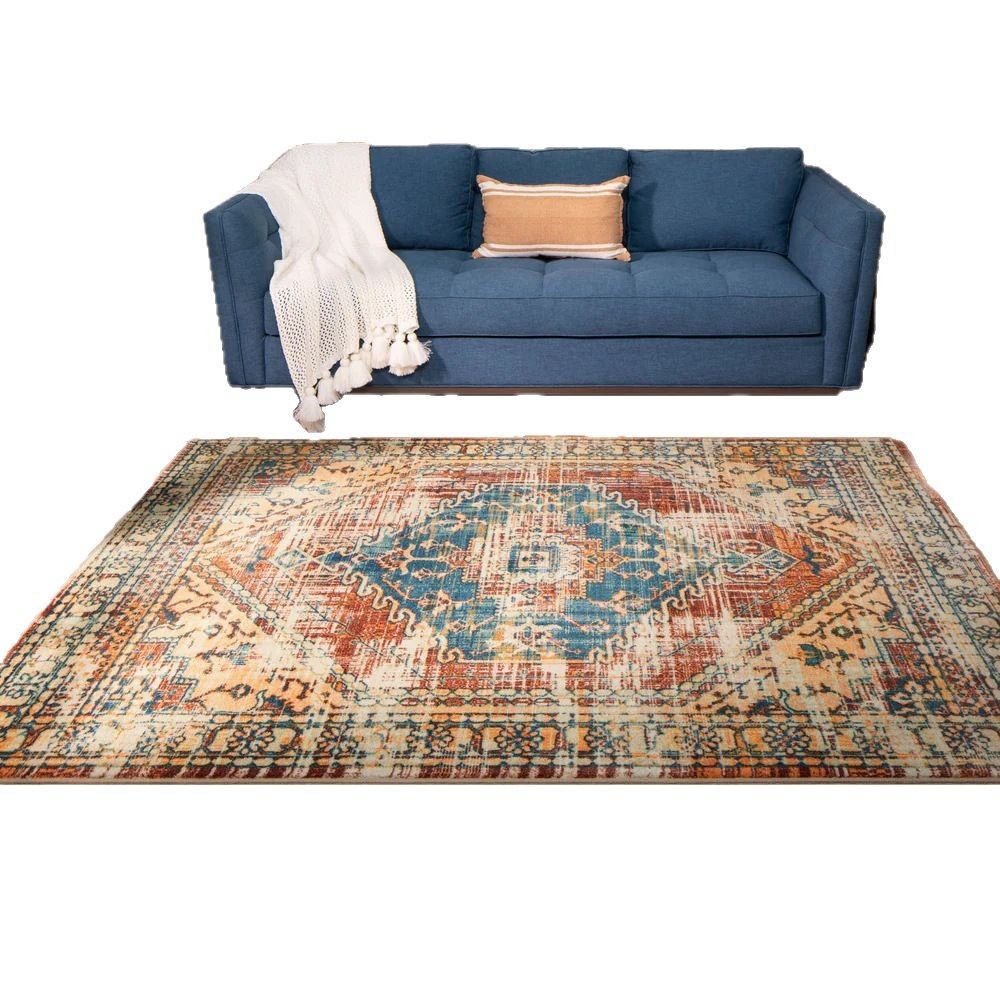 复古民族风客厅地毯亚马逊防滑耐脏卧室床边毯玄关耐磨易打理地垫