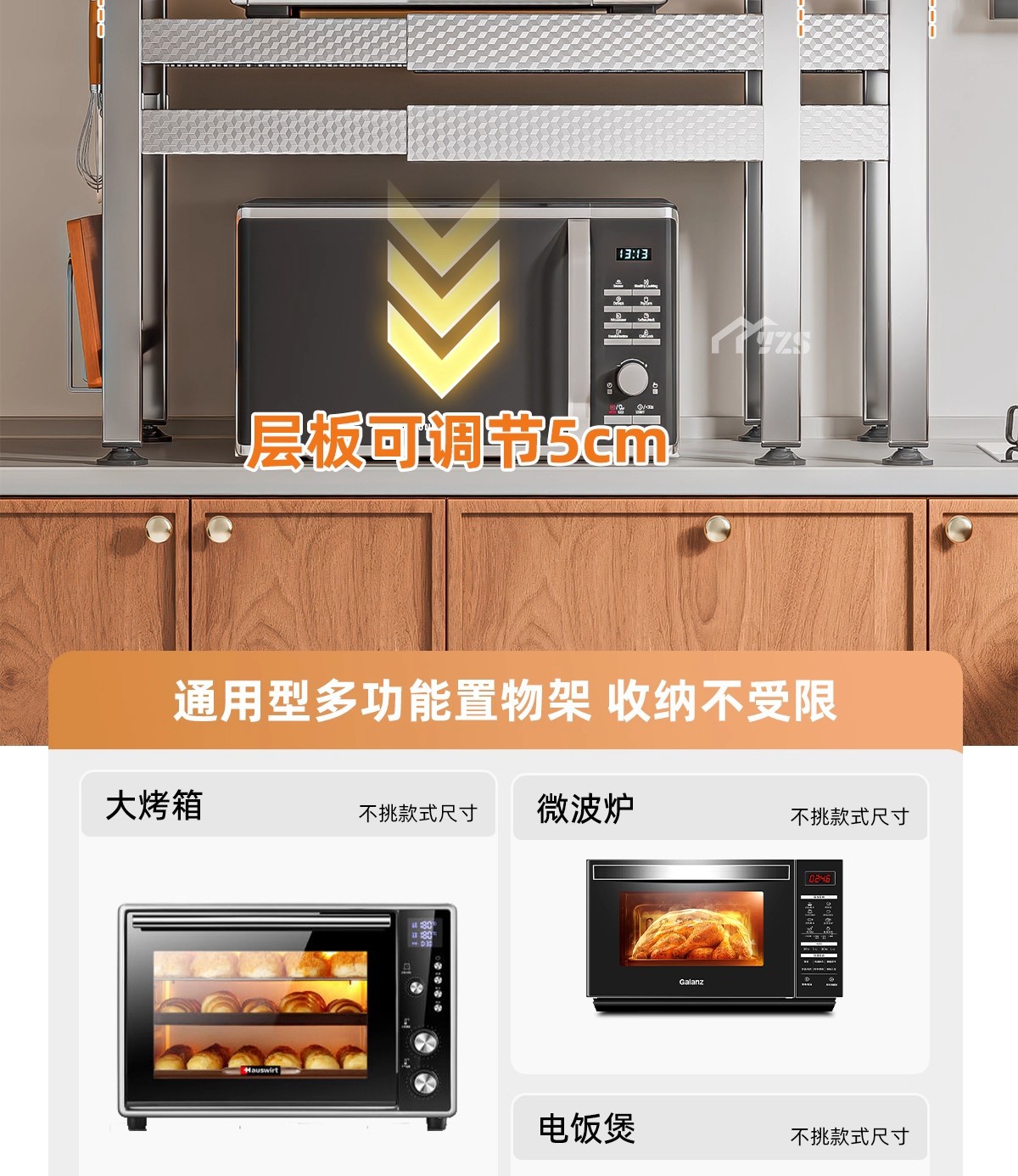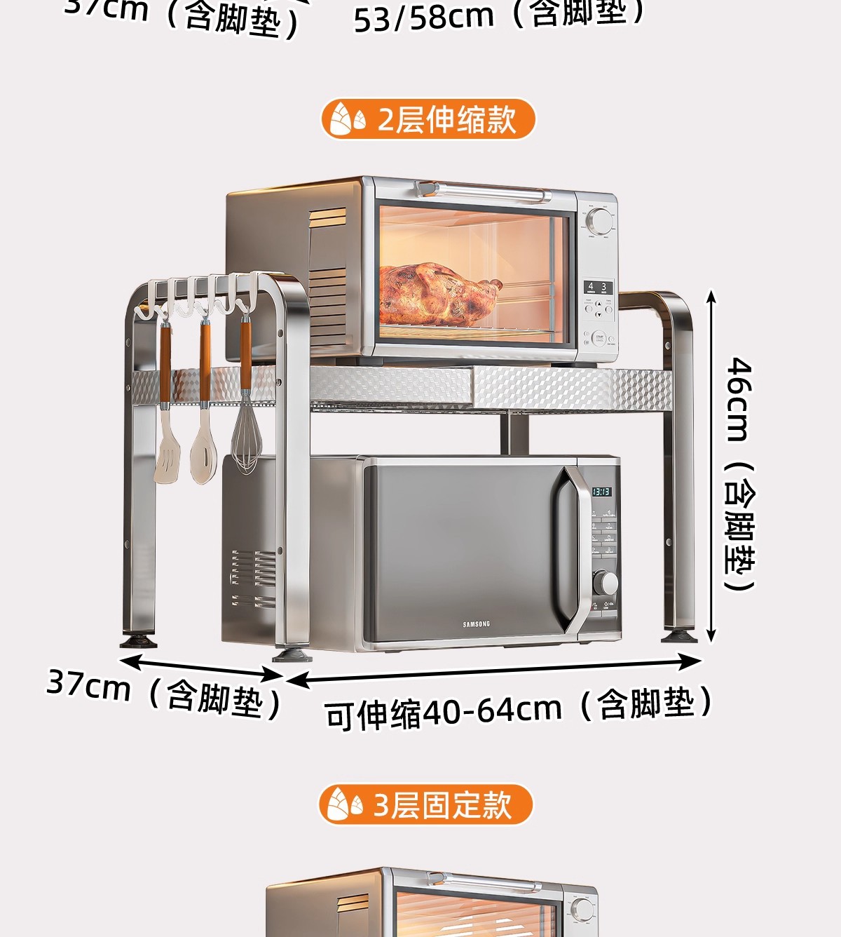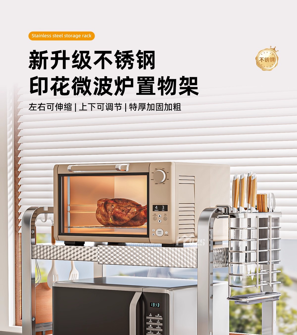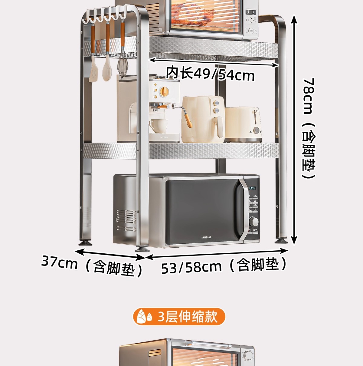 厨房微波炉置物架多功能支架家用多层可伸缩台面烤箱电饭煲收纳架
