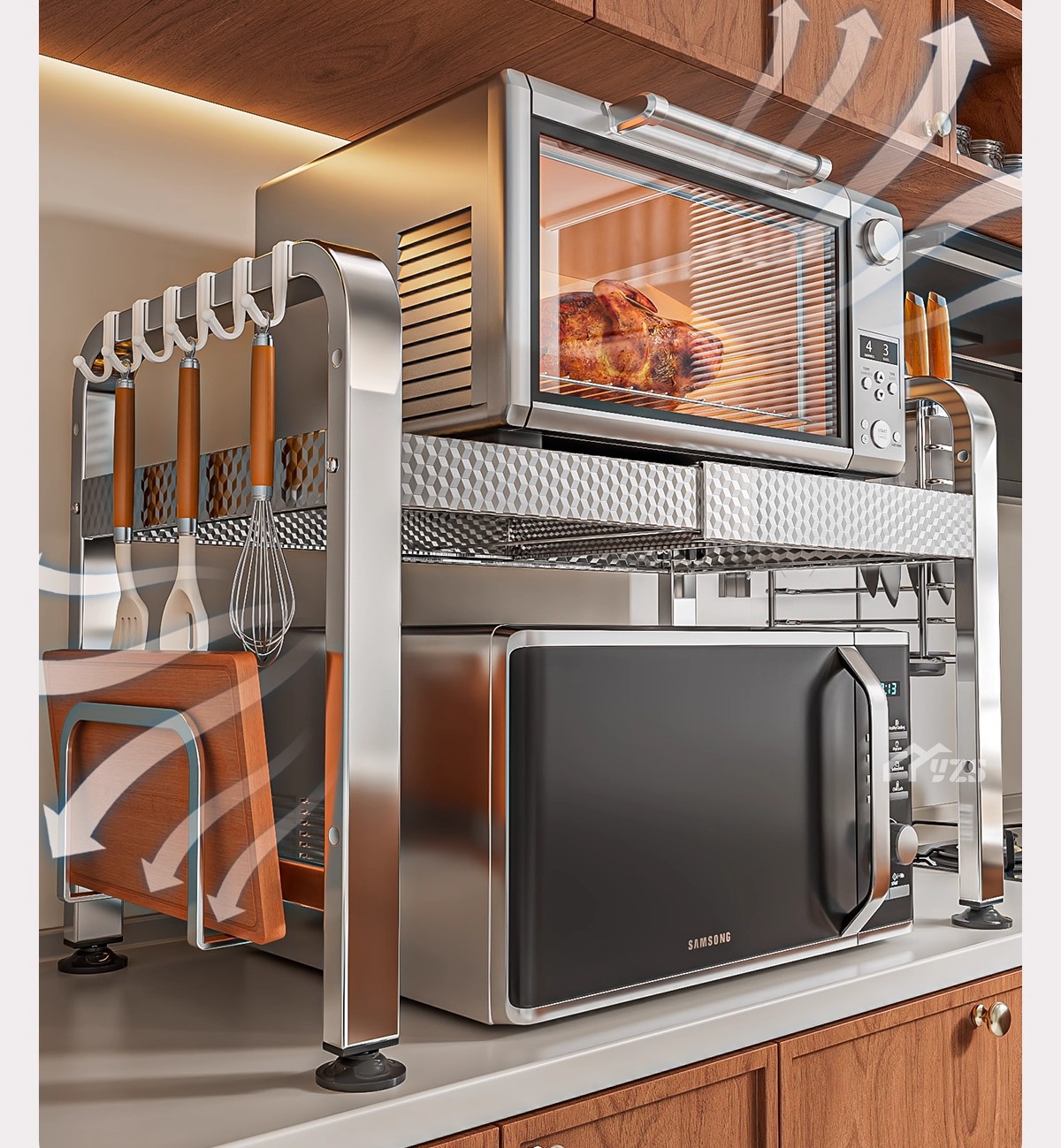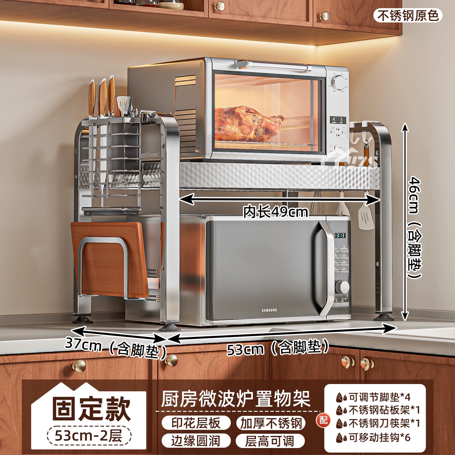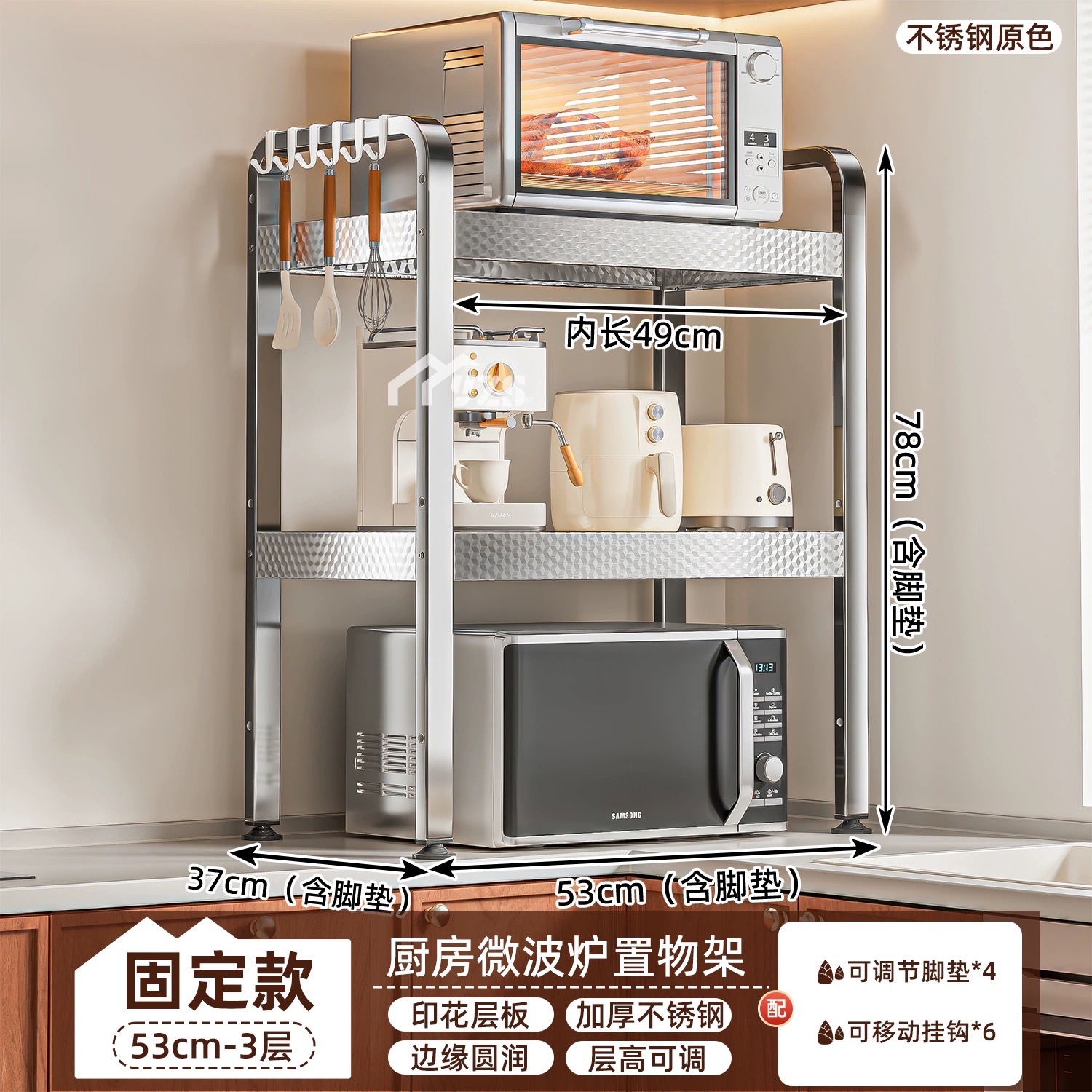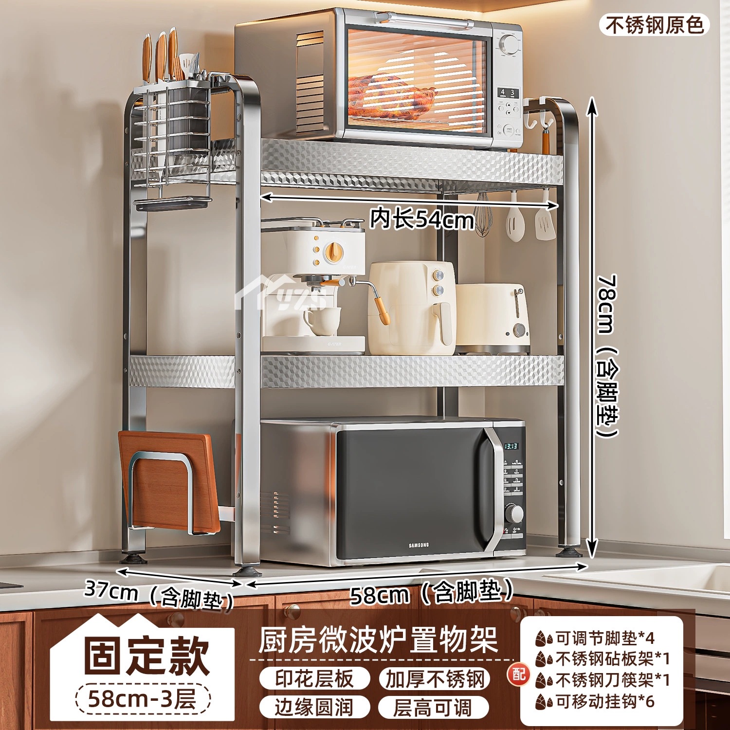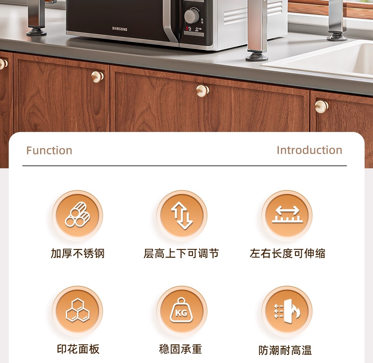 厨房微波炉置物架多功能支架家用多层可伸缩台面烤箱电饭煲收纳架