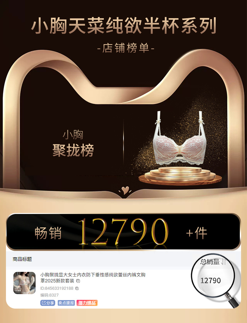 新款小胸聚拢显大女士内衣性感纯欲蕾丝文胸罩防下垂绝美内裤套装
