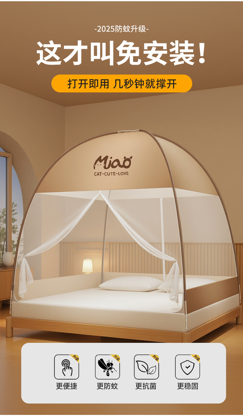 1.8蒙古包蚊帐家用卧室免安装可折叠防摔蚊帐租房双人床帐篷包邮
