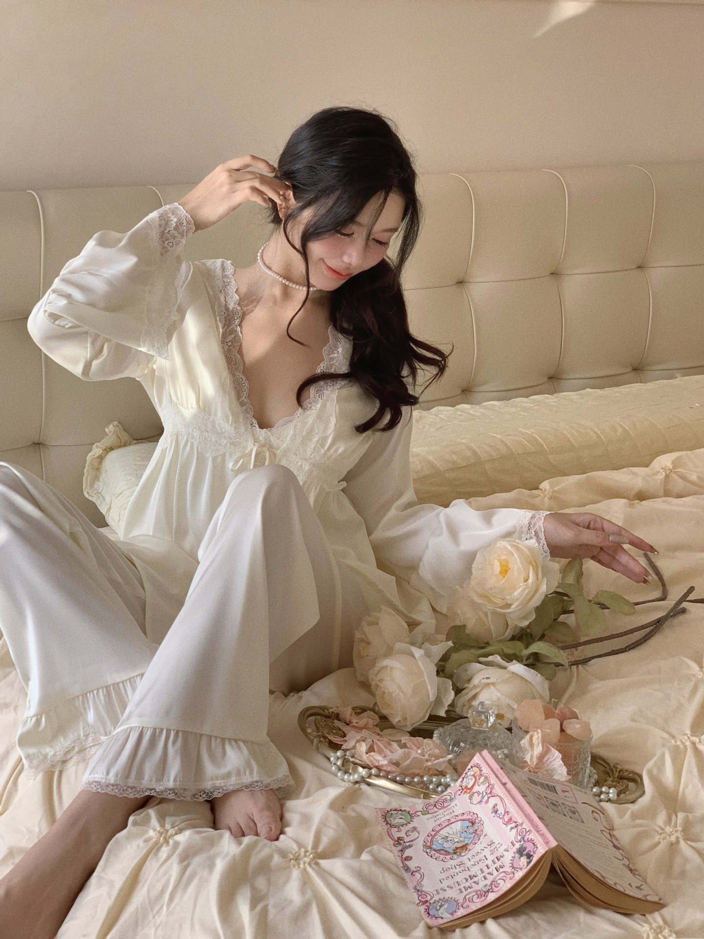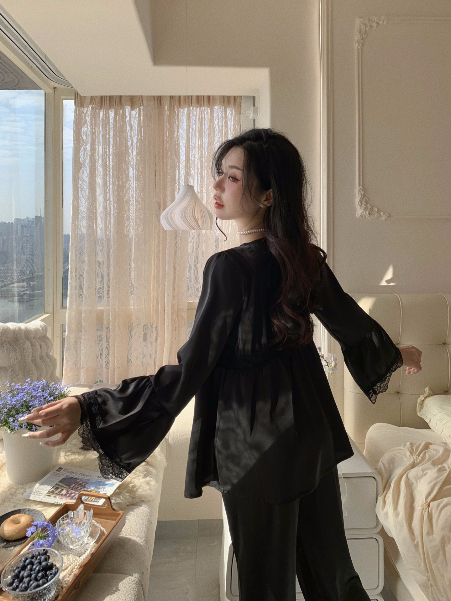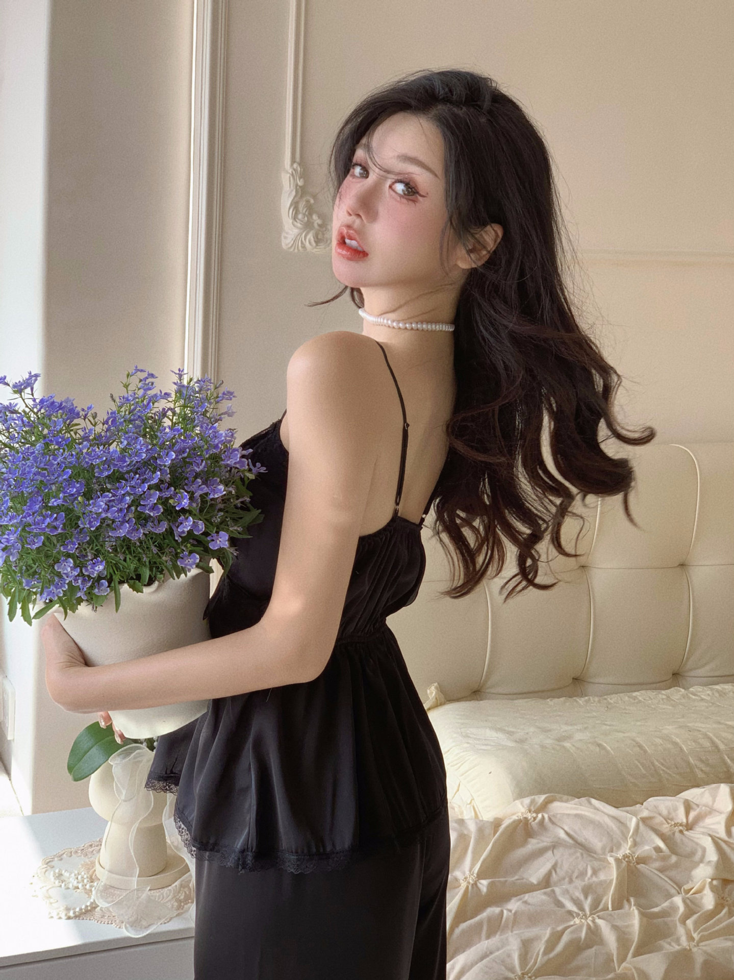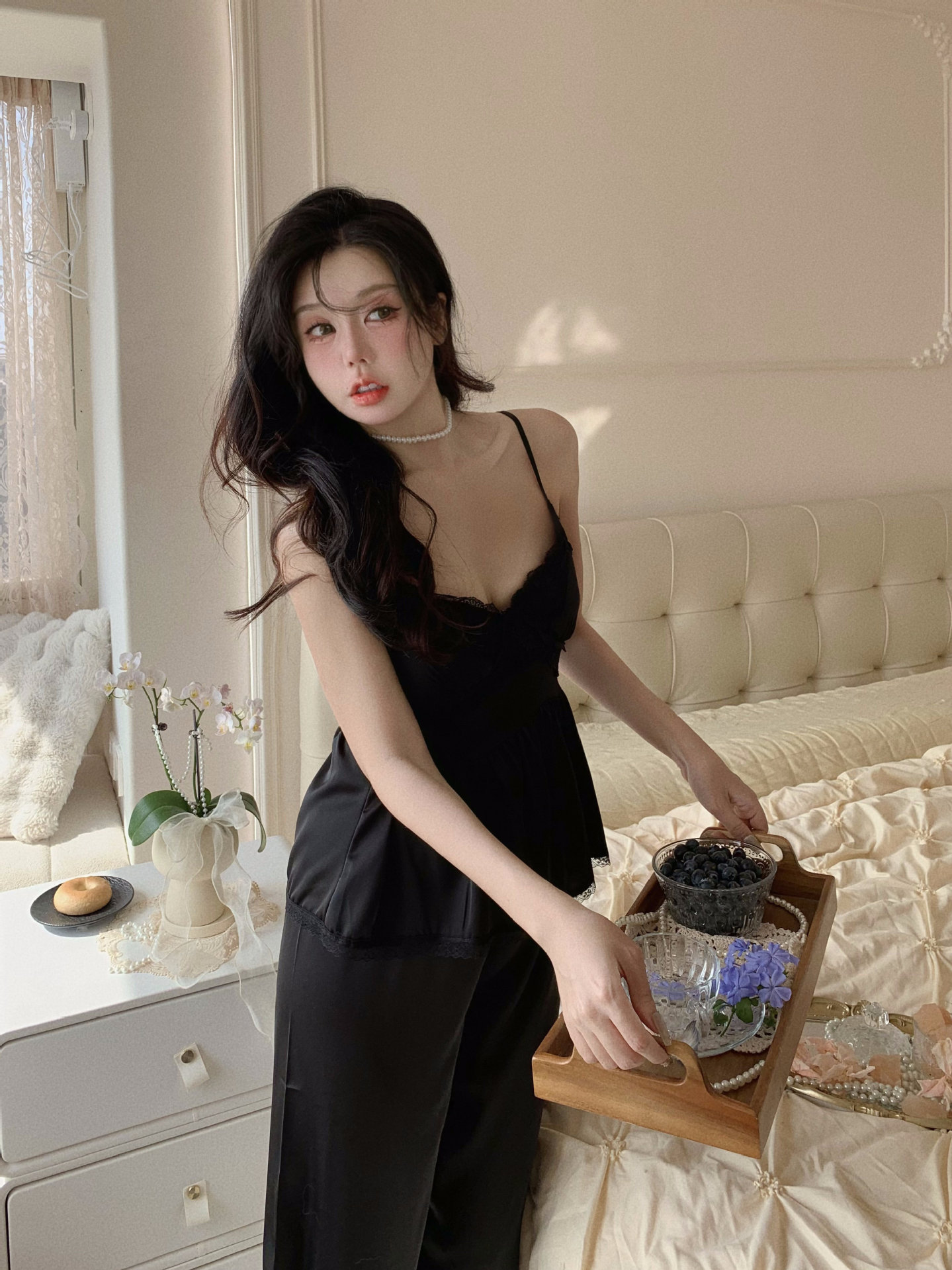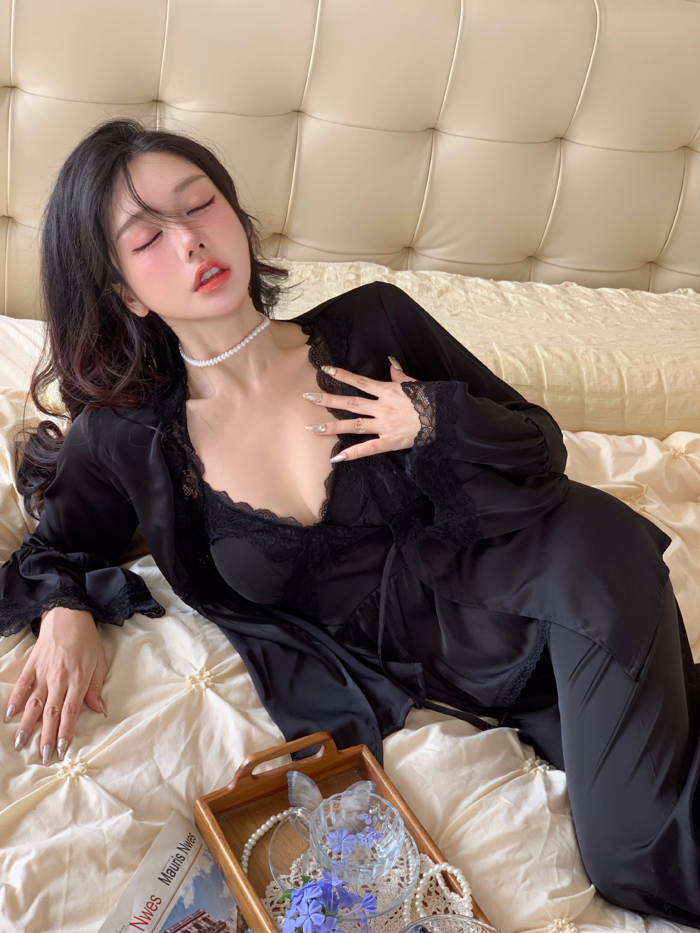 【心动信号】秋吊带性感睡衣赵露思同款家居服法式蕾丝三件套长袖
