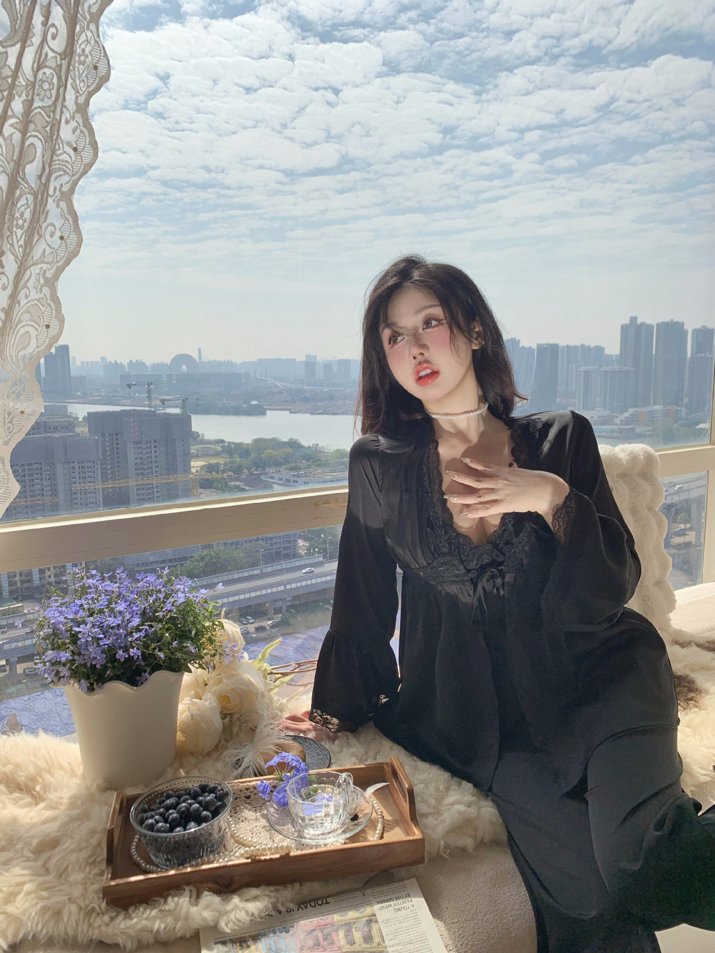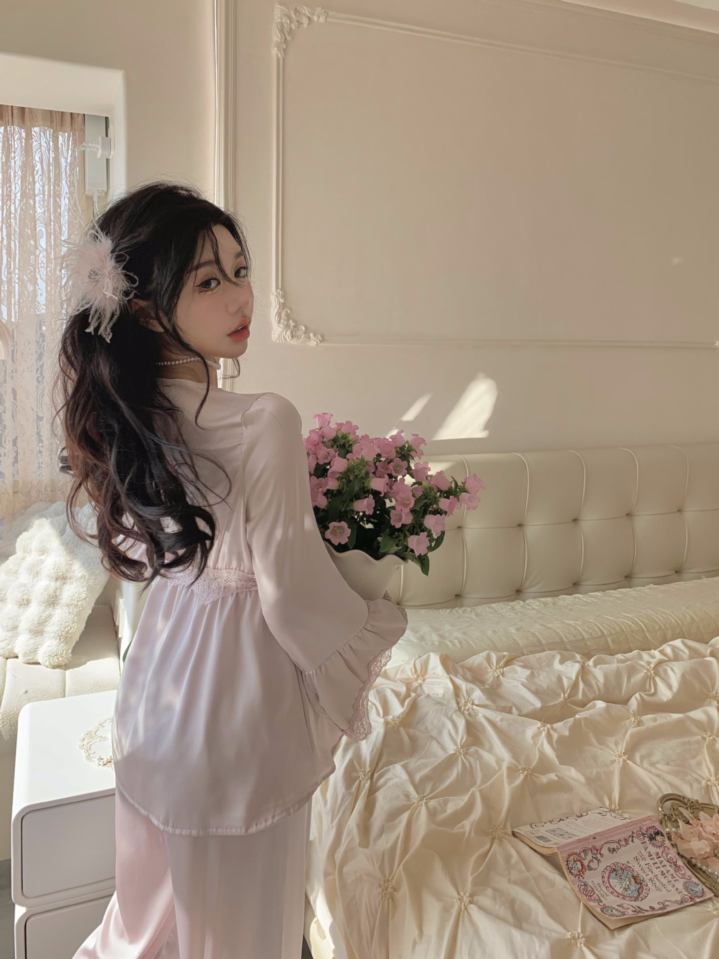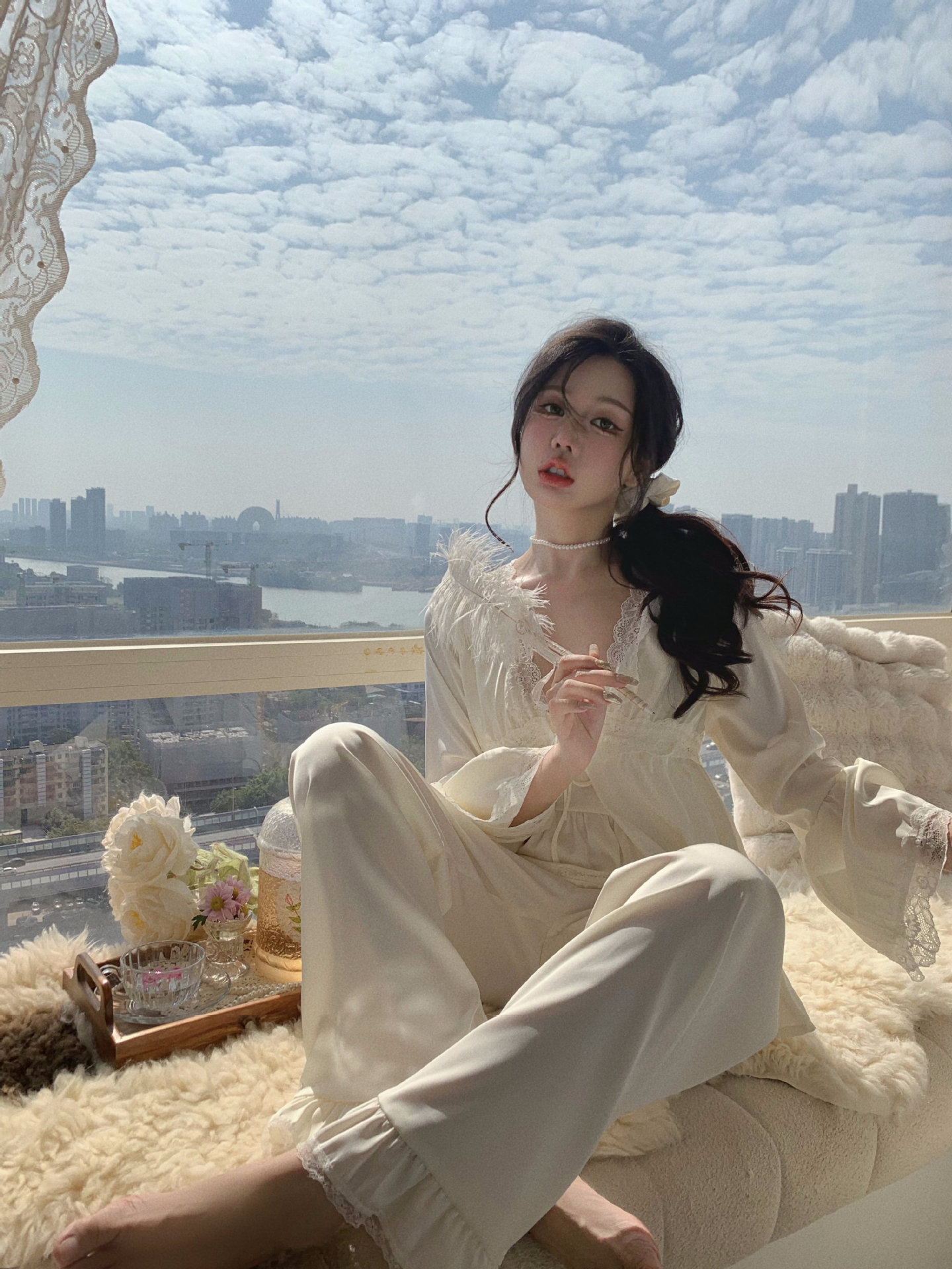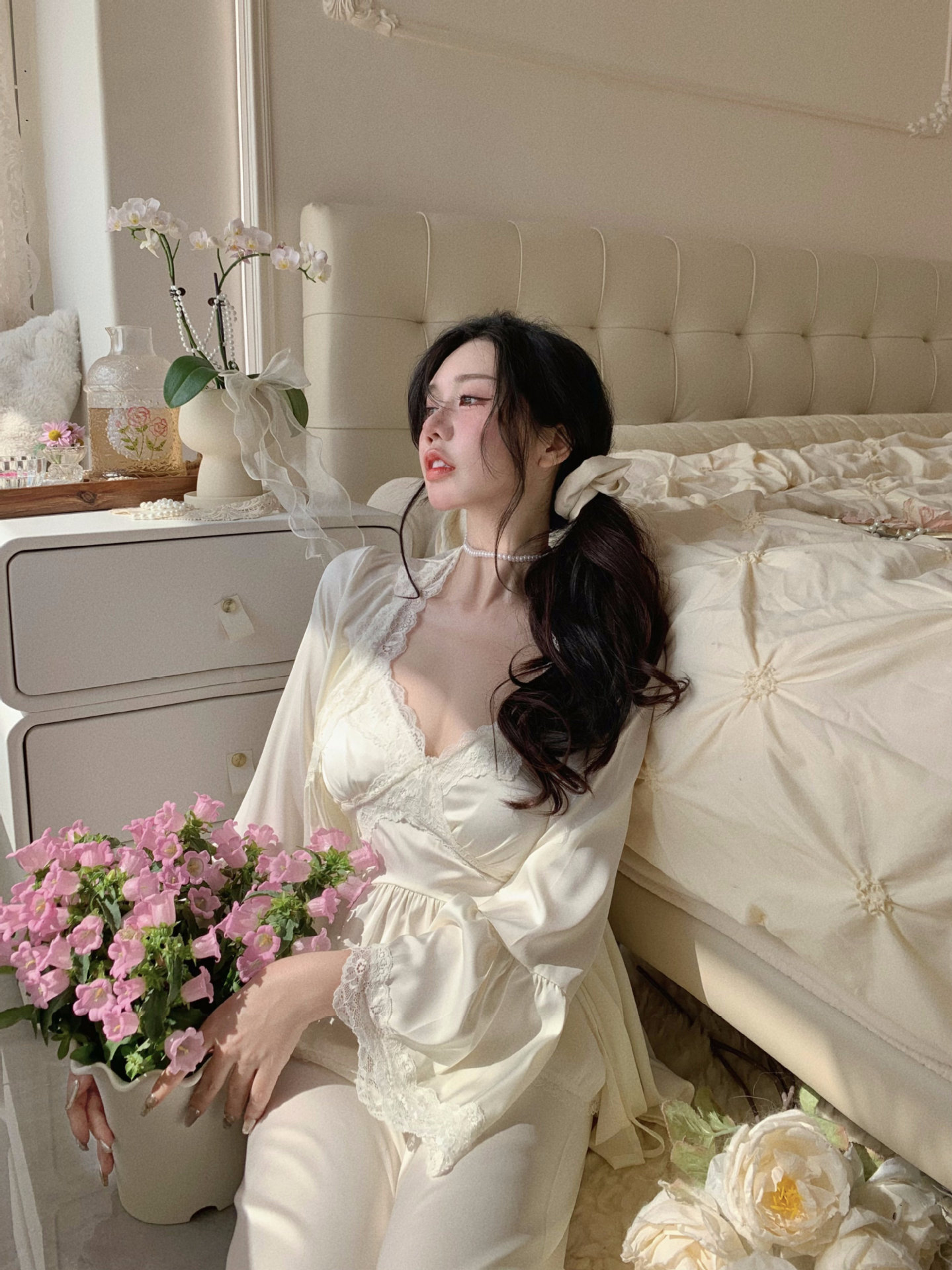 【心动信号】秋吊带性感睡衣赵露思同款家居服法式蕾丝三件套长袖