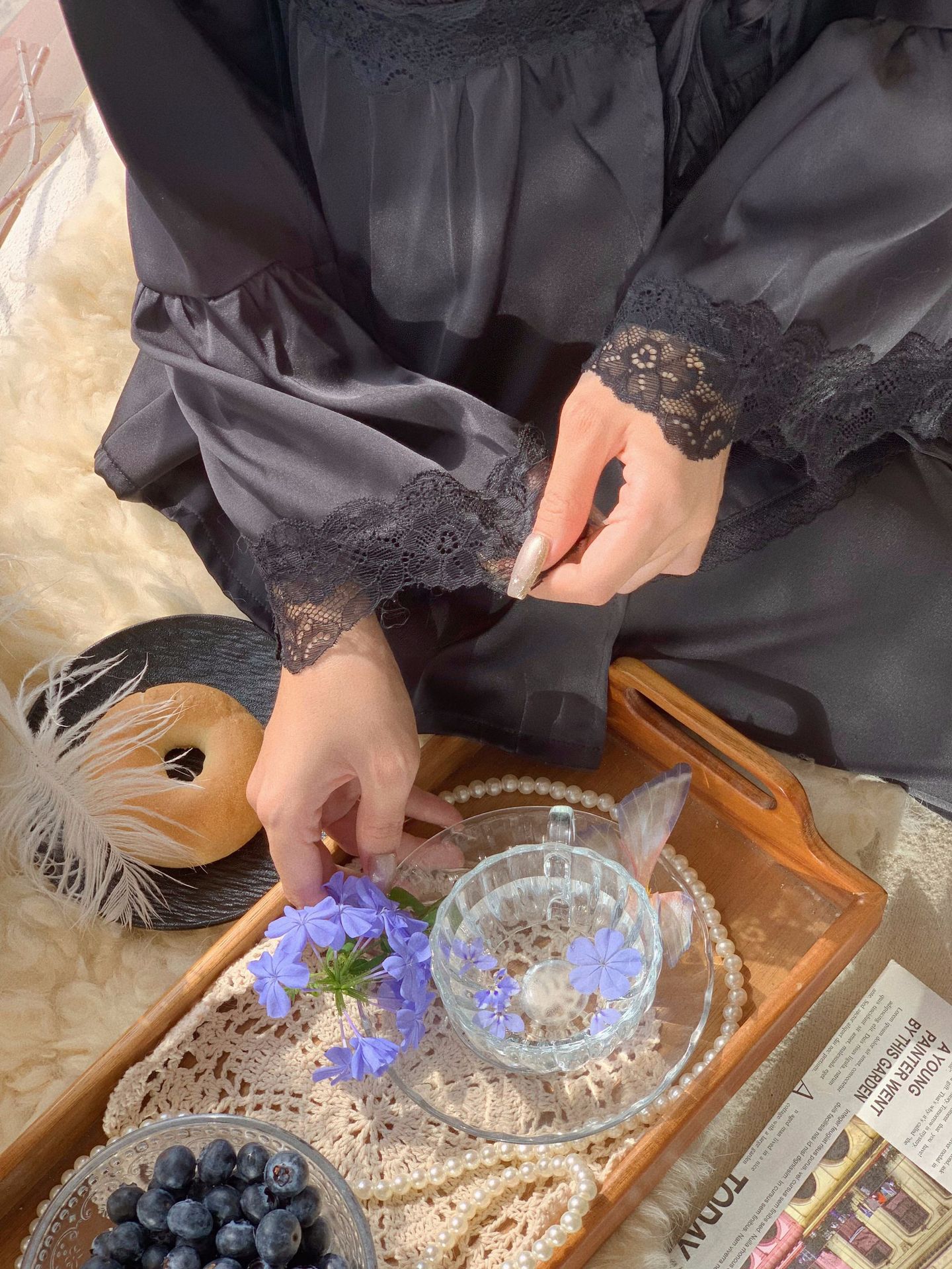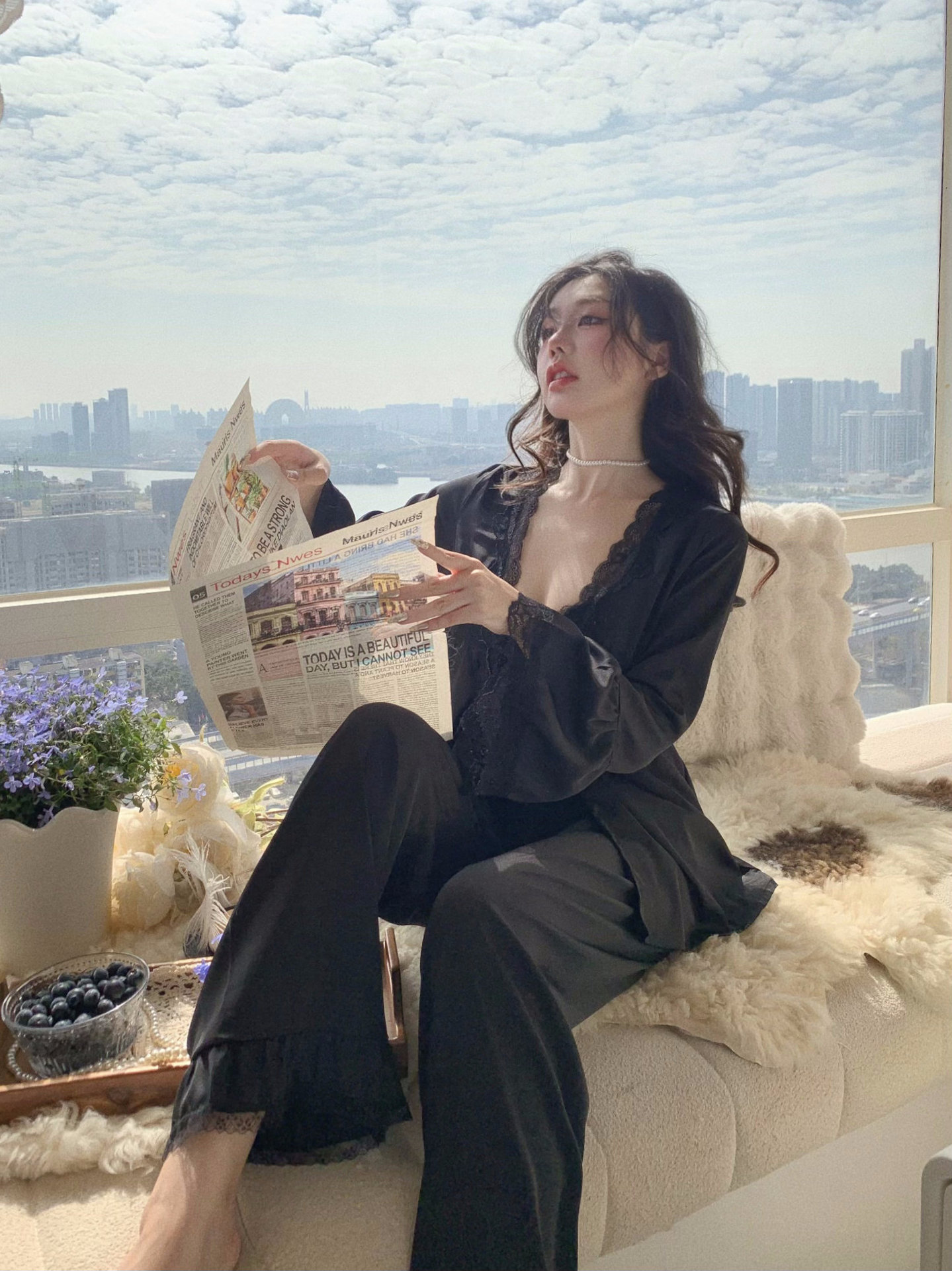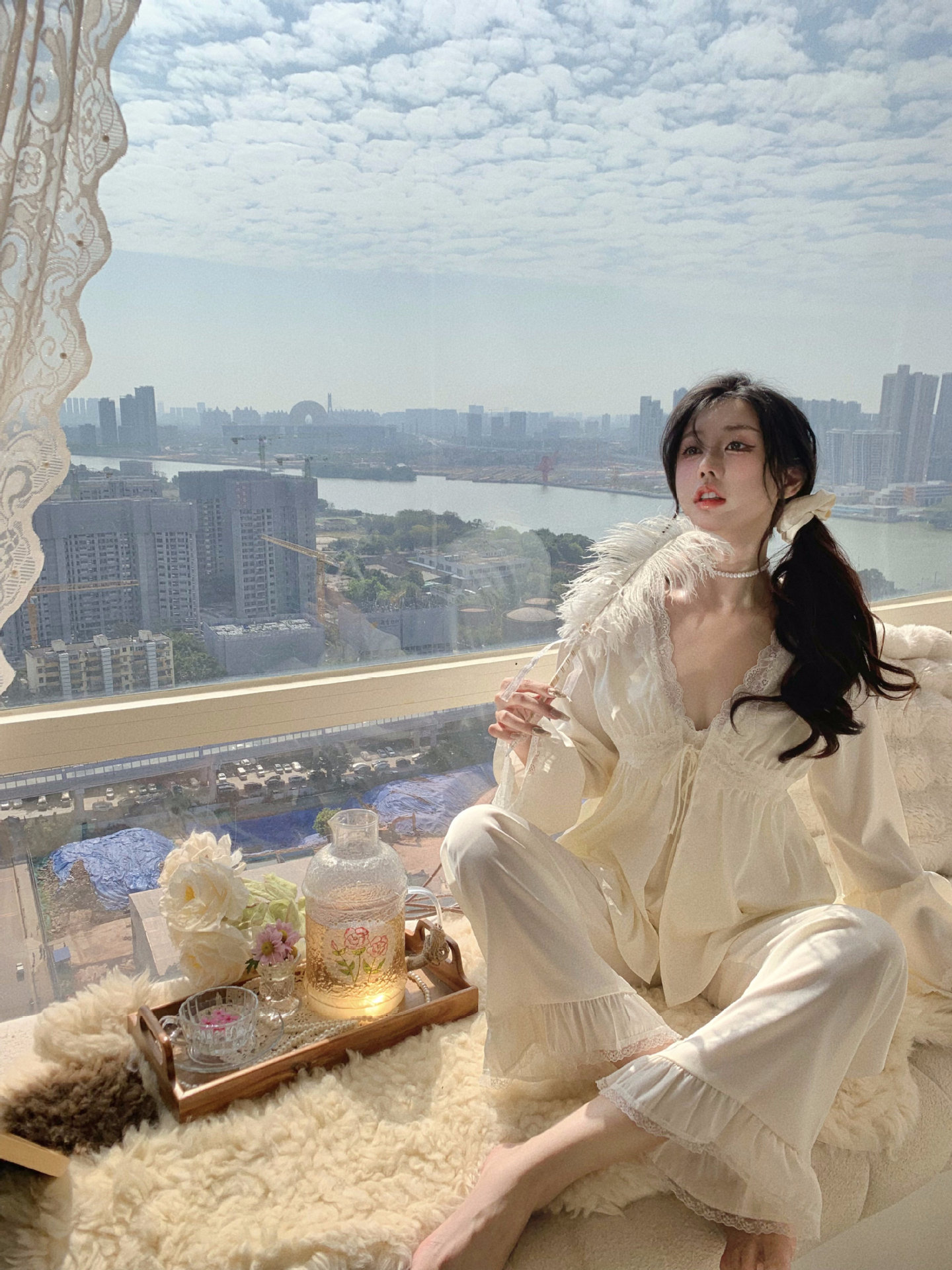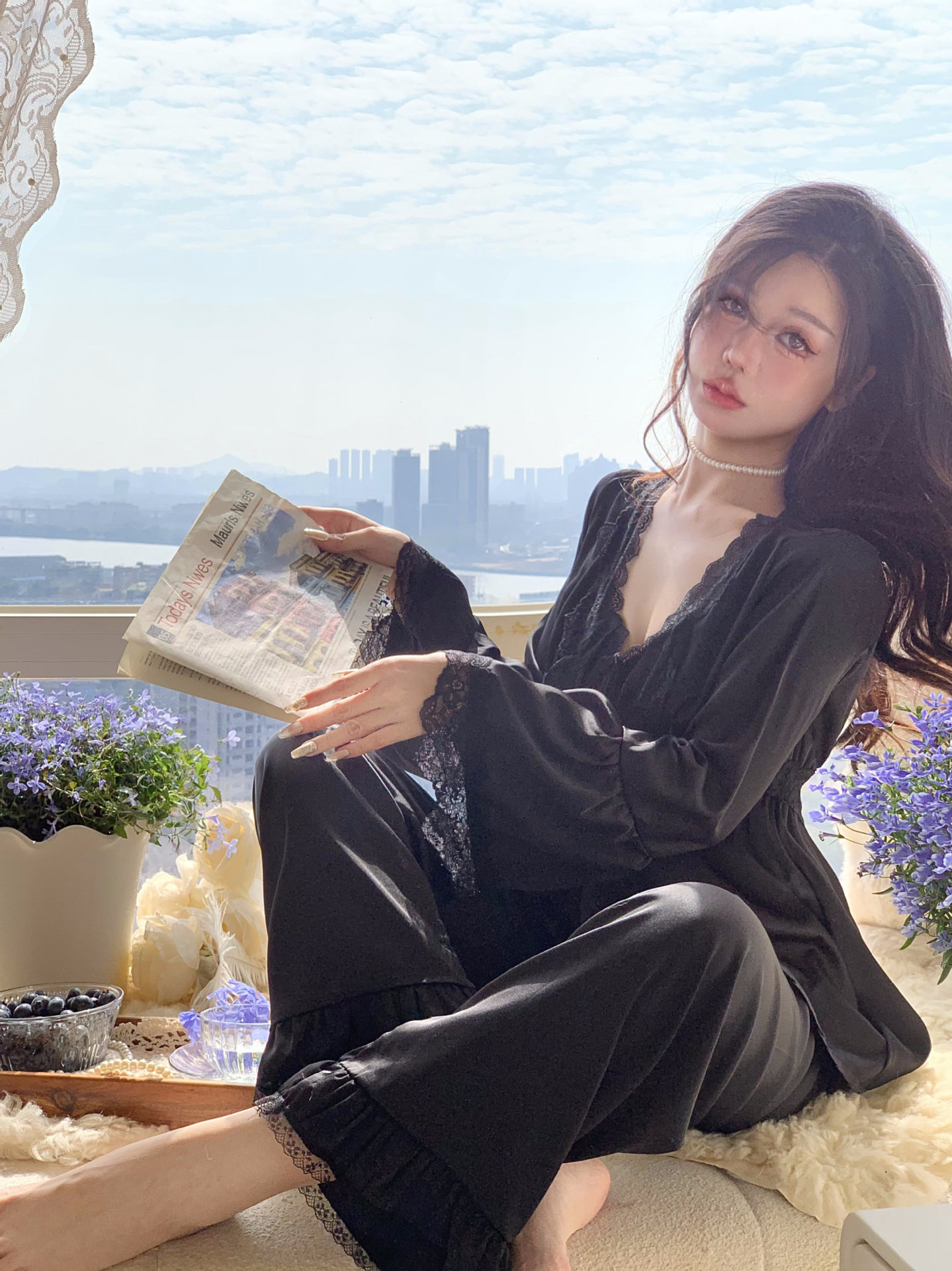 【心动信号】秋吊带性感睡衣赵露思同款家居服法式蕾丝三件套长袖