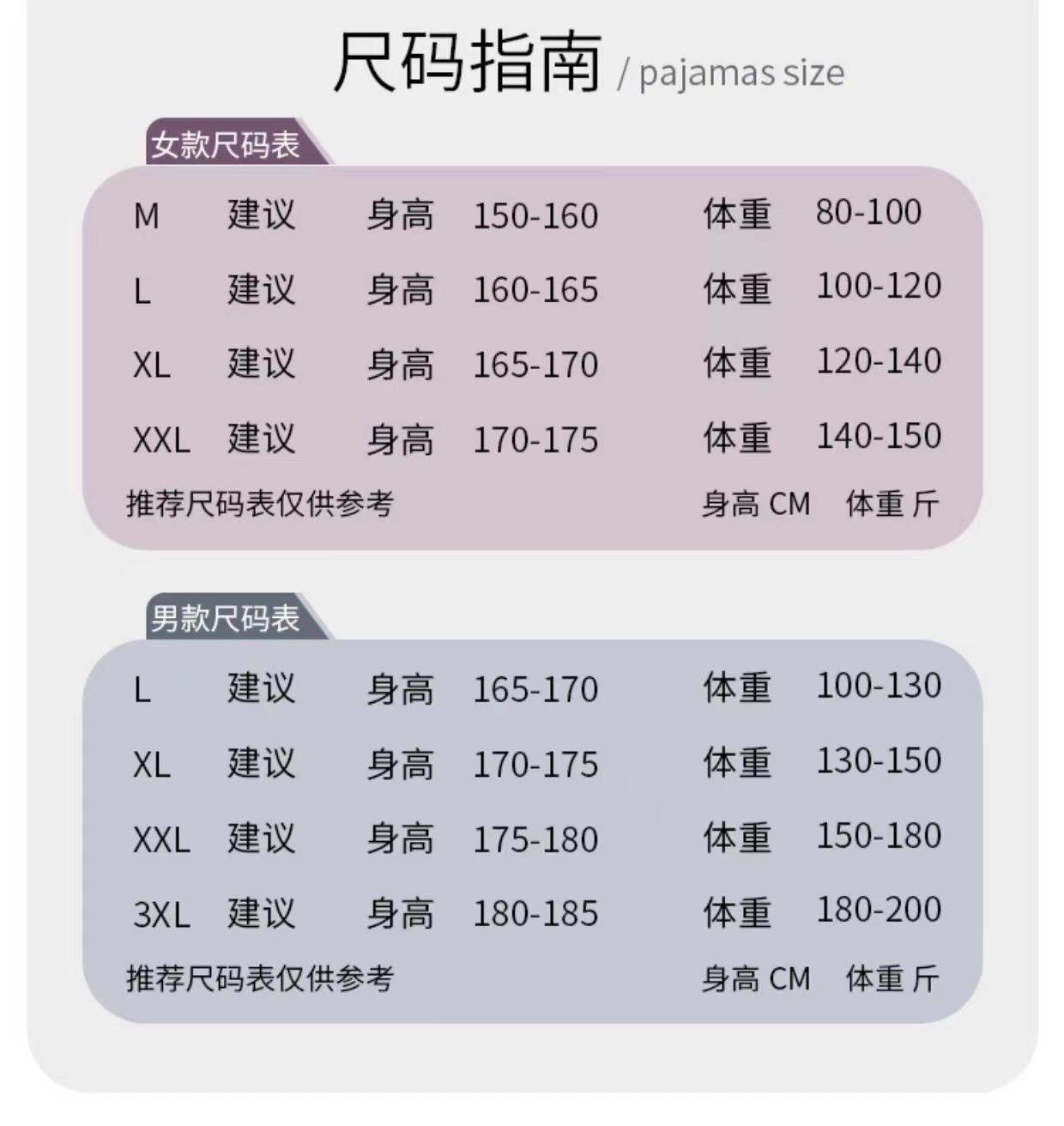 推荐尺码