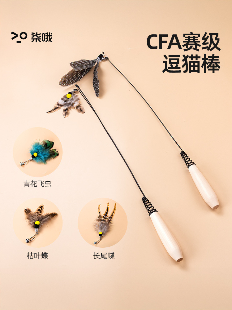 CFA赛级逗猫棒长杆猫玩具逗猫羽毛替换头幼猫小猫咪自嗨解闷神器