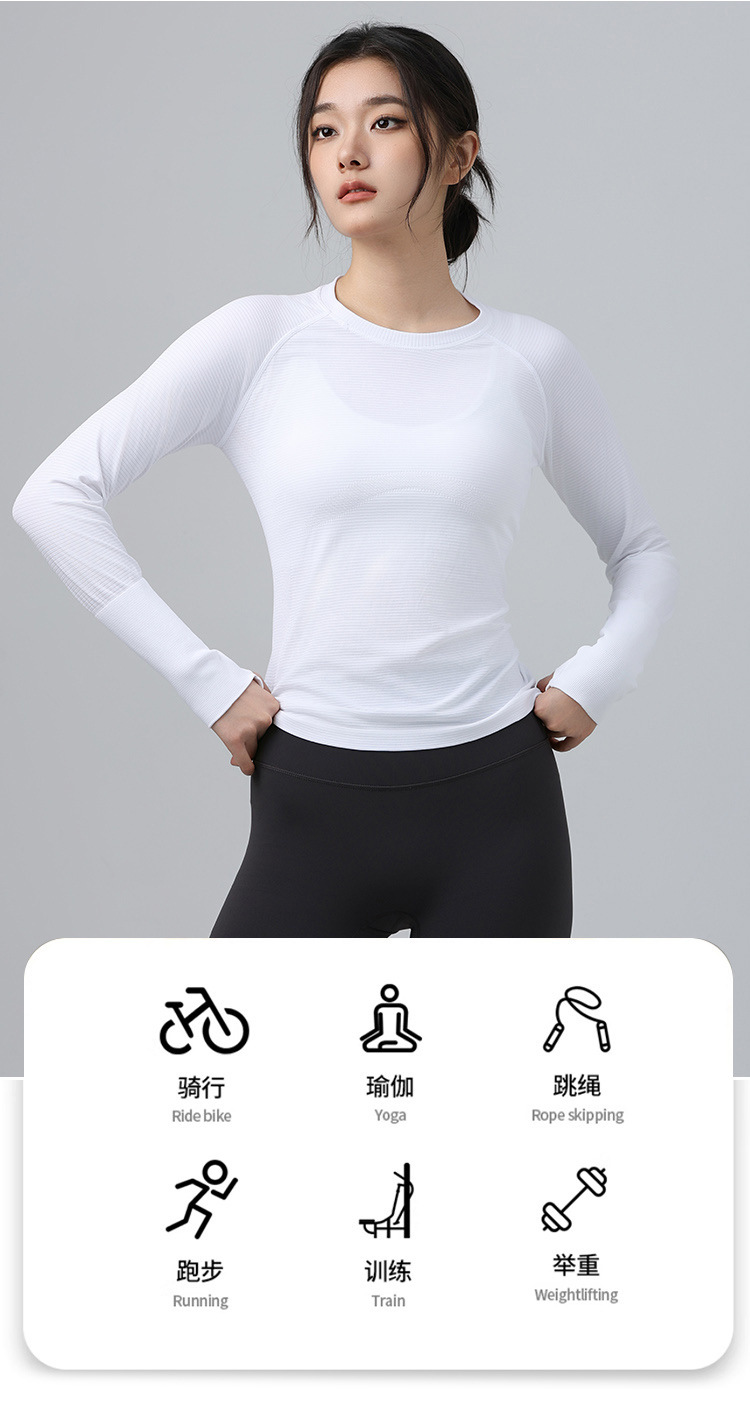秋冬无缝健身上衣女生长袖弹力针织运动圆领跑步速干瑜伽服t恤女