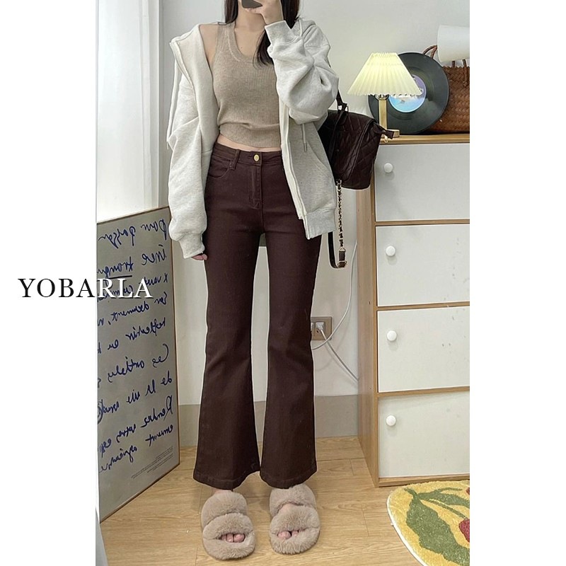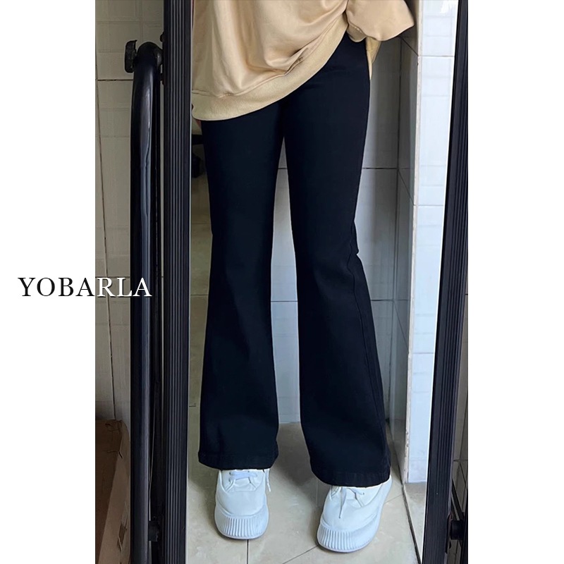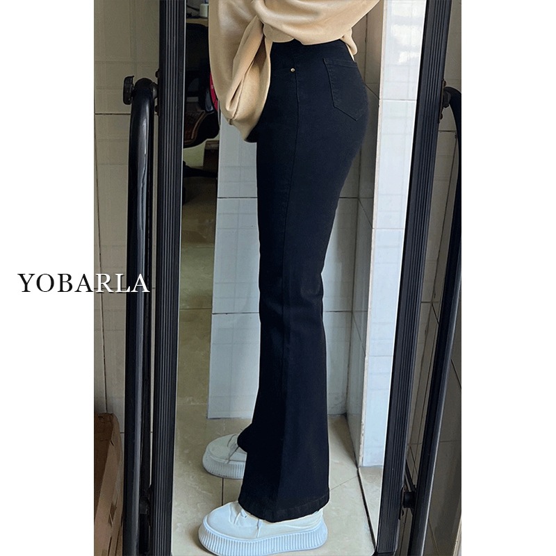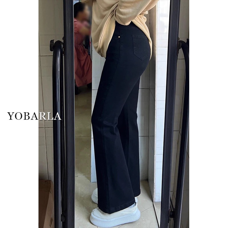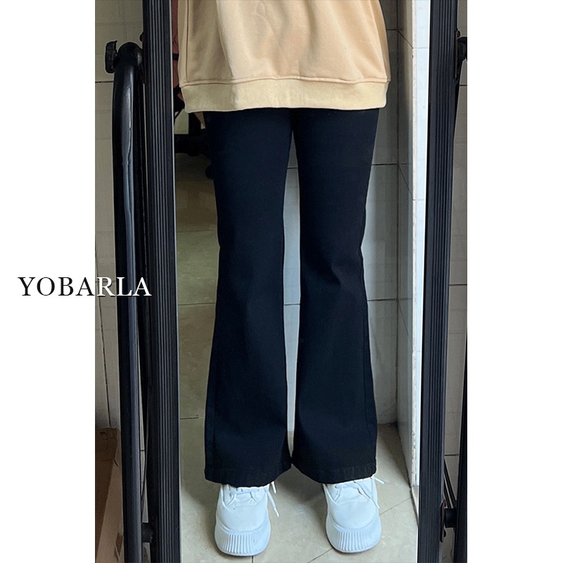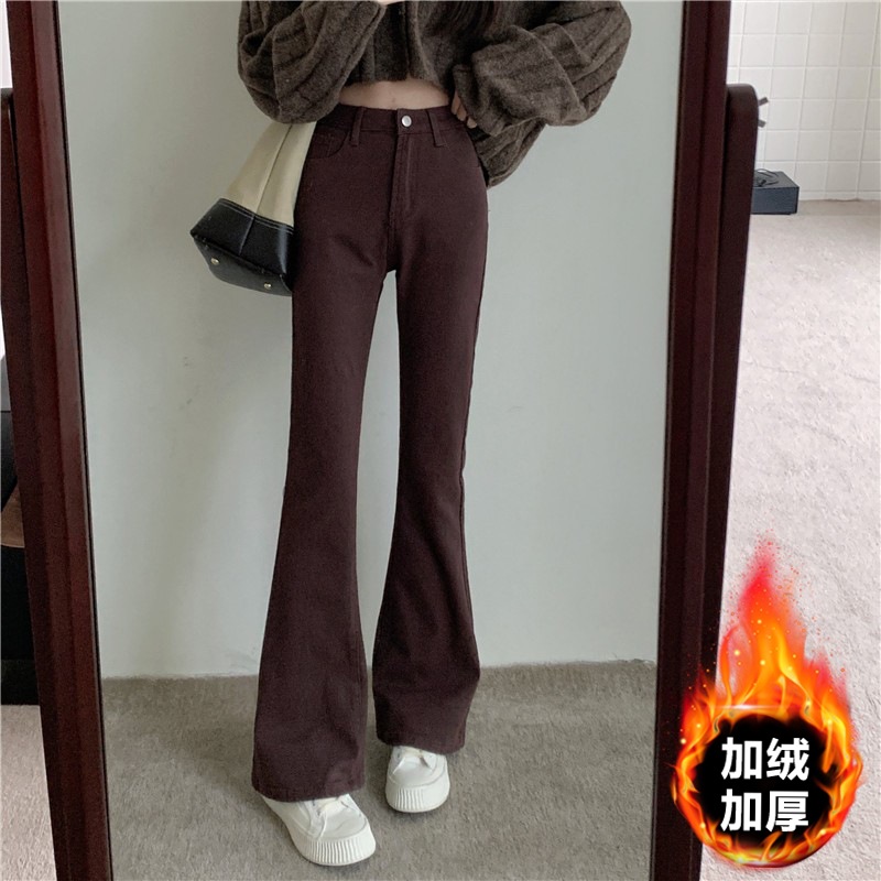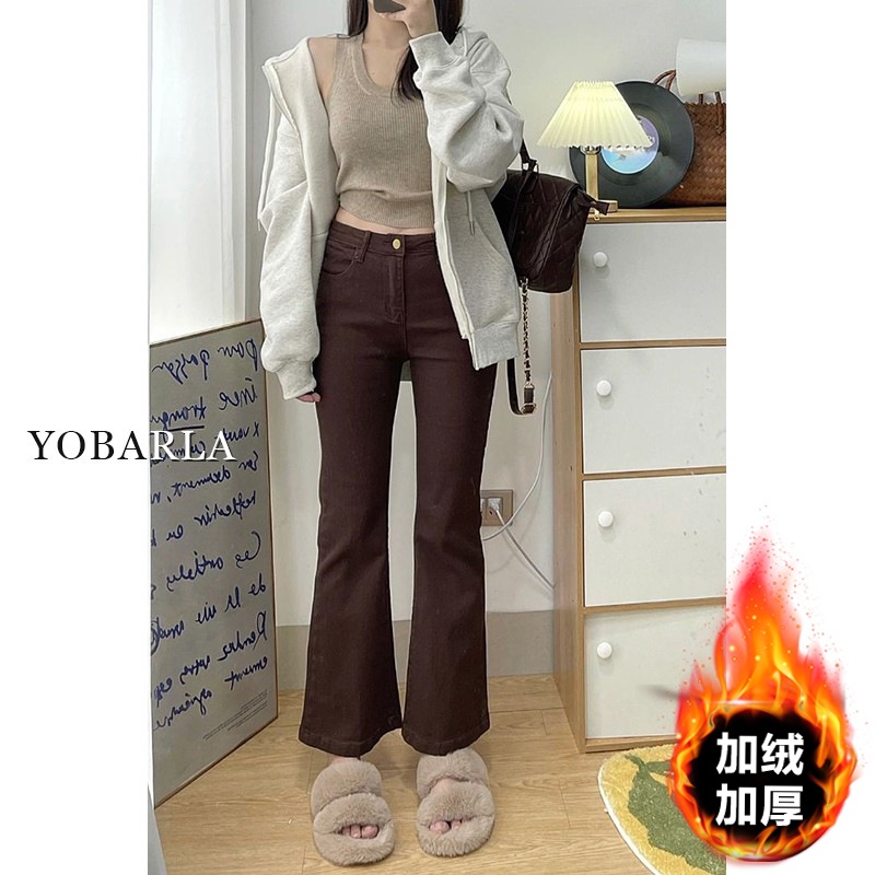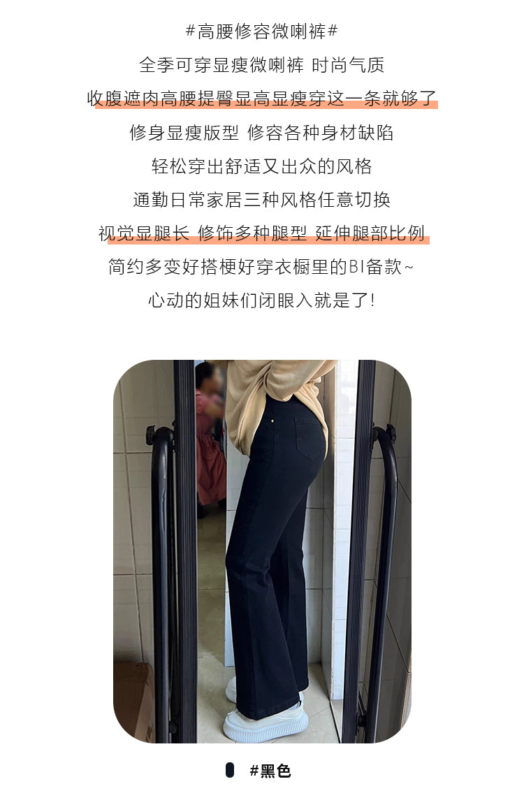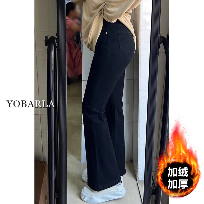 黑色高腰微喇牛仔裤女冬季加绒大码胖mm弹力显瘦梨形身材马蹄裤子