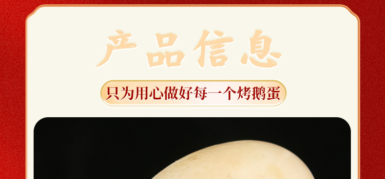 | baked goose egg 20 pieces(烤鹅蛋20枚) | USD $7.6 | 88849 piece available |