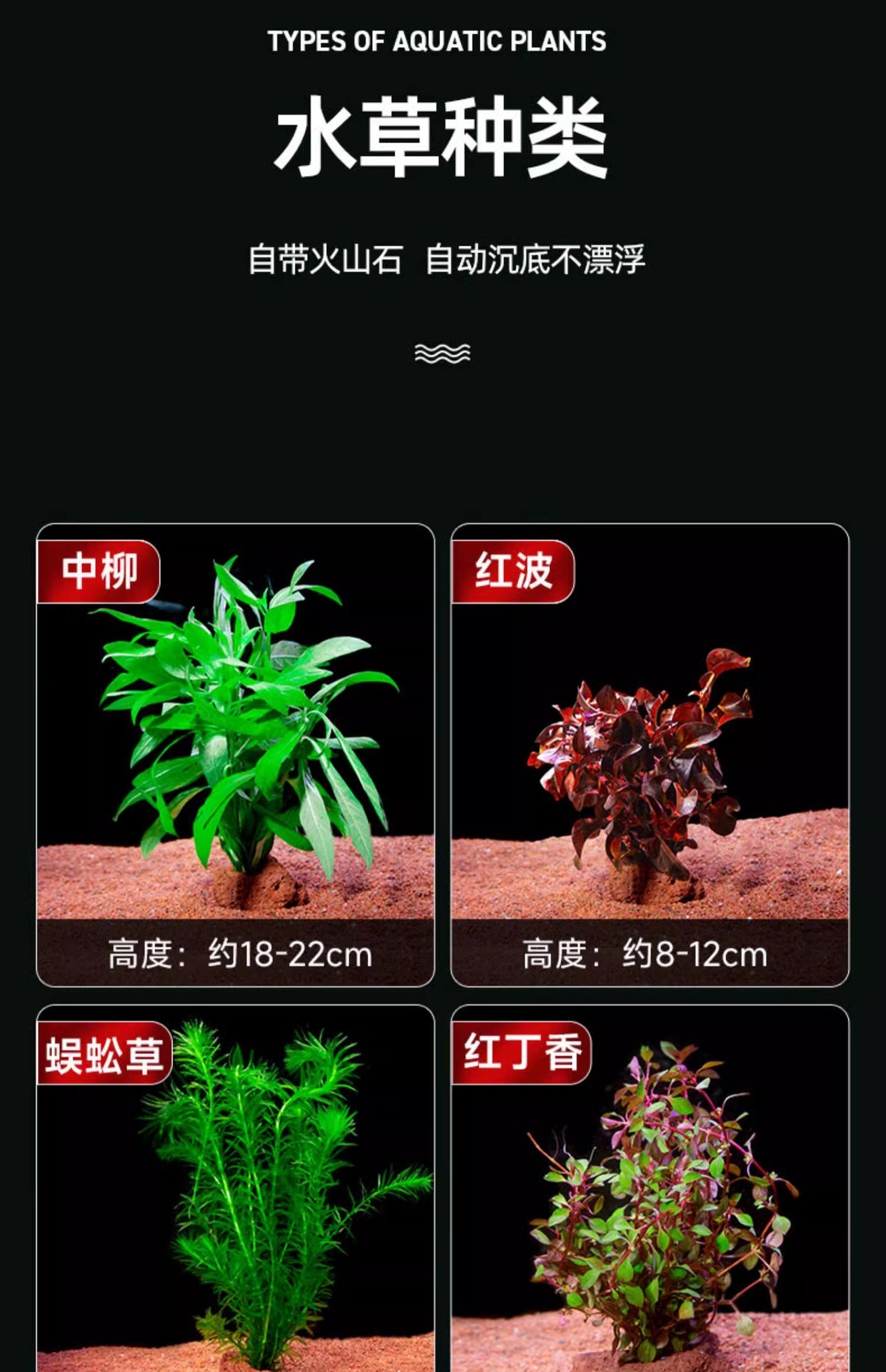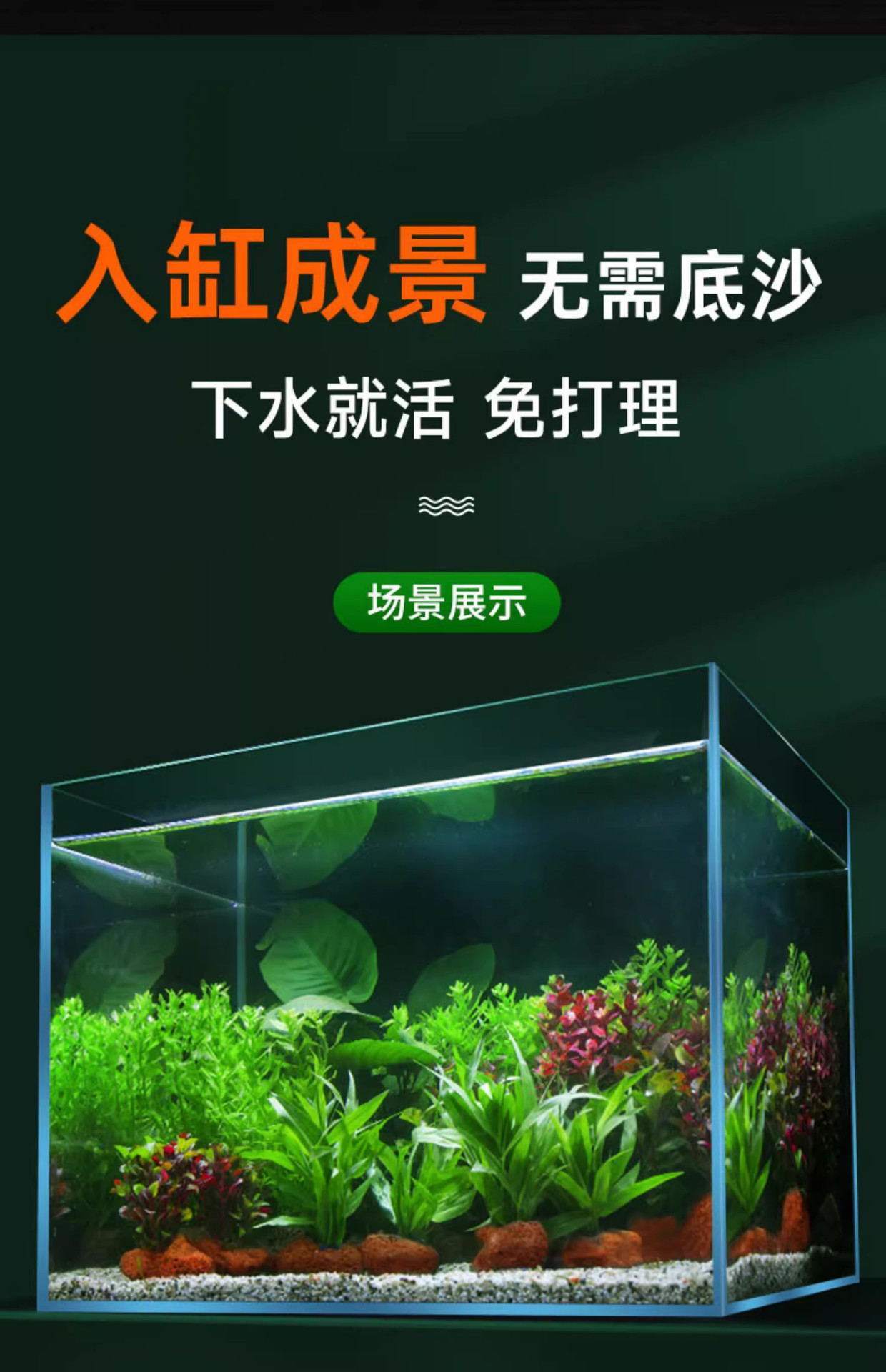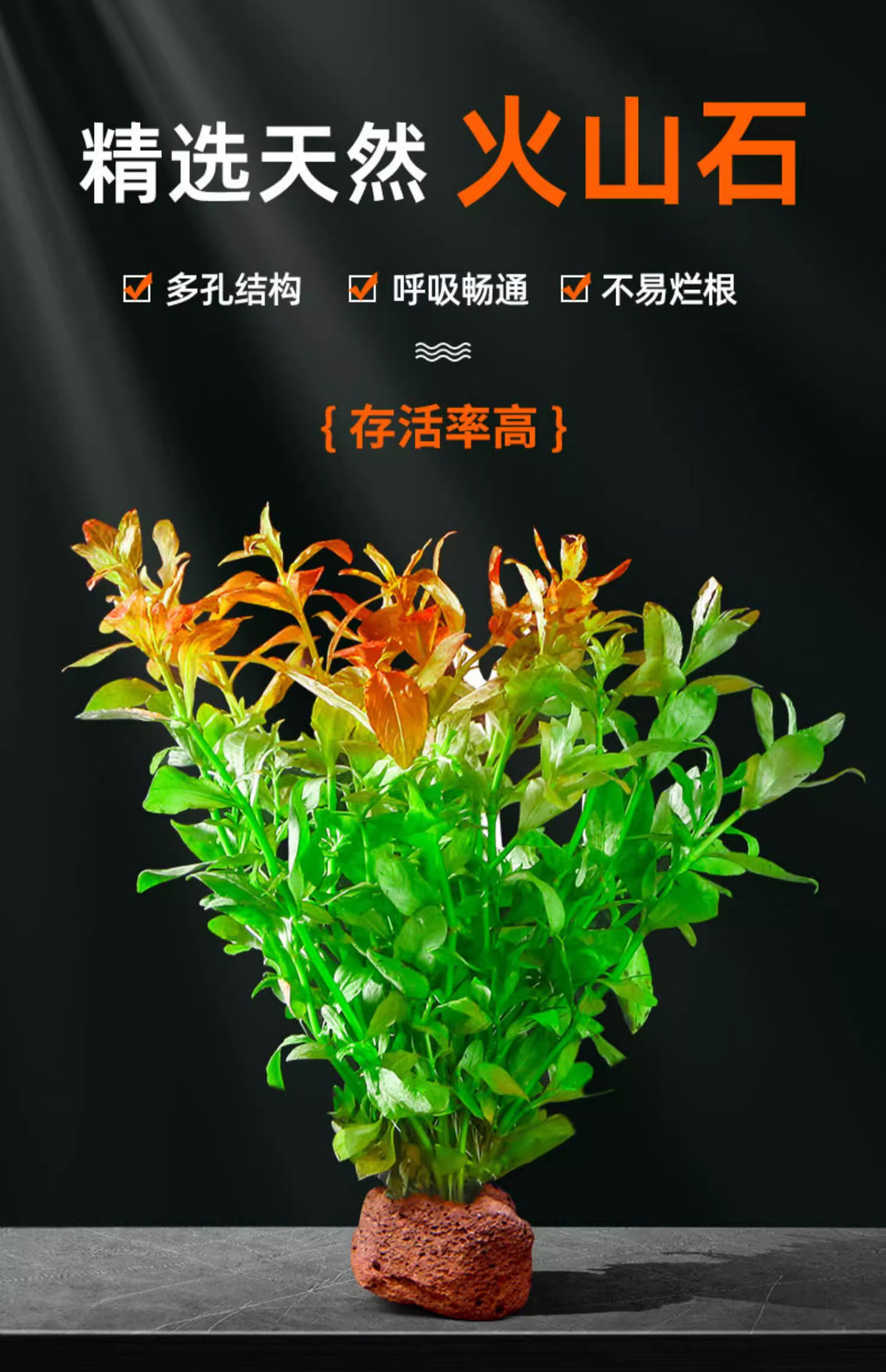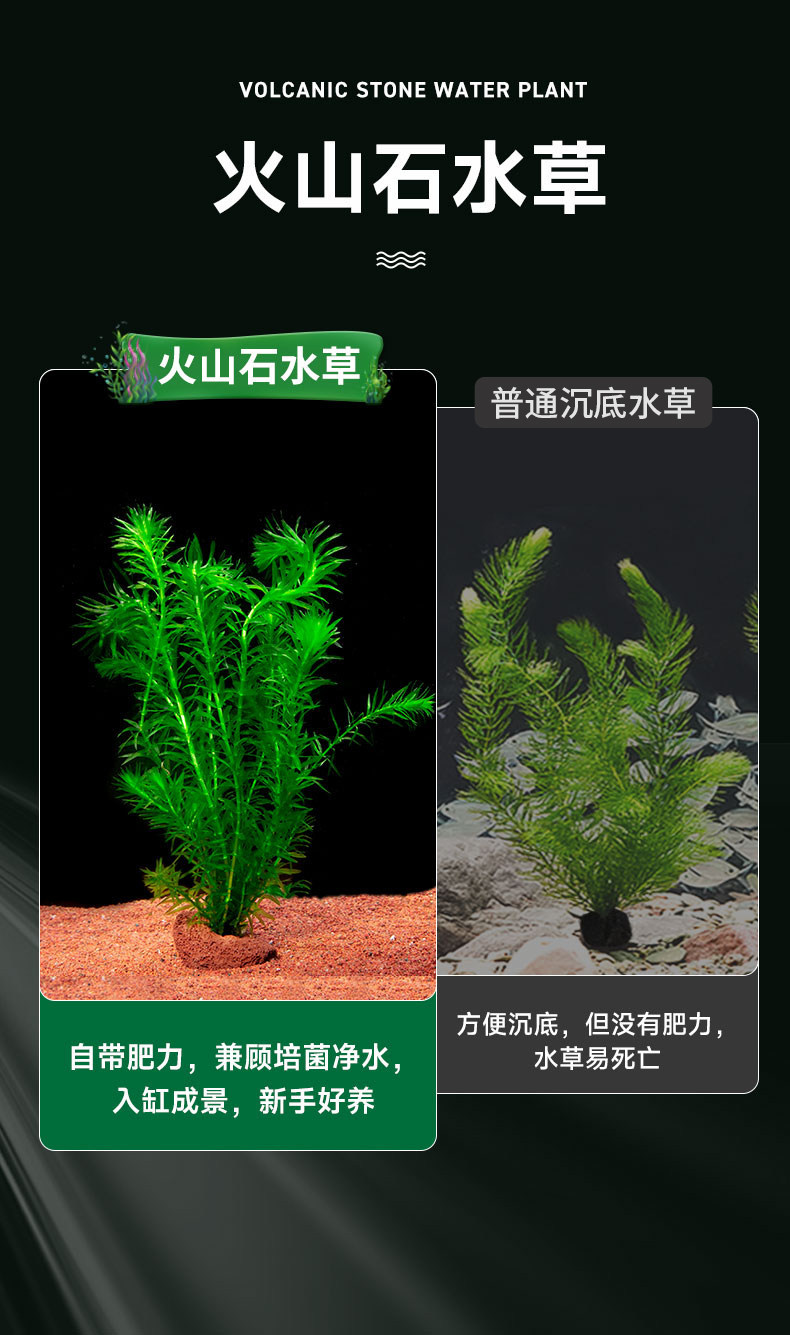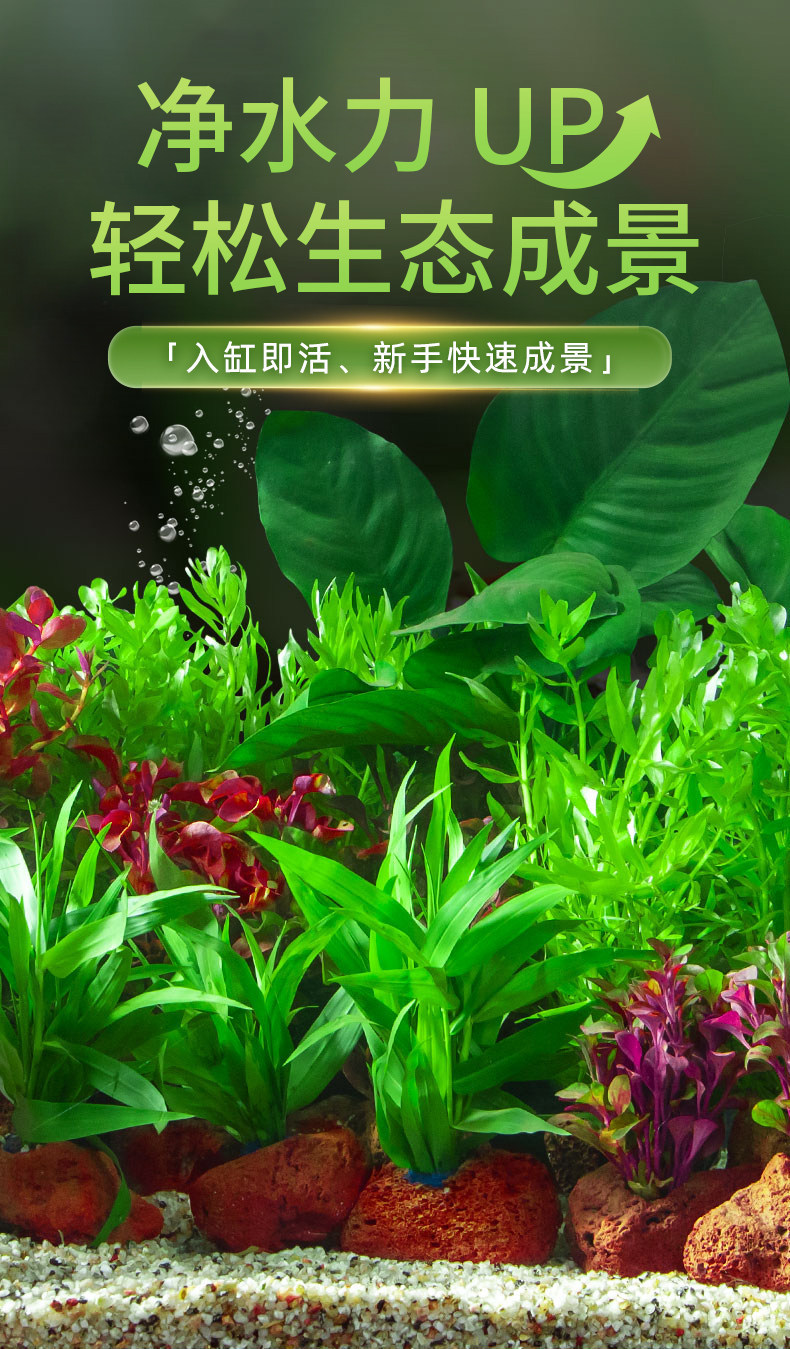 鱼缸水草植物真草造景摆件新手植物蜈蚣绿菊阴性草火山石净水绿植