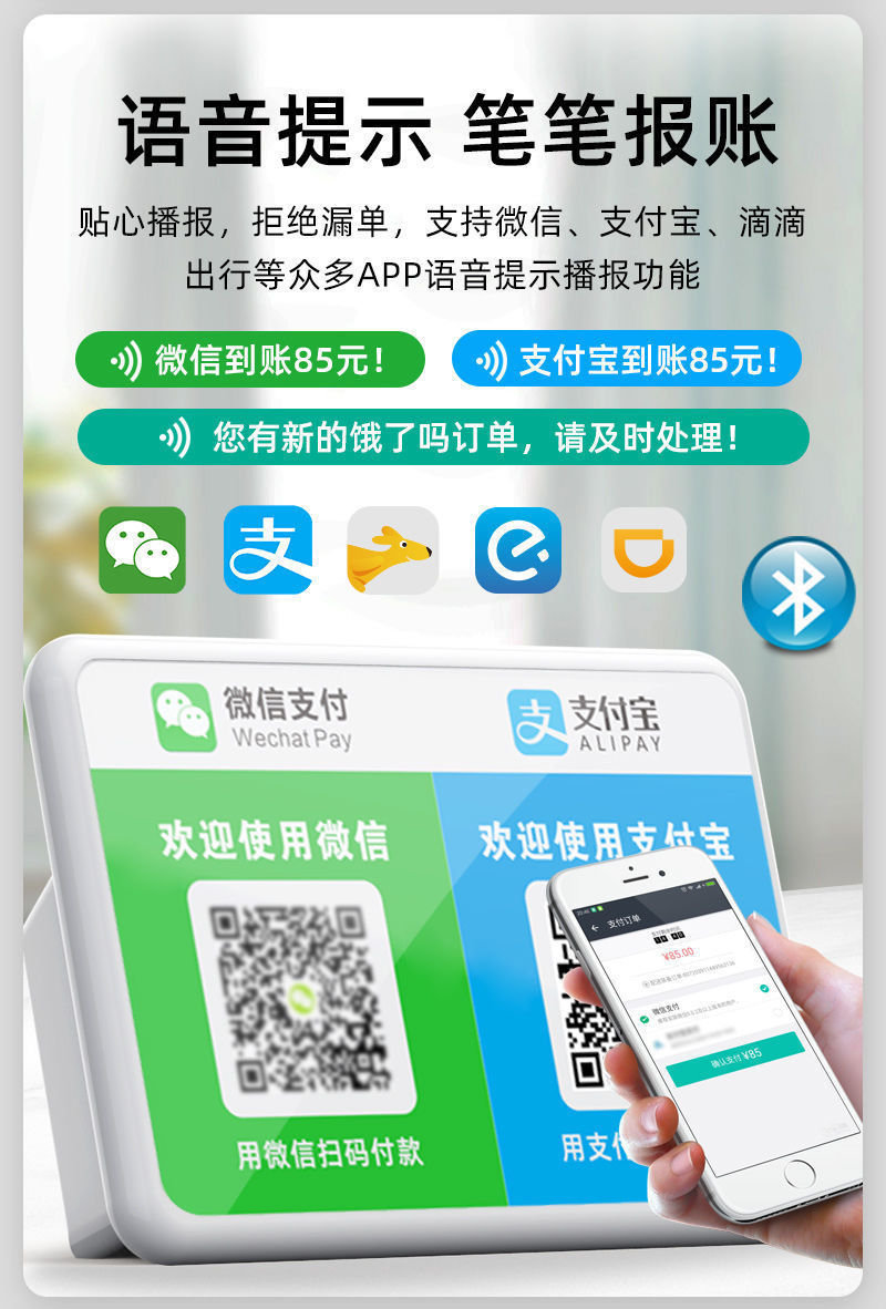 收钱神器提示音响微信支付宝语音播报器手机二维码扩音器蓝牙音箱