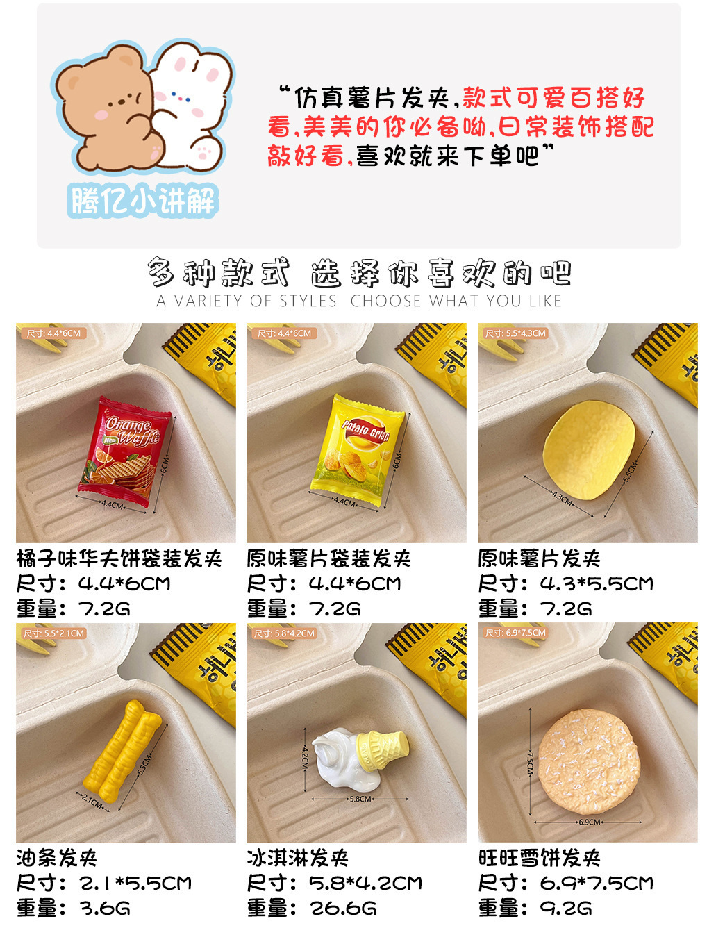 发卡后脑勺薯片搞怪发夹美食发饰批发头饰鸭嘴仿真食物卡通可爱