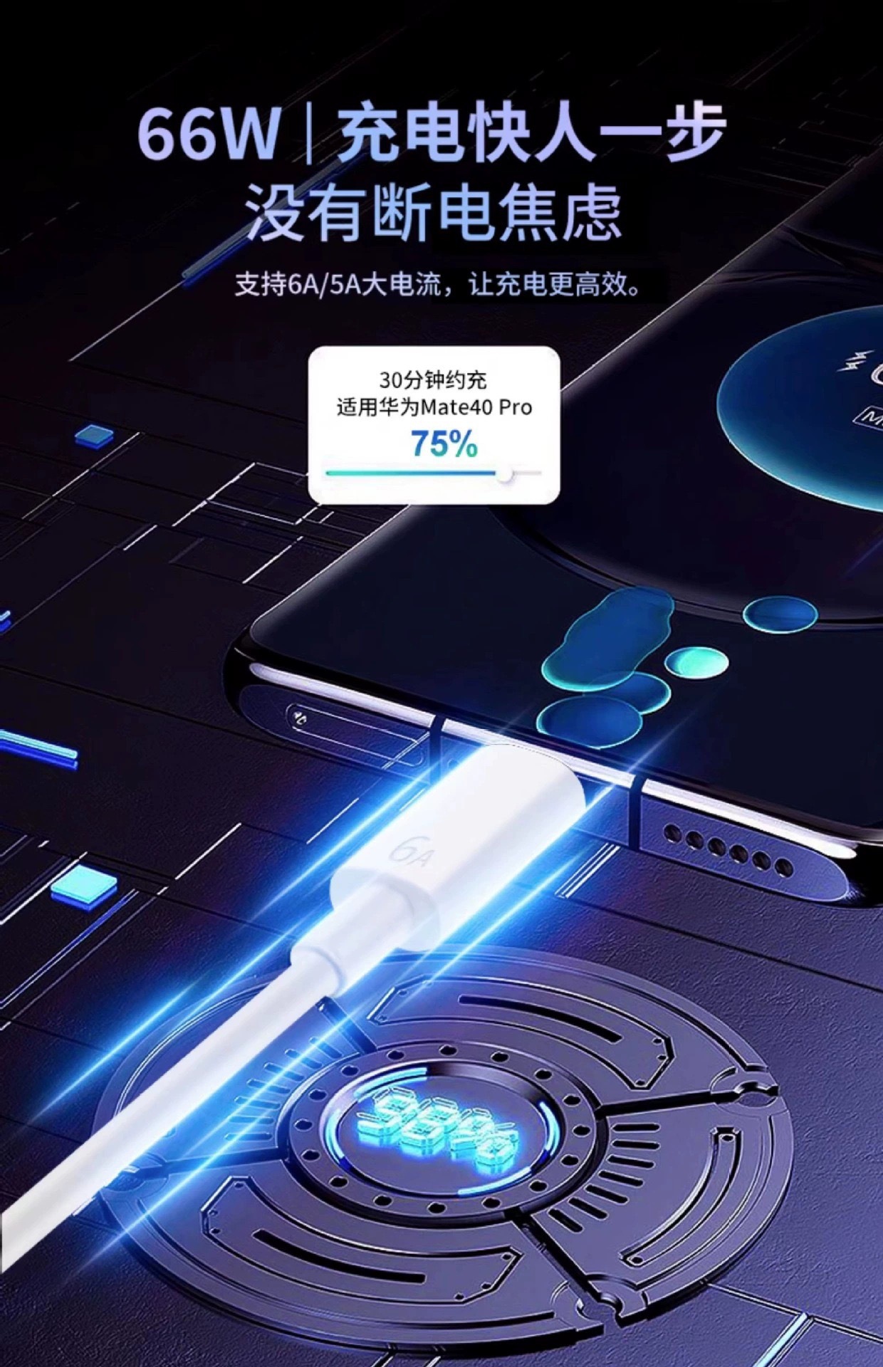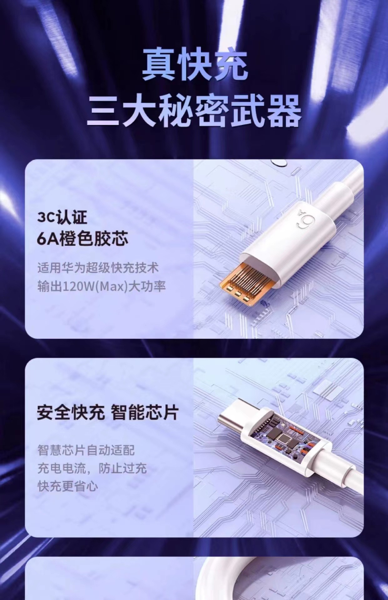 【乐购购】120超级快充充电头适用华为/荣耀手机充电器3C认证