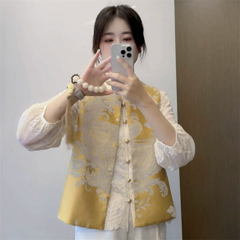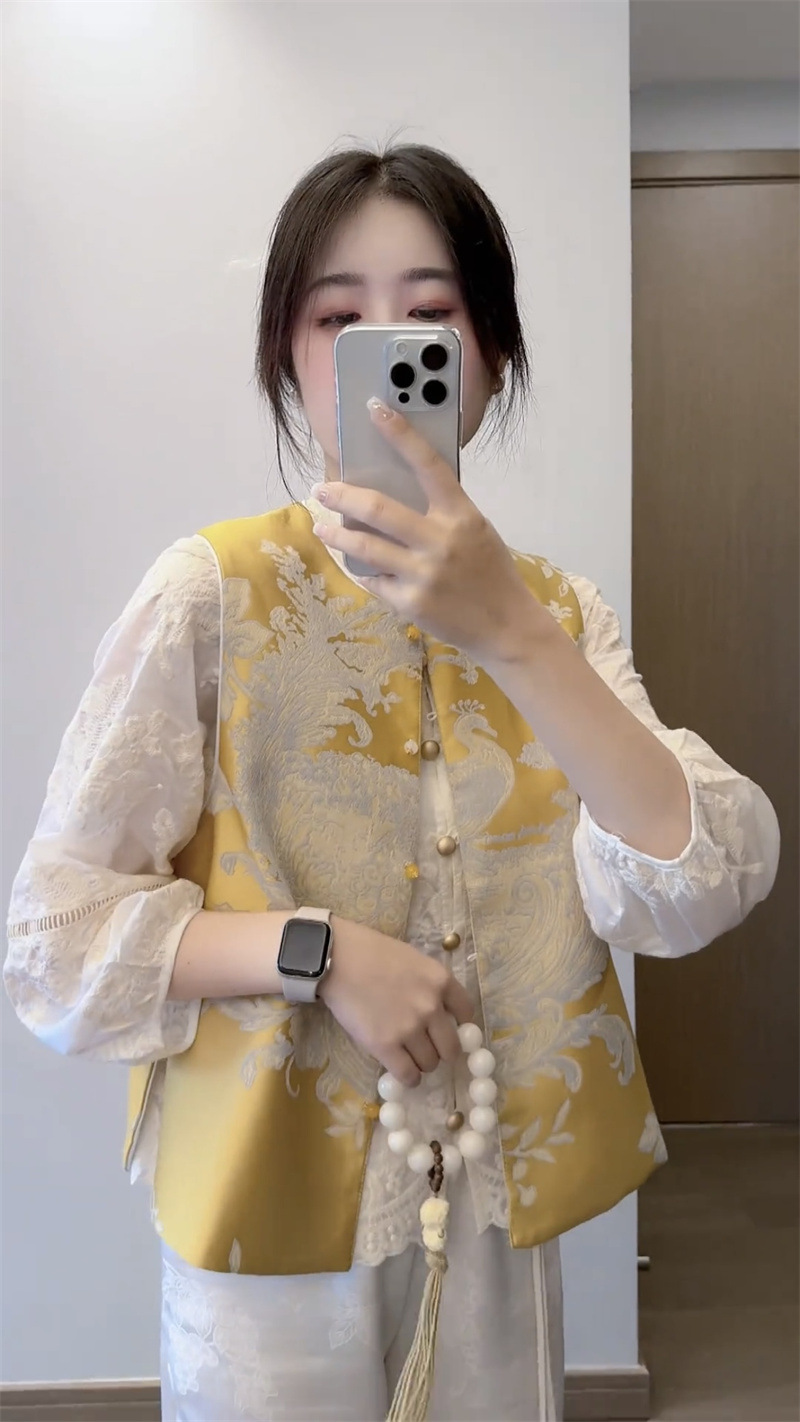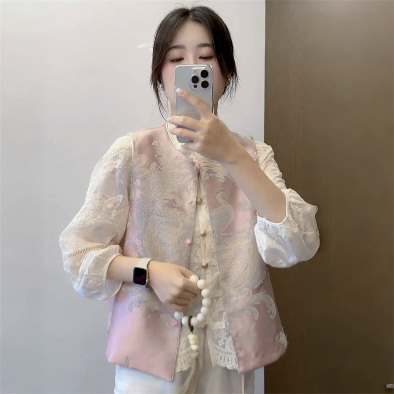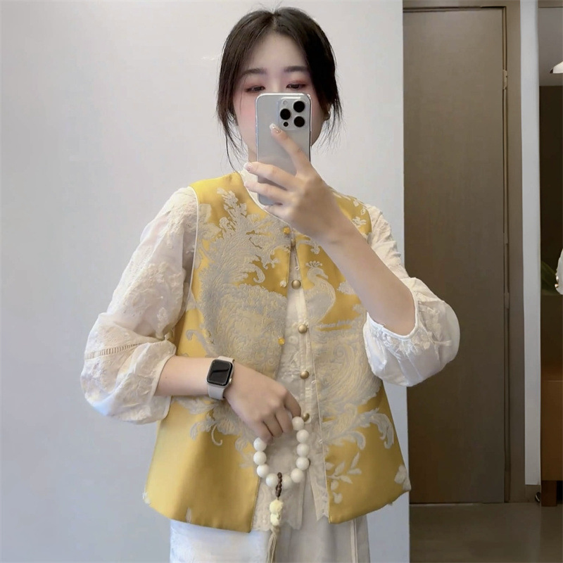 新中式国风刺绣马夹外套女款2025春季新款重工复古坎肩马甲衬衫潮