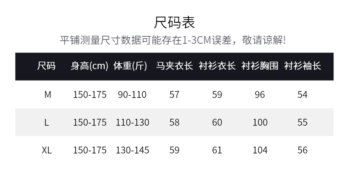| XL(131-145斤) | USD $23.75 | 274 piece available |