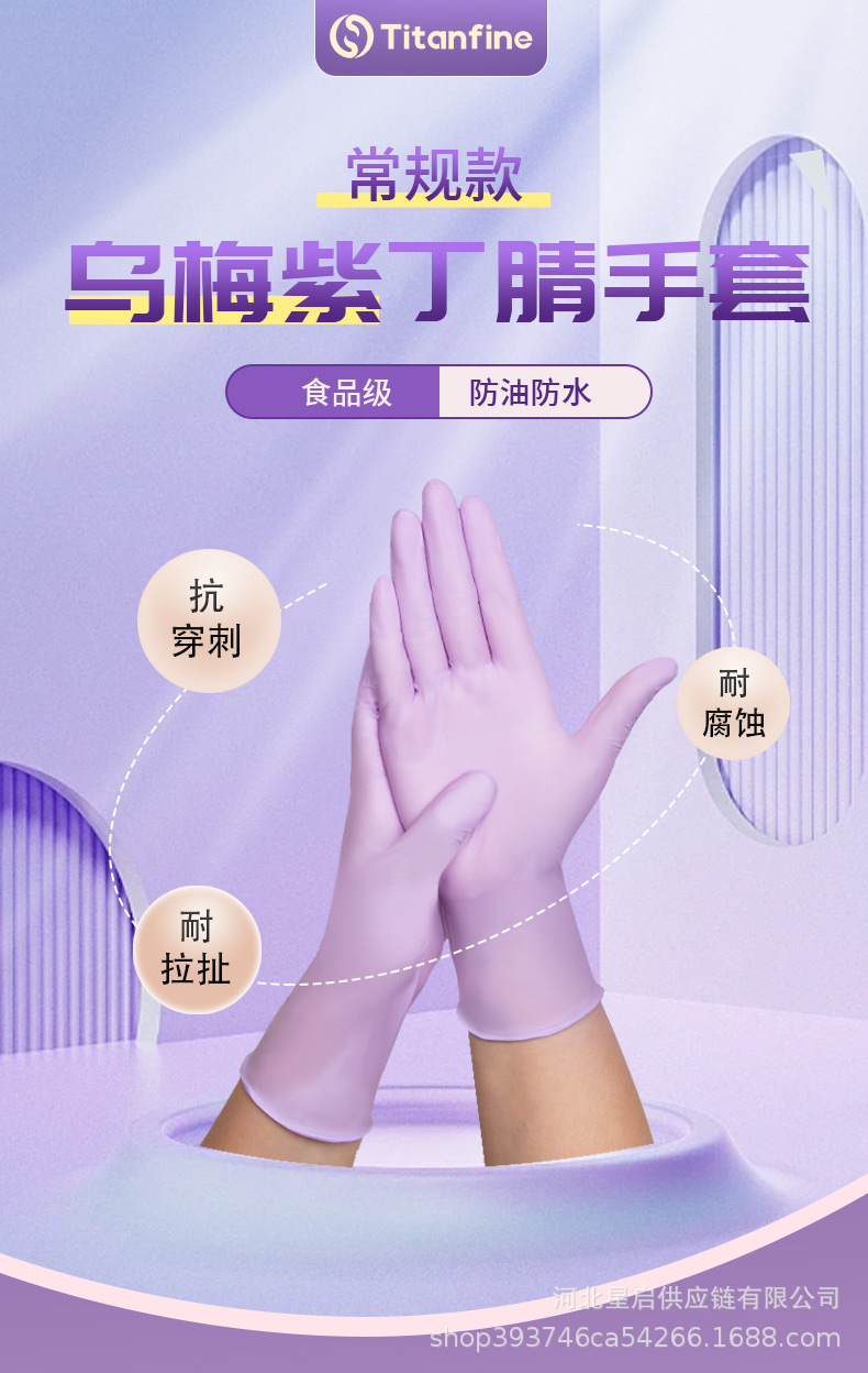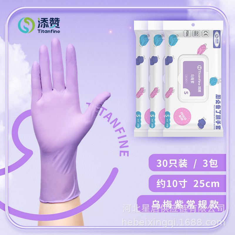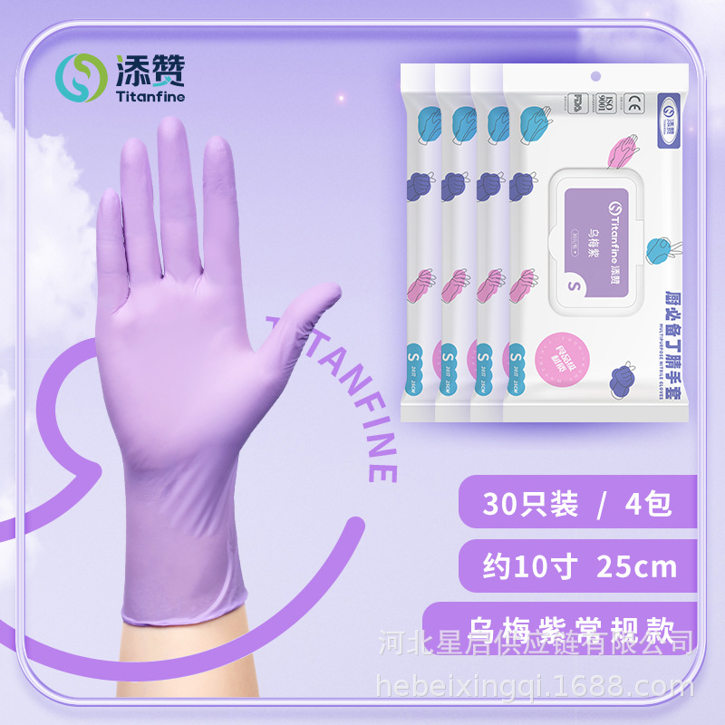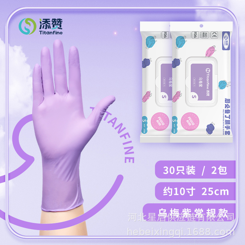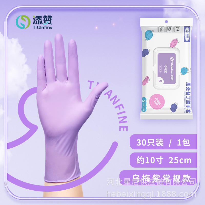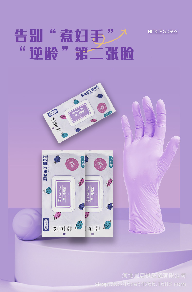 Titanfine一次性食品级纯丁腈手套厨房清洁美容染发丁腈手套批发