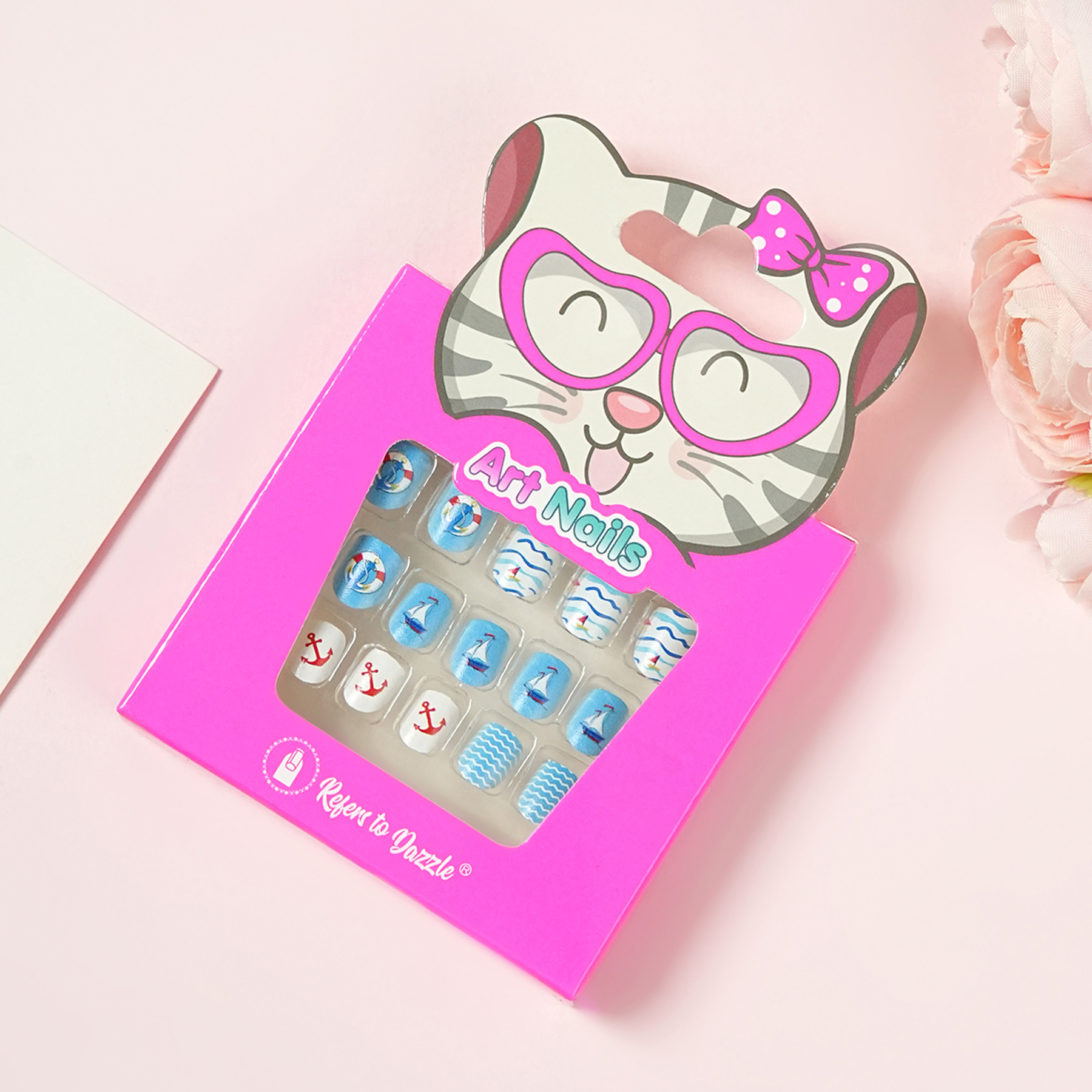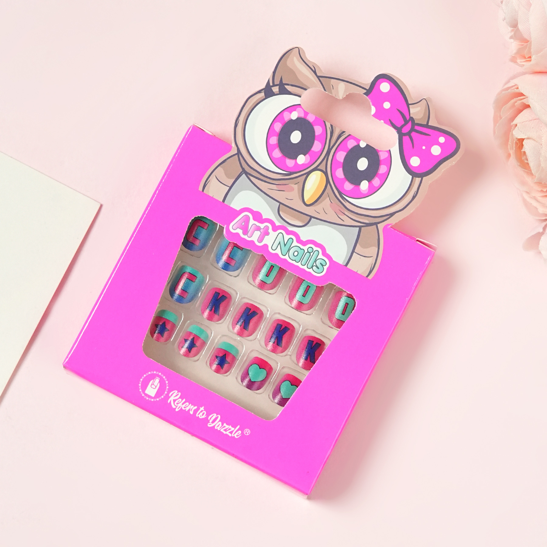 24片儿童穿戴甲指甲美甲片可爱专用背胶自带胶小童装饰表演3-6岁