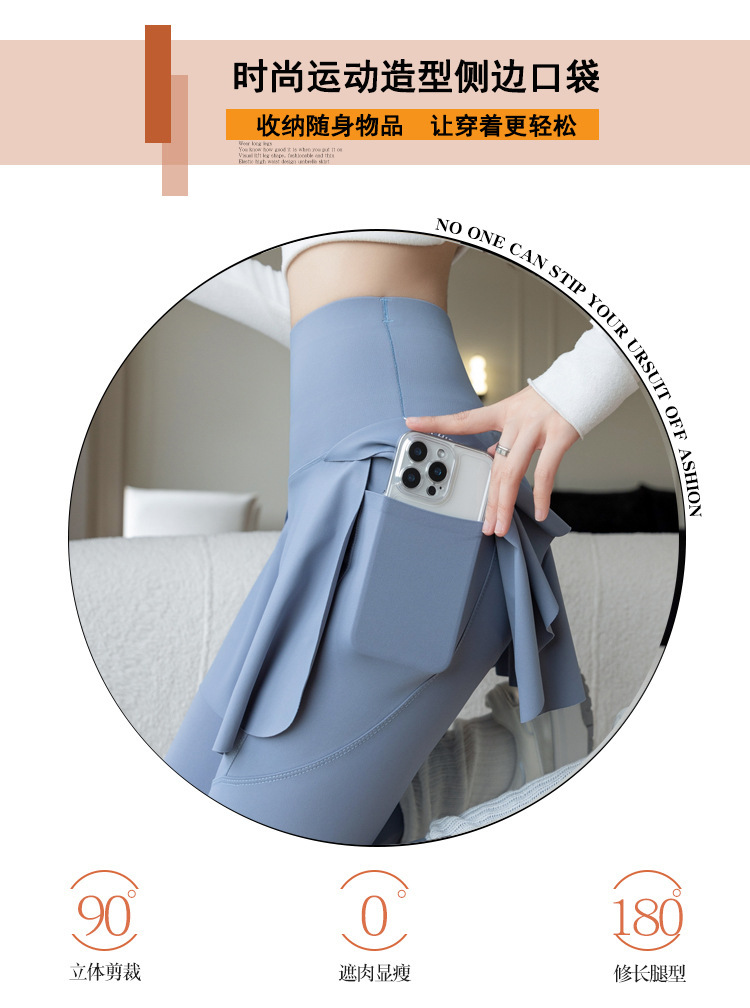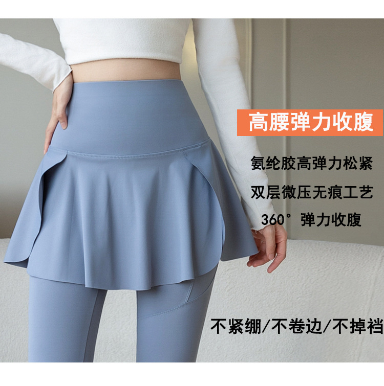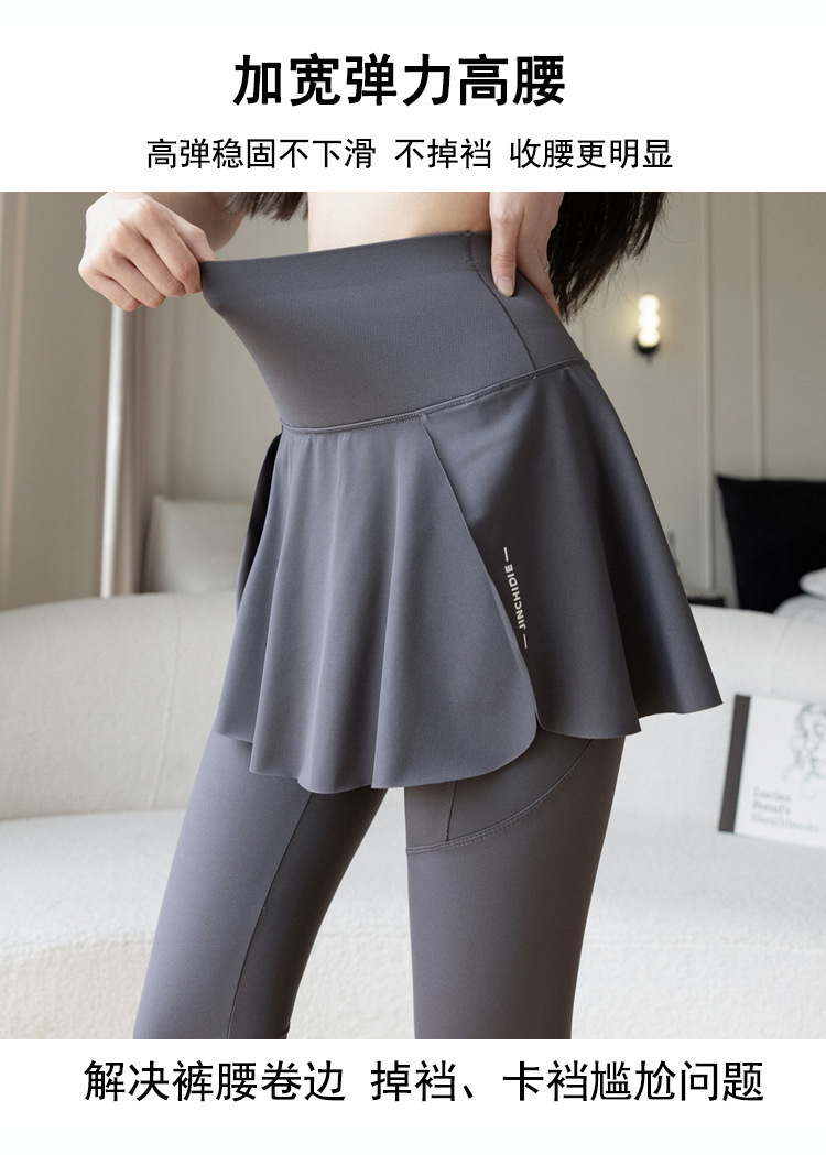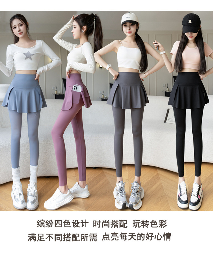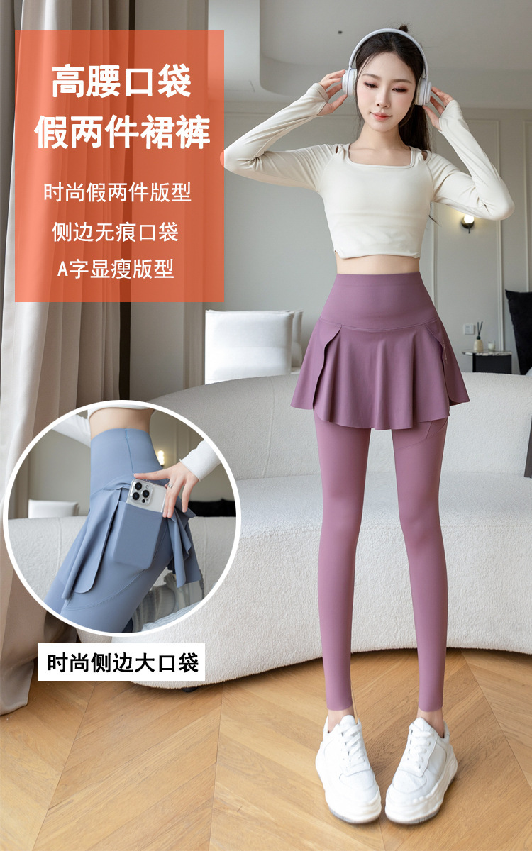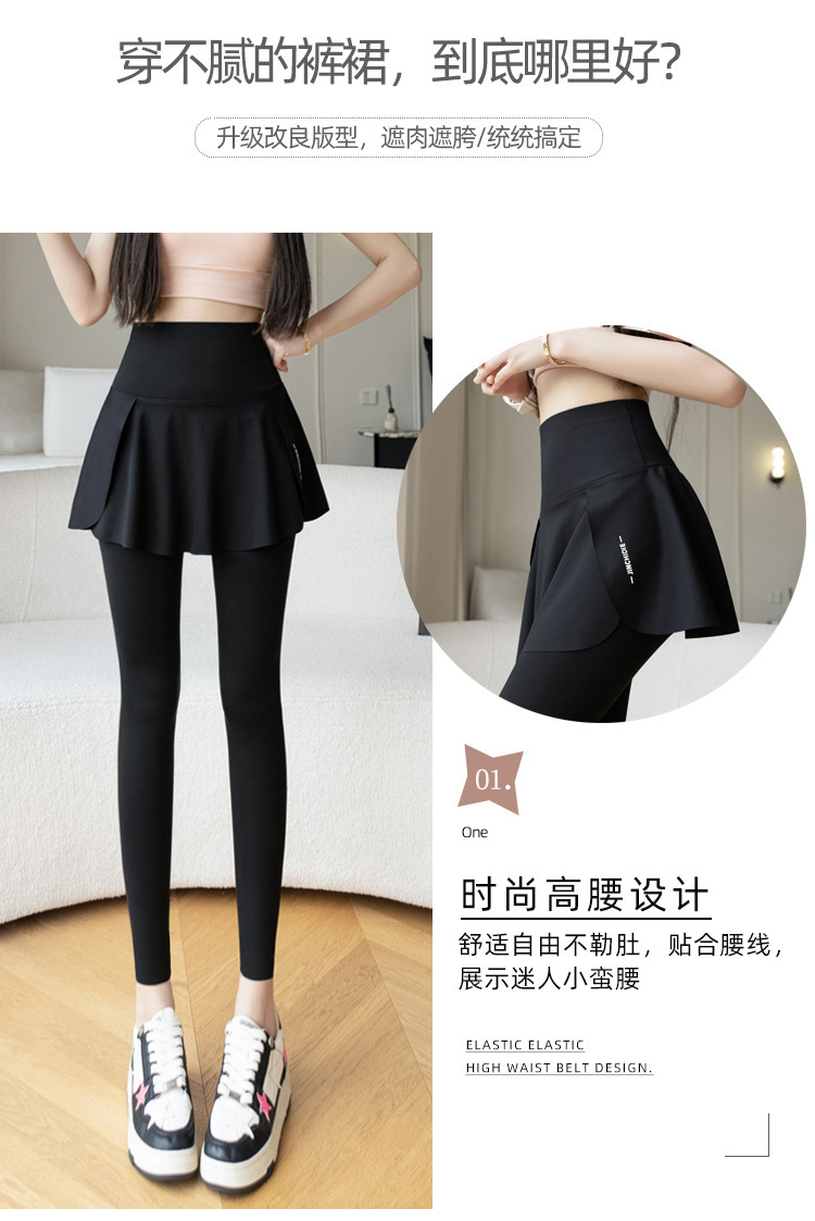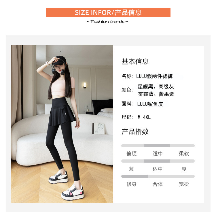 新款假两件裙裤口袋九分鲨鱼裤外穿瑜伽裤女大码打底裤东南亚跨境