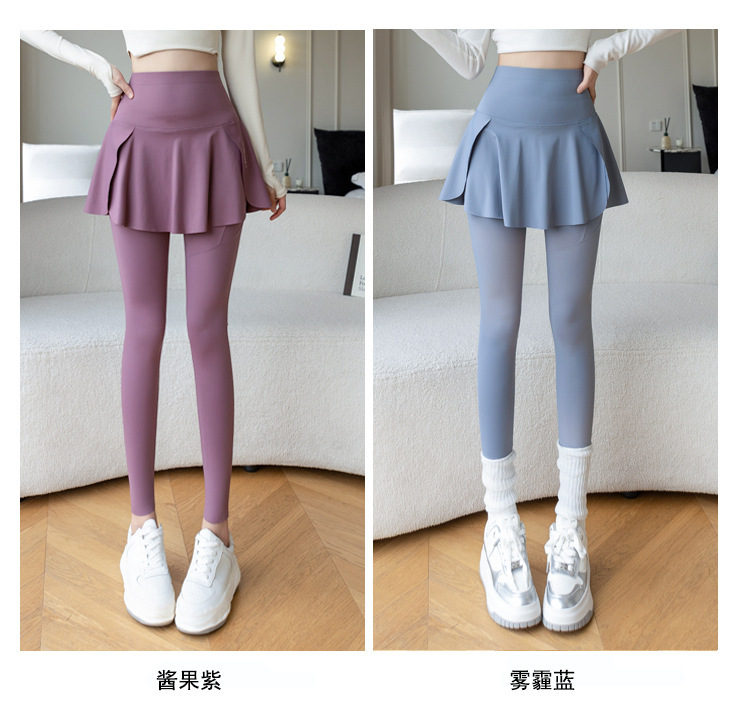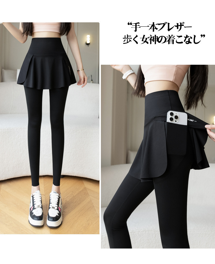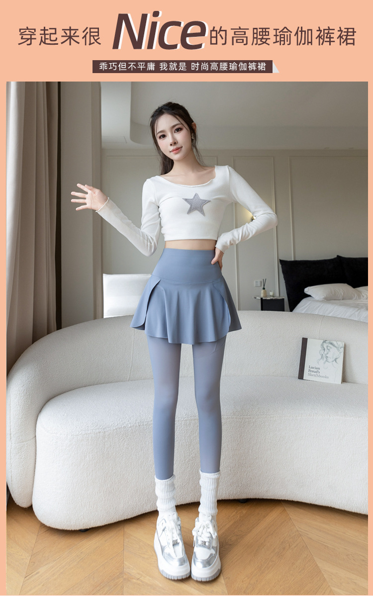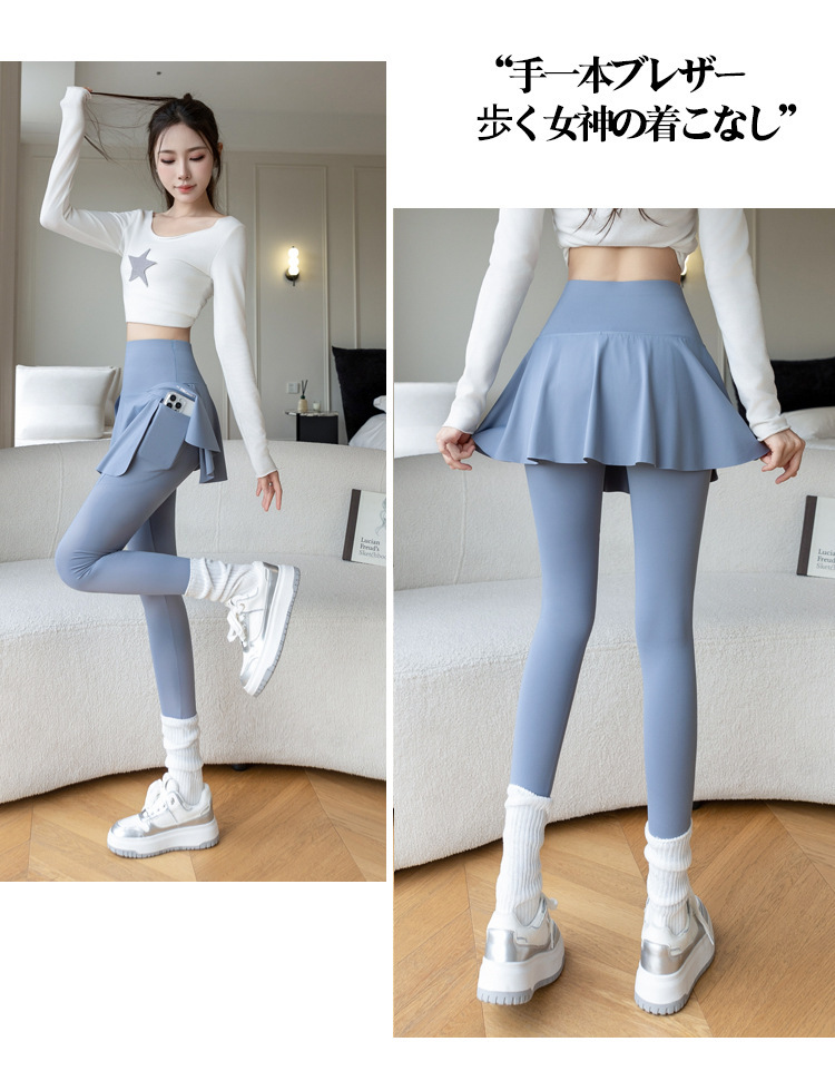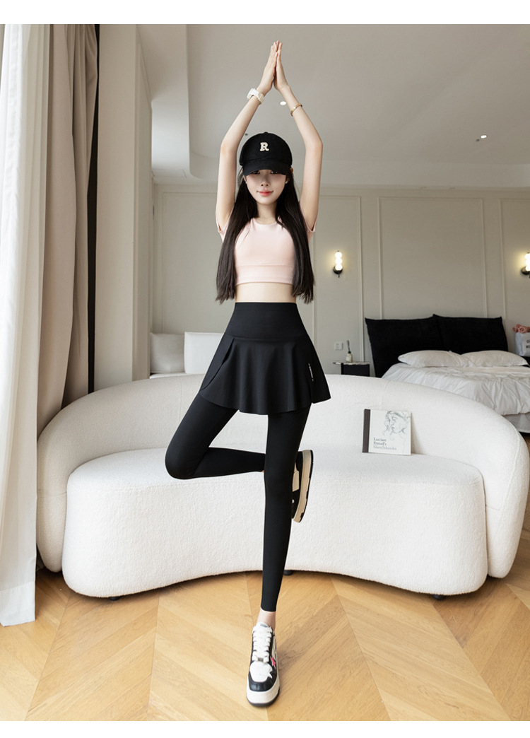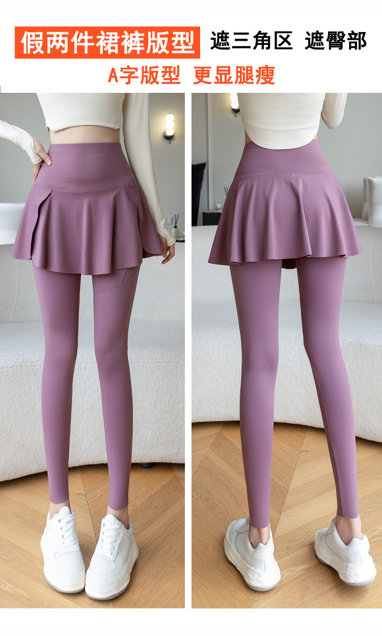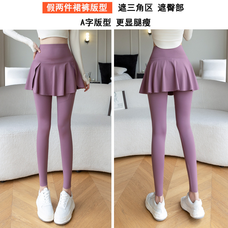 新款假两件裙裤口袋九分鲨鱼裤外穿瑜伽裤女大码打底裤东南亚跨境