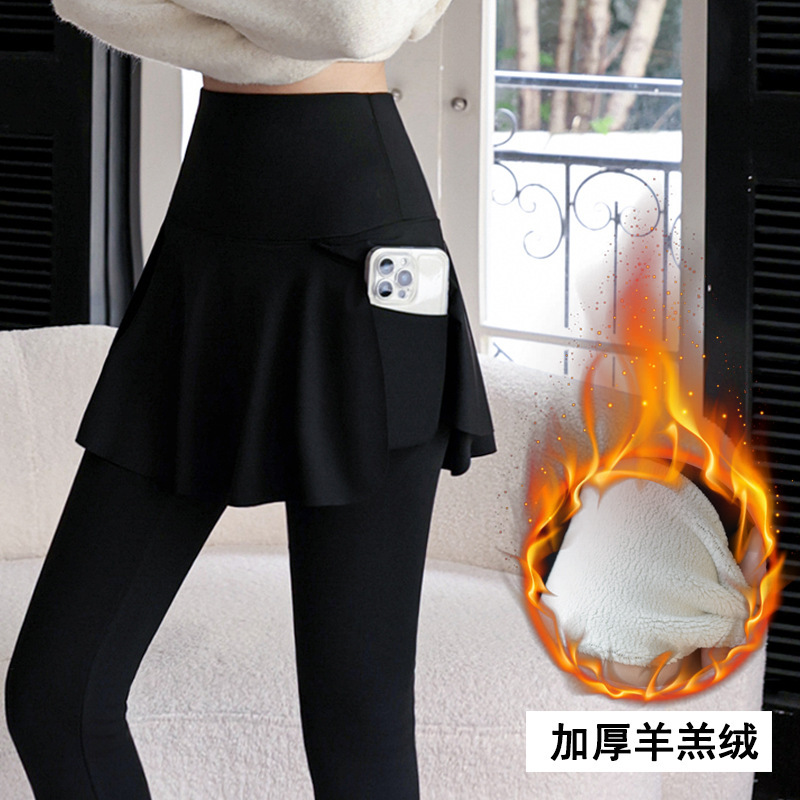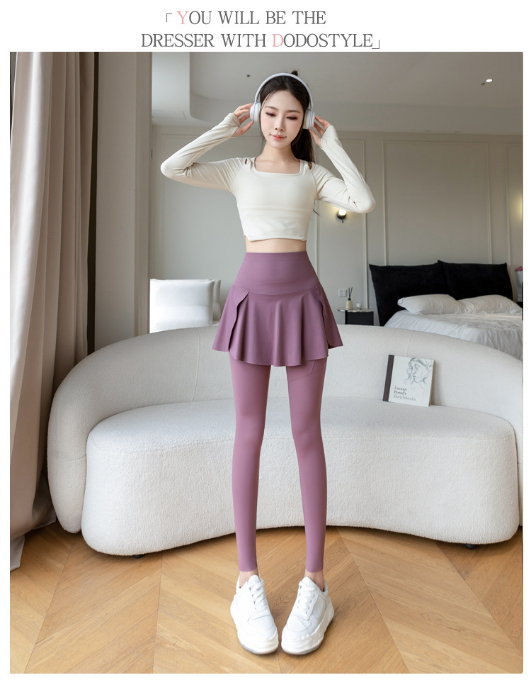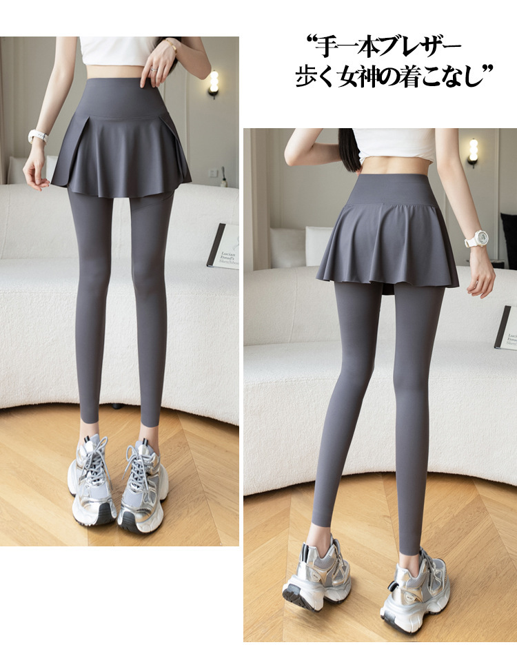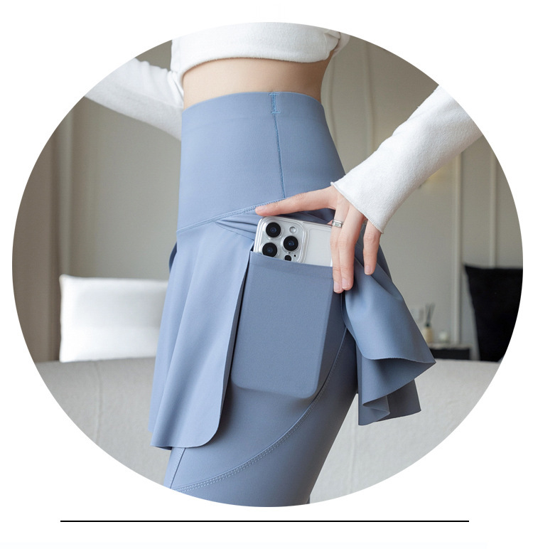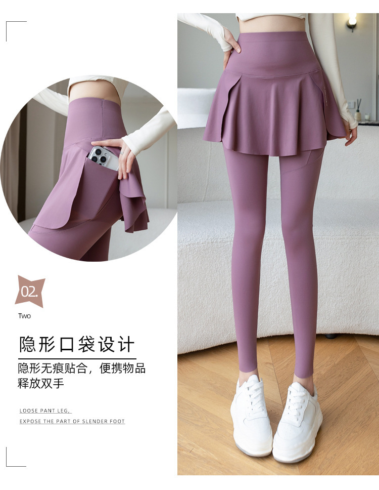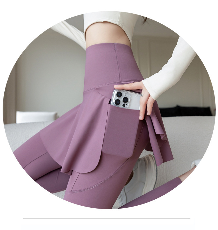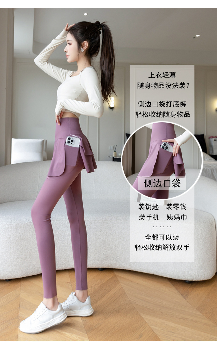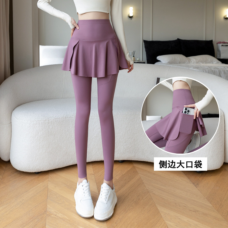 新款假两件裙裤口袋九分鲨鱼裤外穿瑜伽裤女大码打底裤东南亚跨境