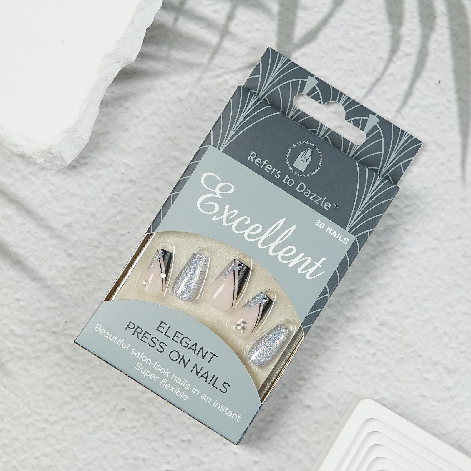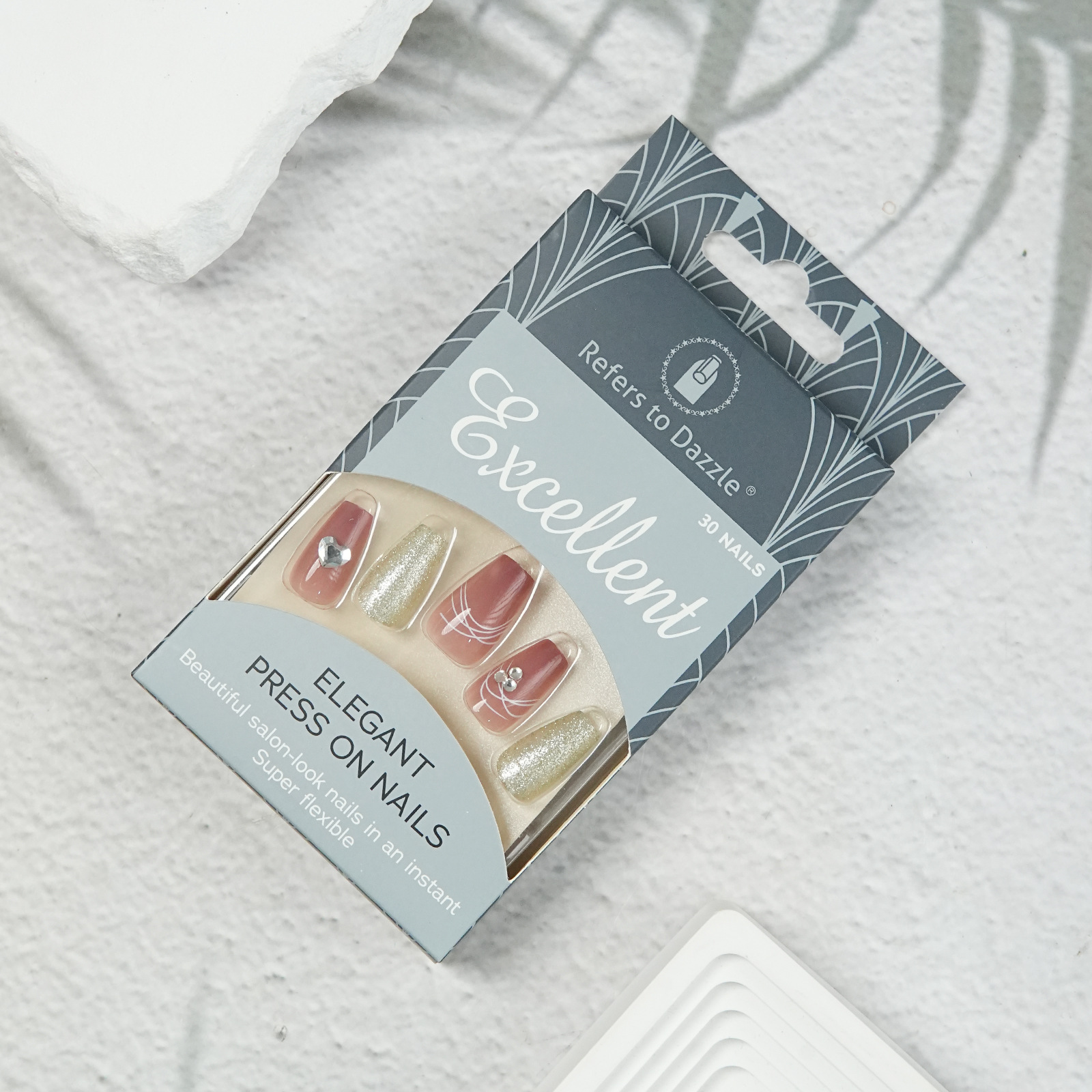 欧美穿戴甲跨境美甲贴片成品假指甲批发芭蕾甲带钻长梯30片配工具