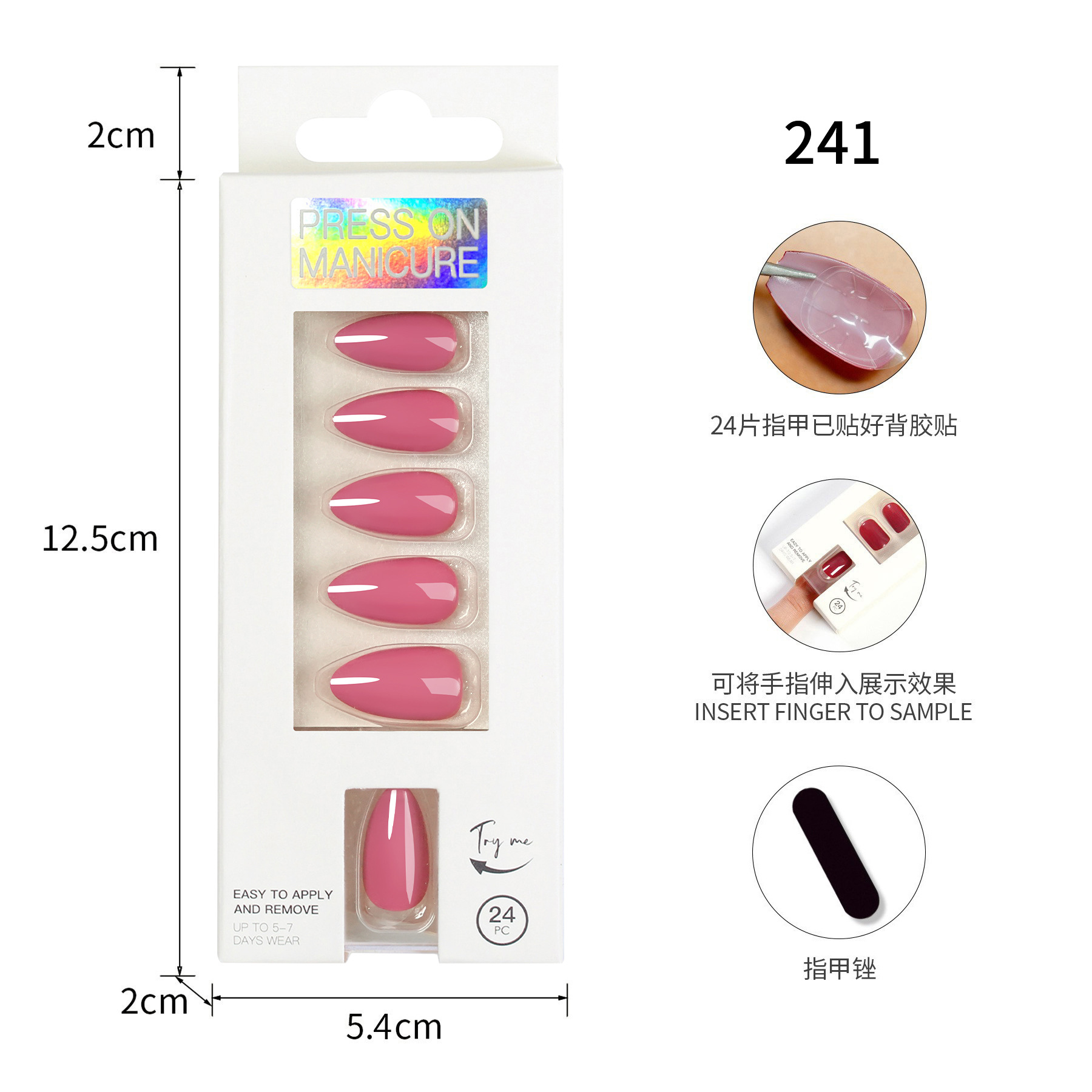 欧美短款杏仁甲假指甲24片穿戴甲背胶贴指甲中性包装全英文