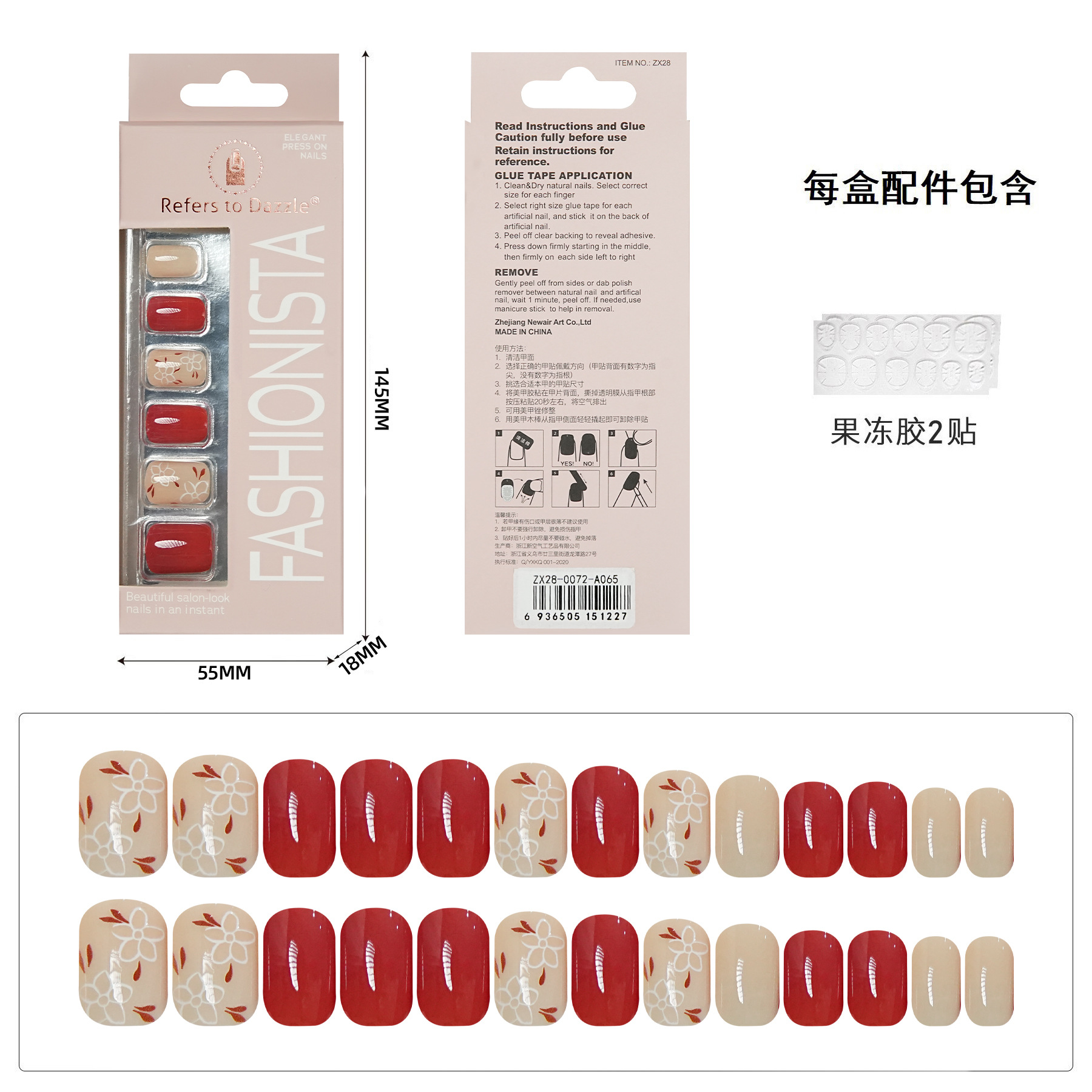 东南亚穿戴甲短款中款24片成品批发带背胶贴