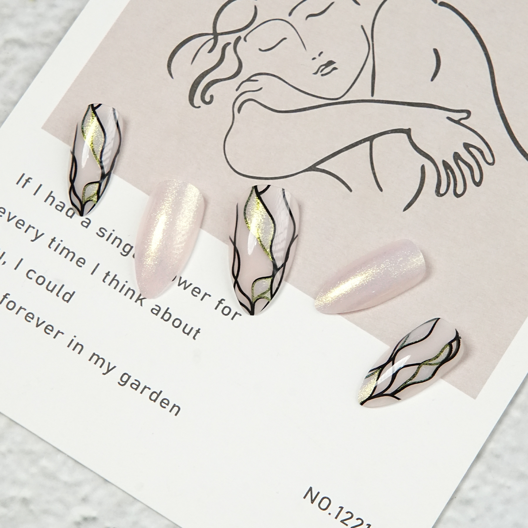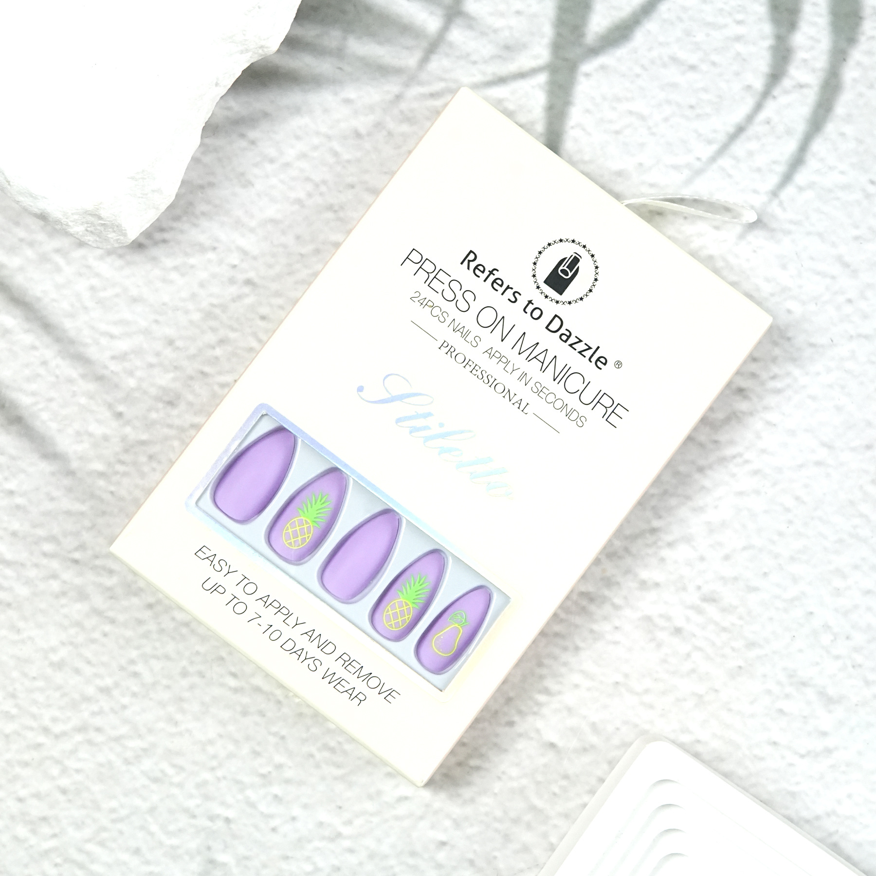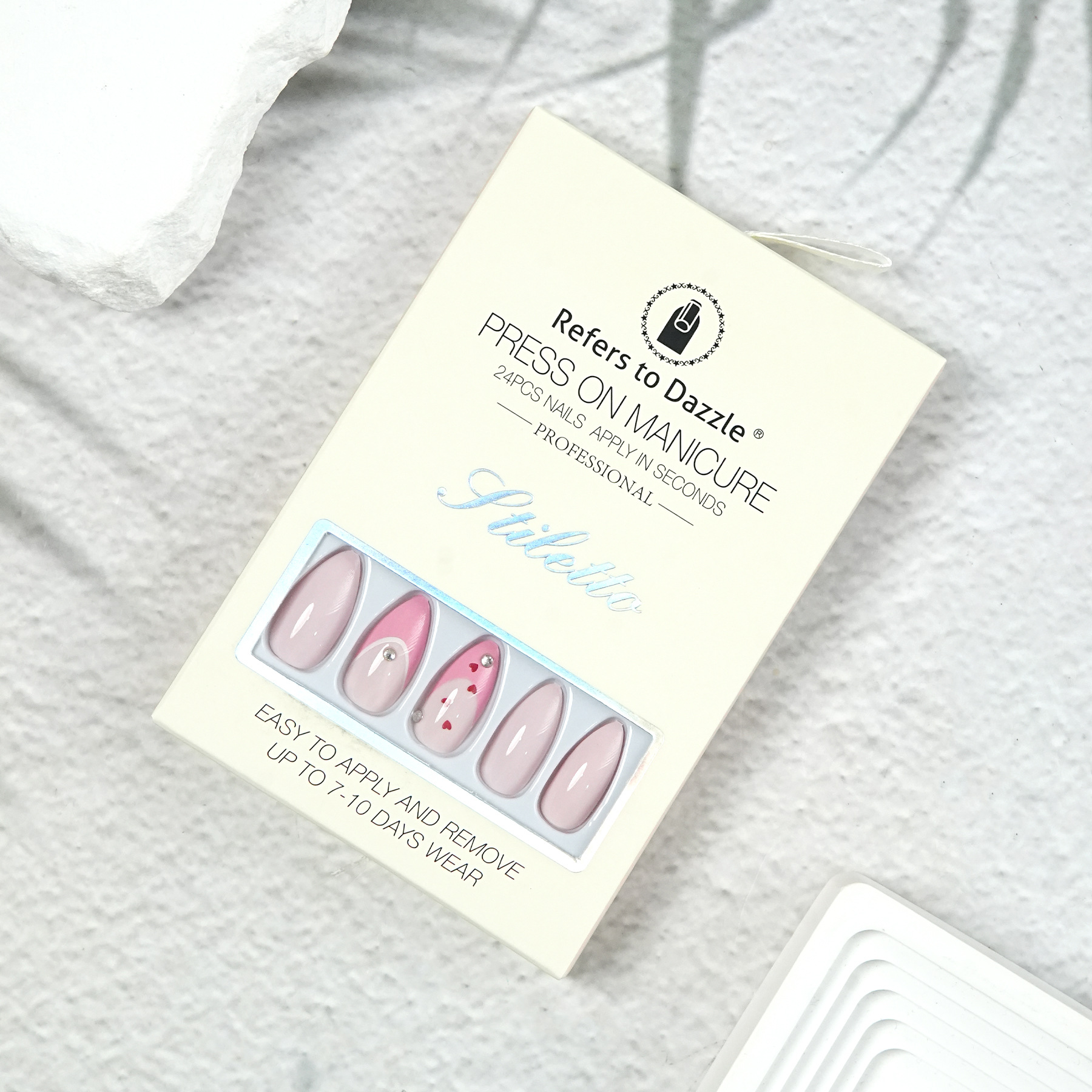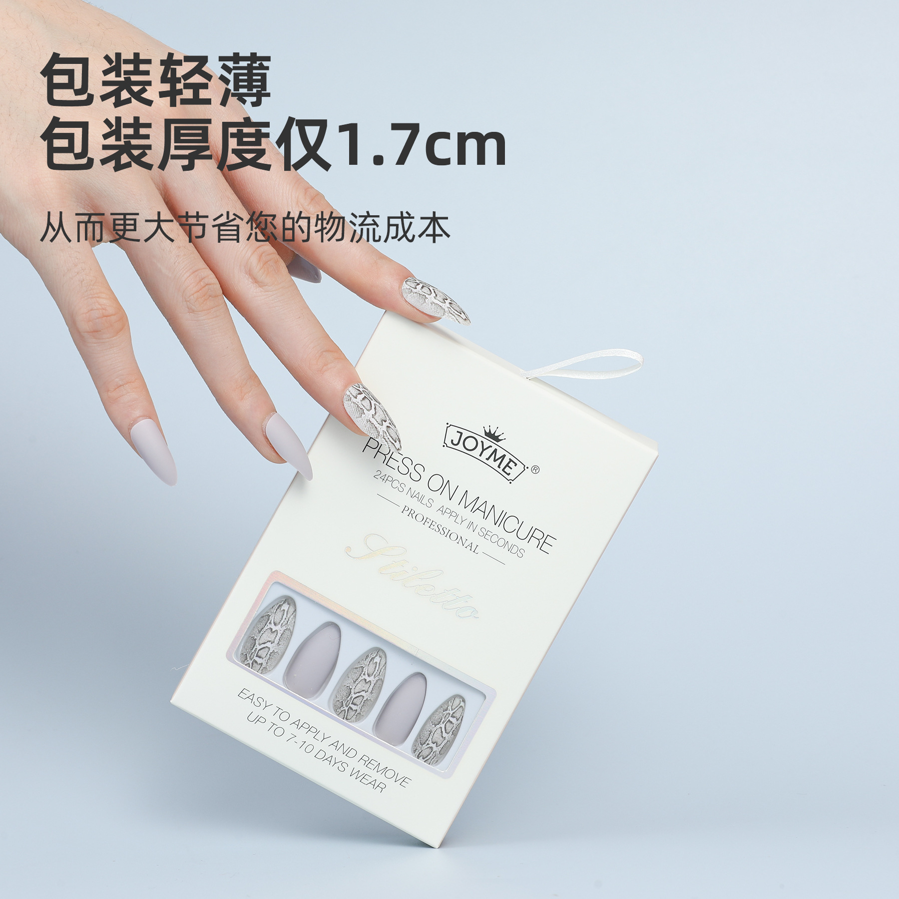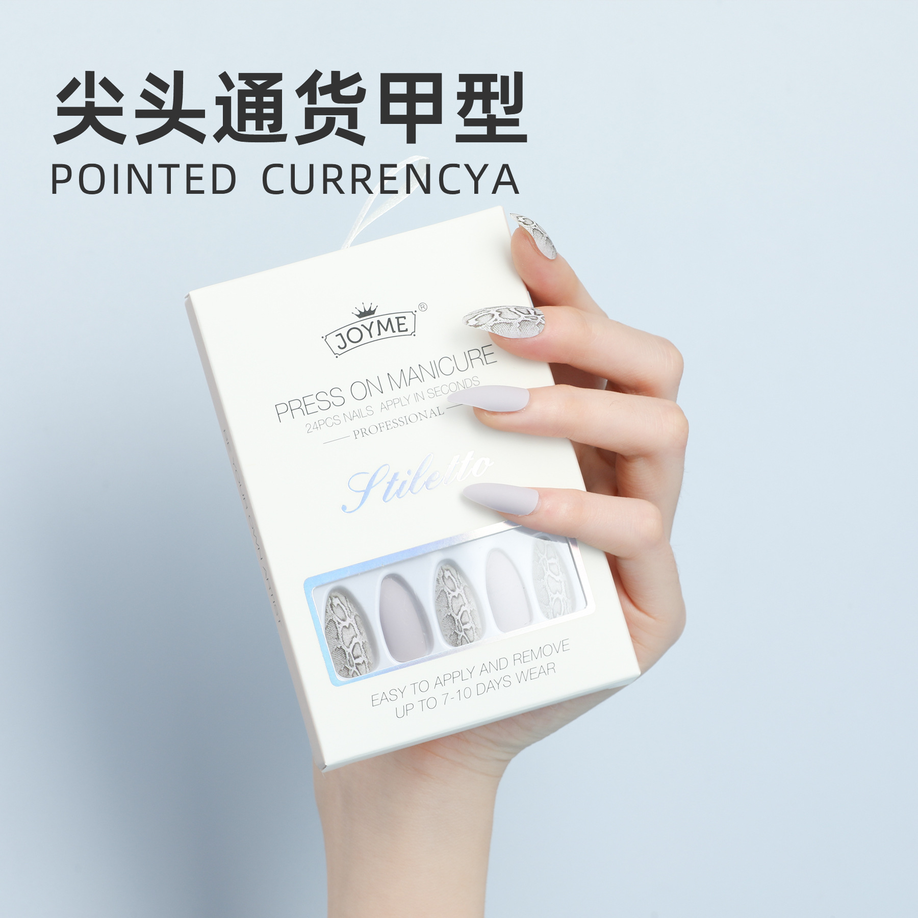 穿戴甲成品批发欧美尖头假指甲简约法式渐变条纹24片带背胶贴