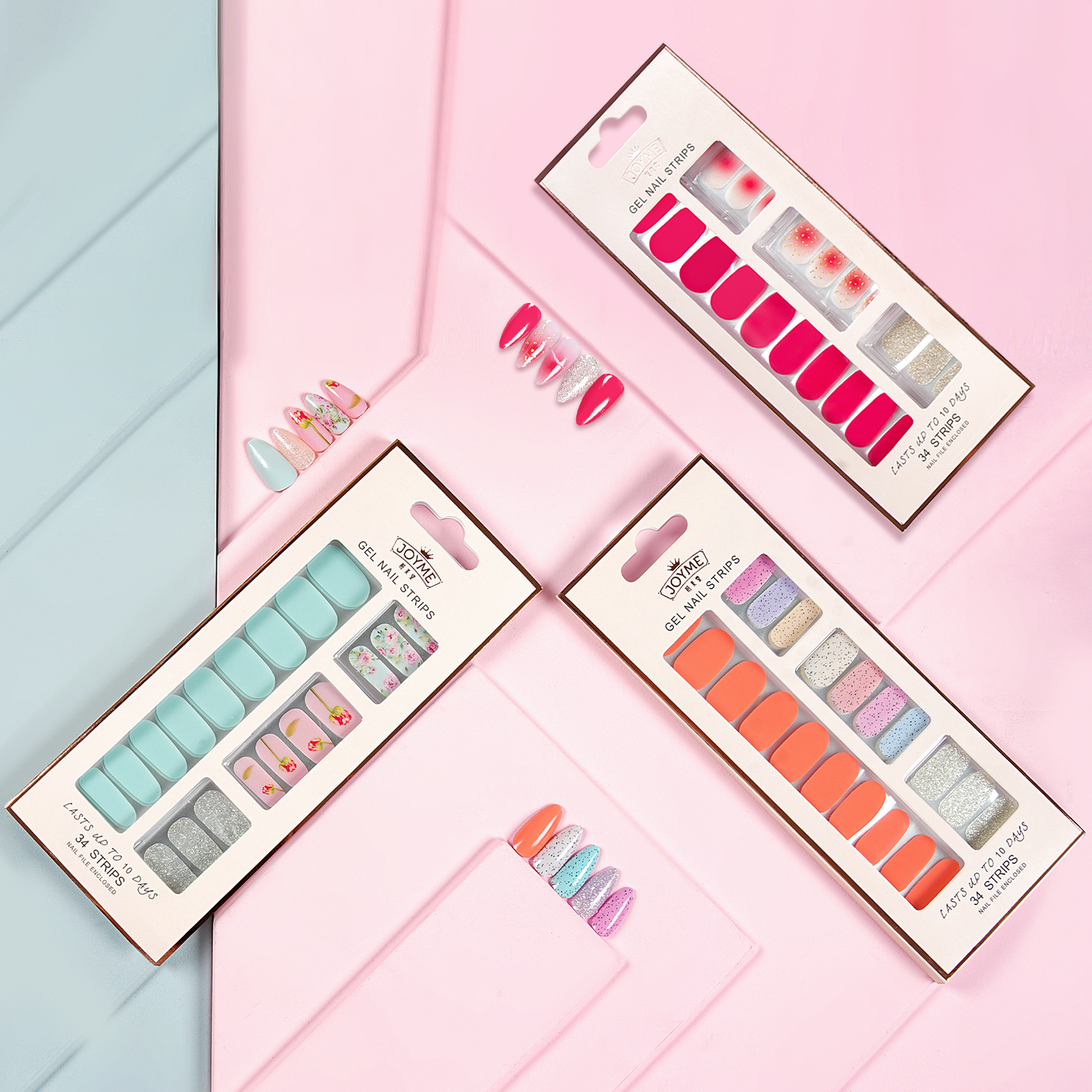 美甲贴纸防水免考简约纯色34指全贴凝胶柔韧服帖不翘边指甲贴纸