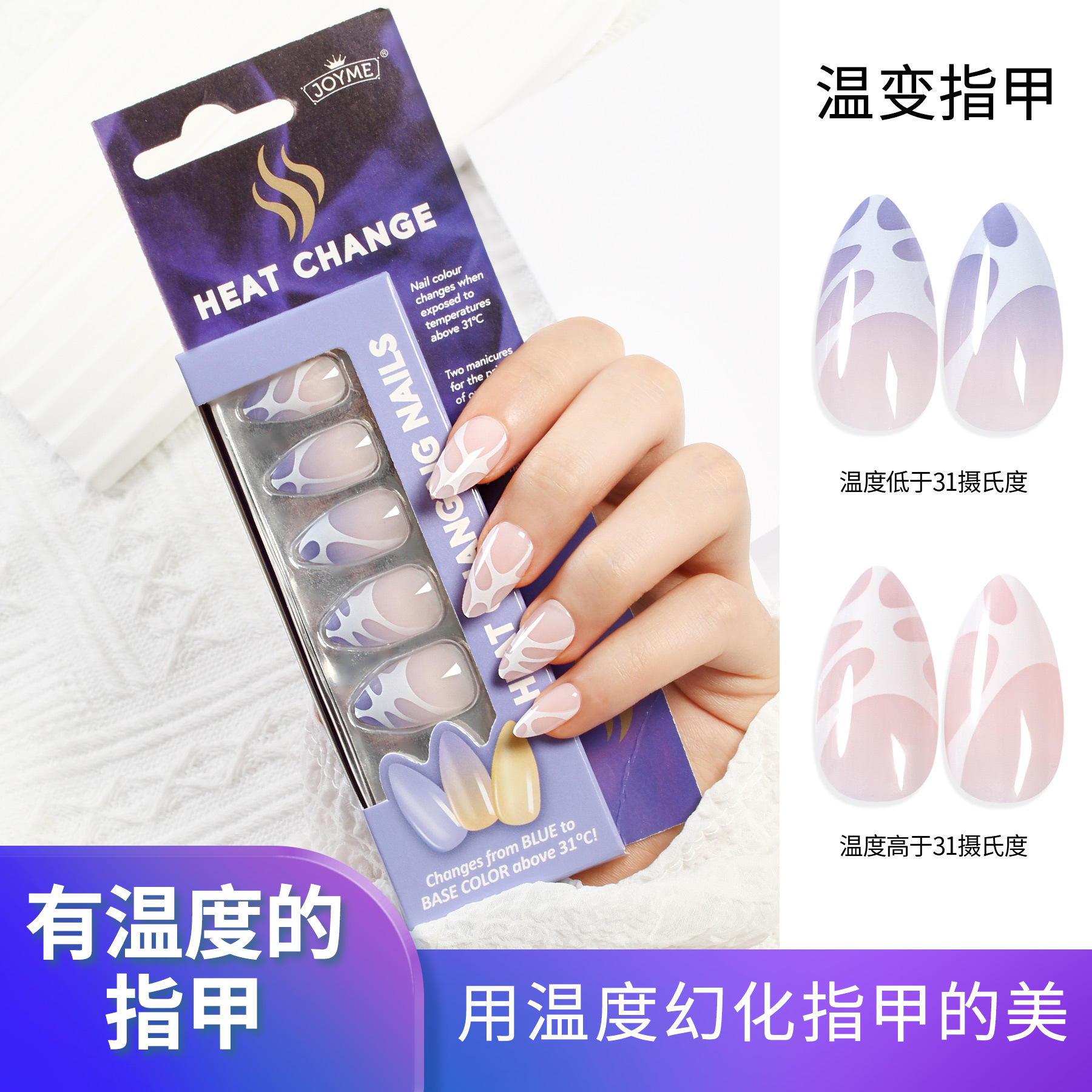 光变温变穿戴甲变色美甲贴片指甲贴片假指甲批发欧美跨境24片