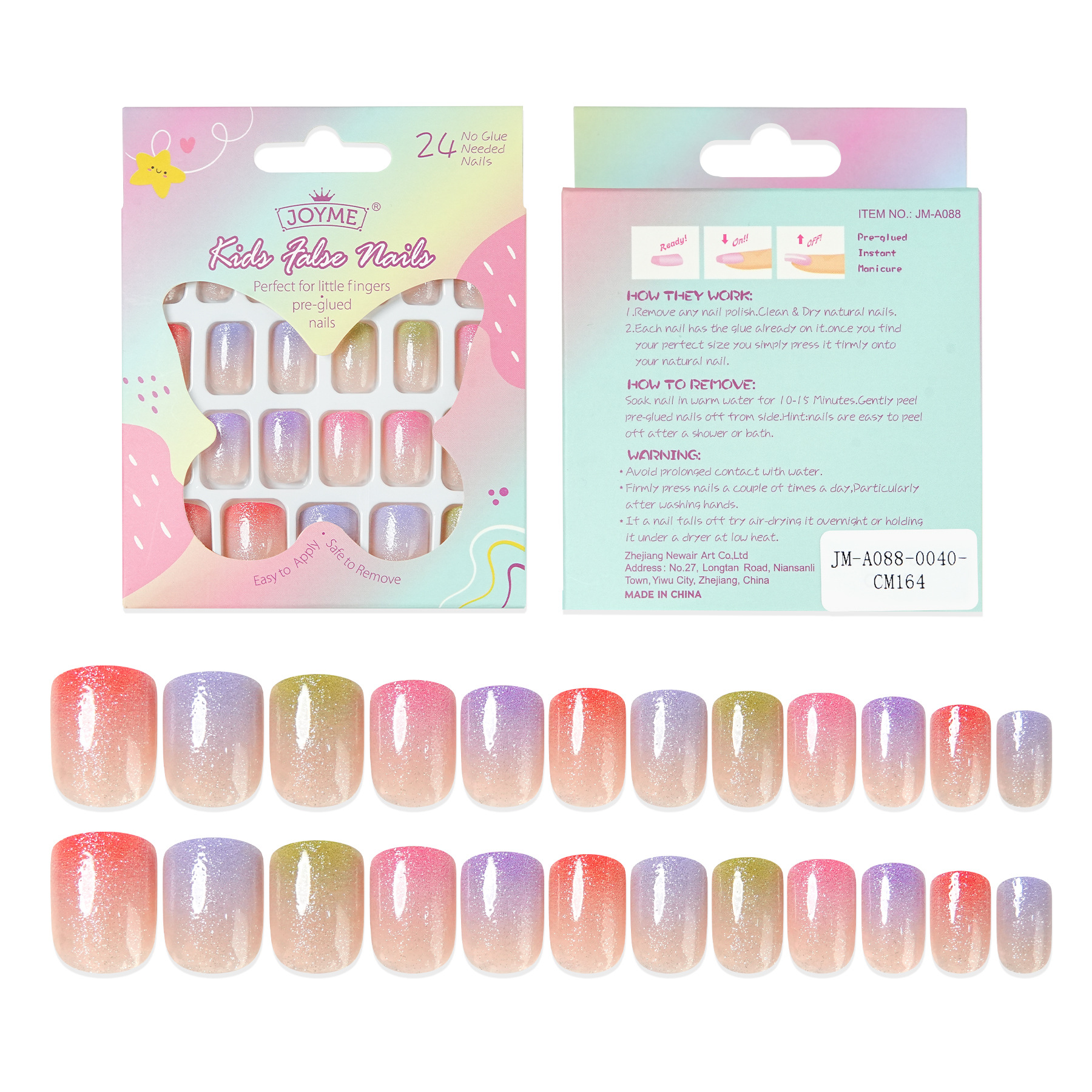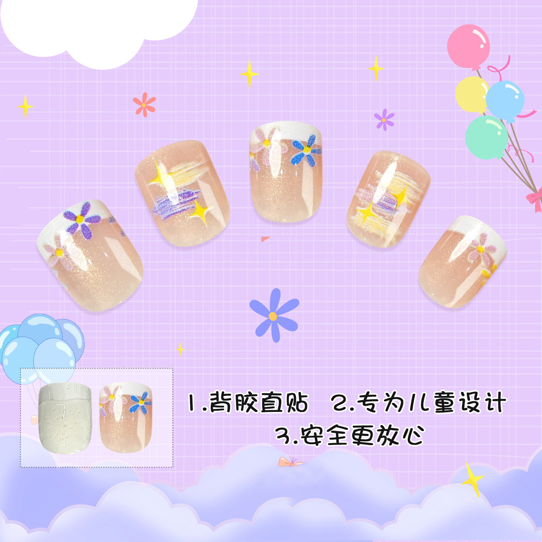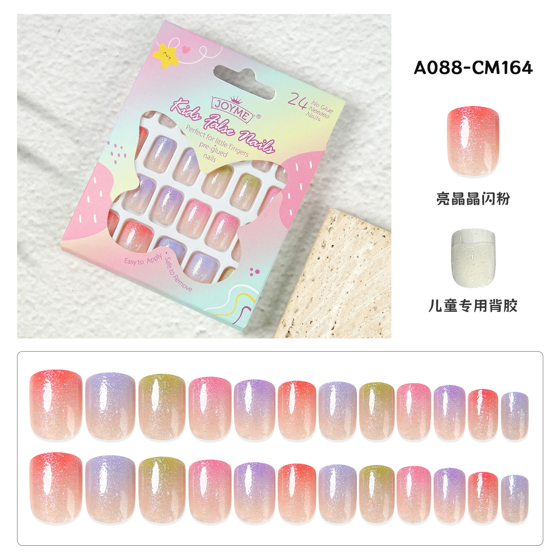 新款儿童背胶穿戴甲自带胶自粘免胶水方头渐变超闪幻彩卡通5-12岁