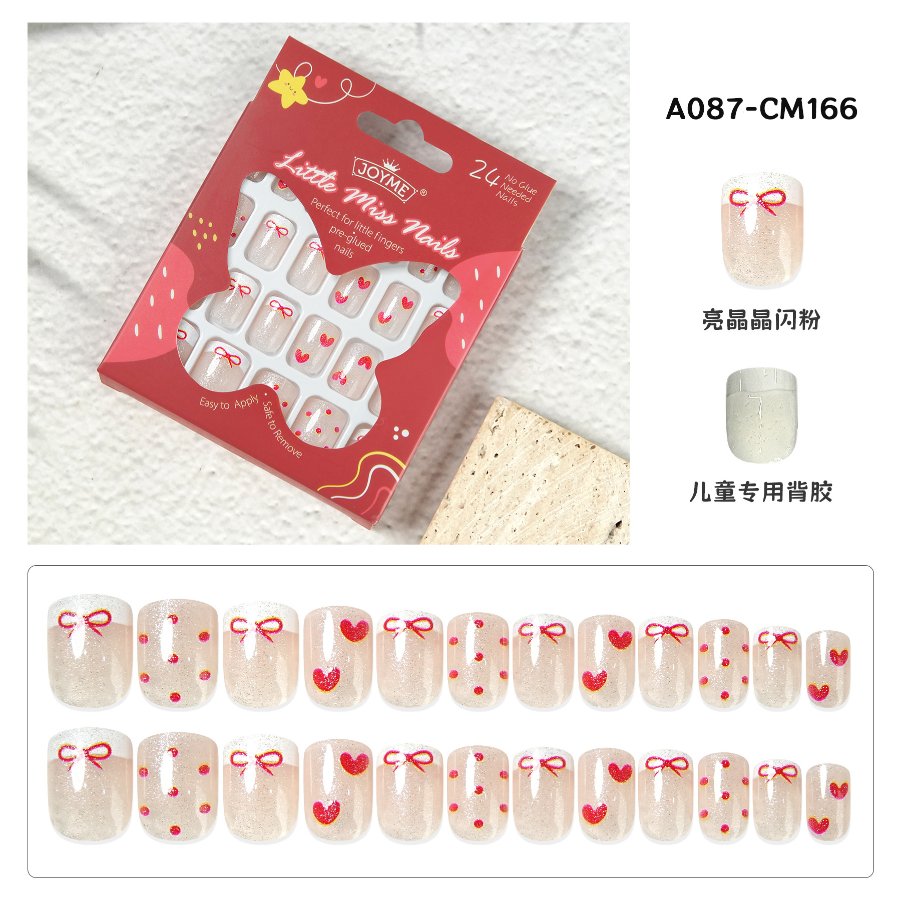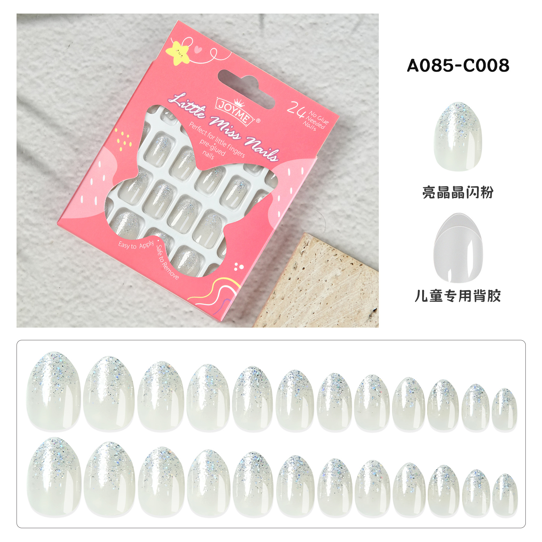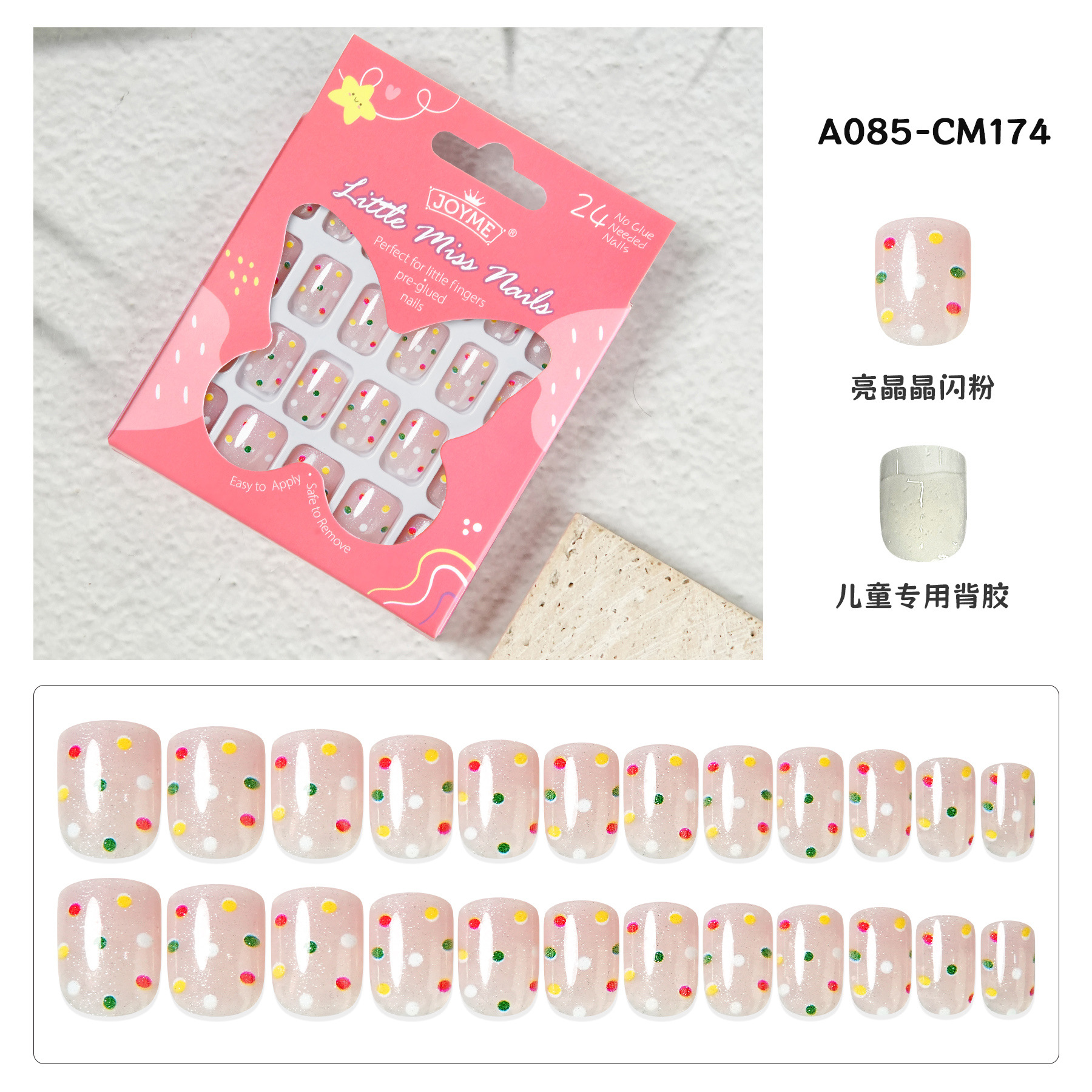 新款儿童背胶穿戴甲自带胶自粘免胶水方头渐变超闪幻彩卡通5-12岁