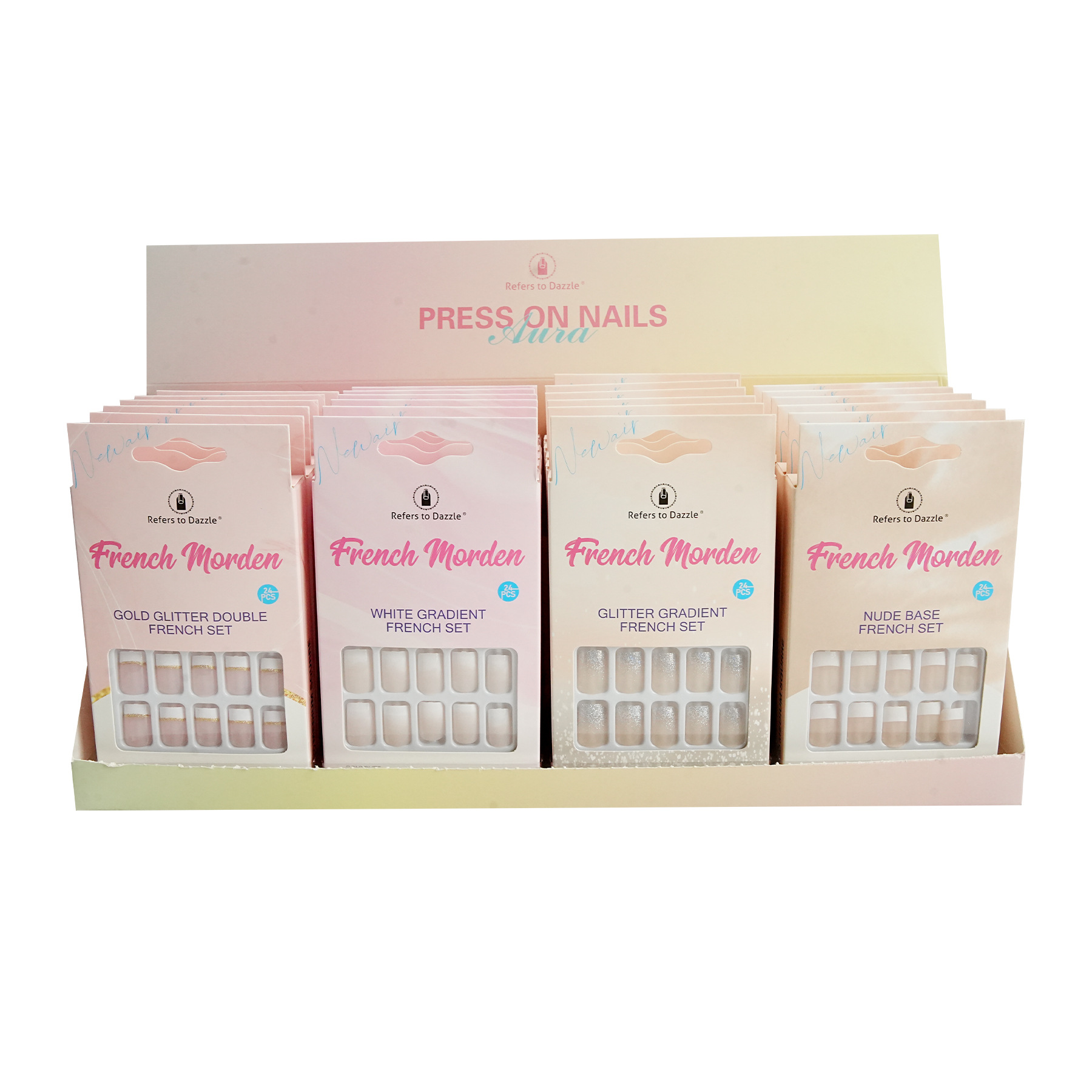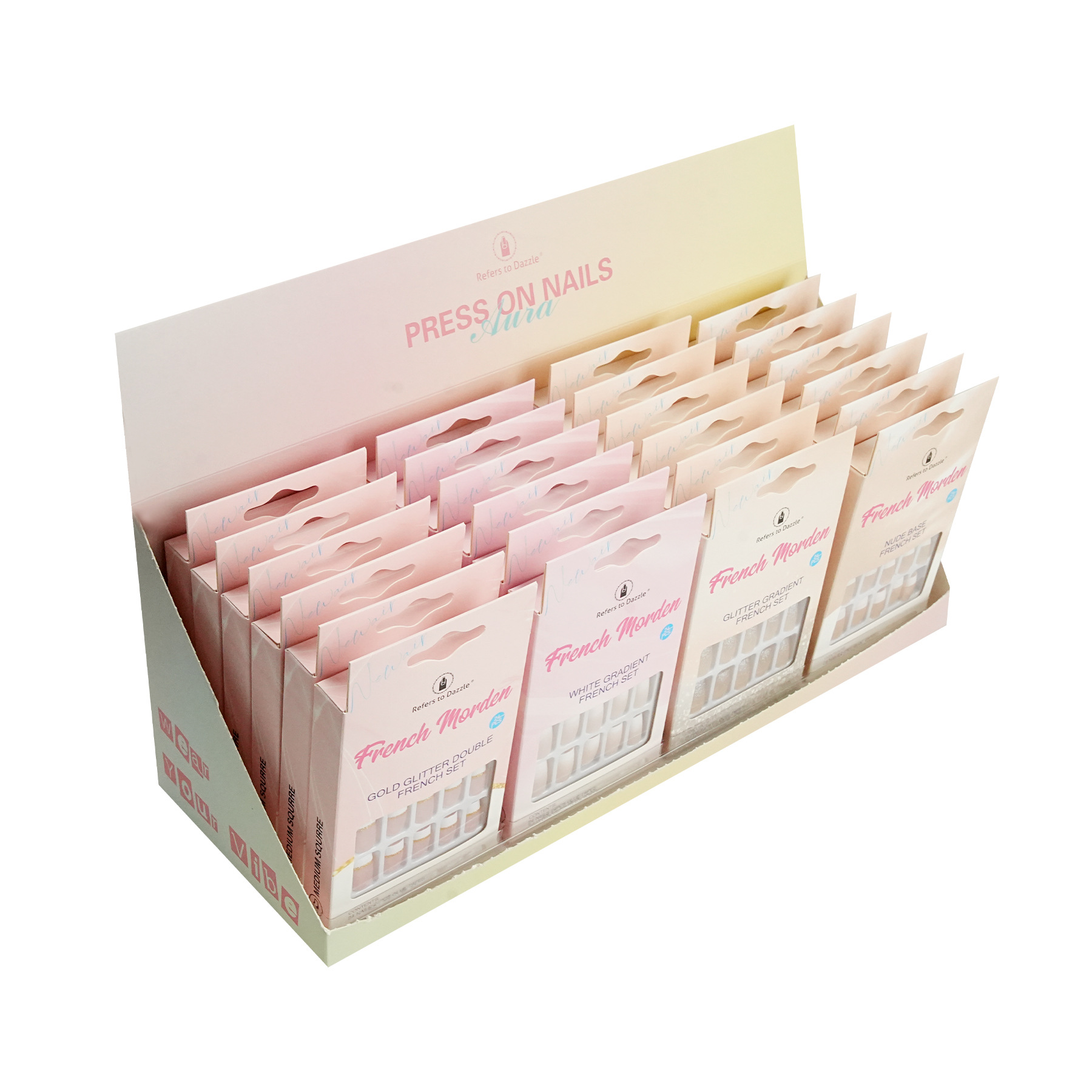 套装穿戴甲批发欧美简约白法式美甲贴片24盒混装带展示盒