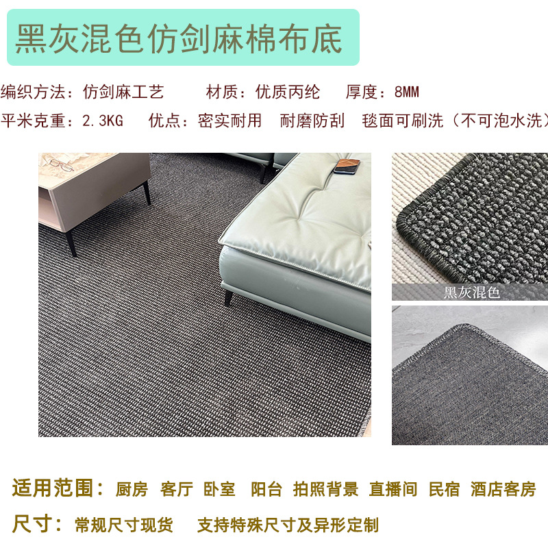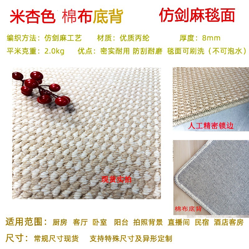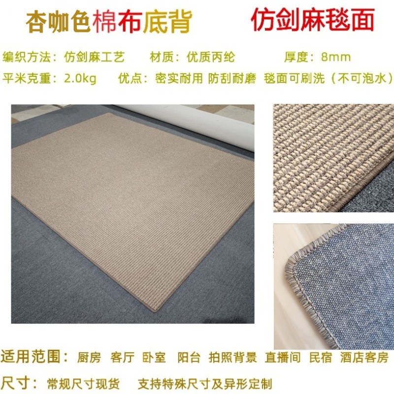 仿剑麻地毯客厅茶几卧室床边飘窗长方形长条地毯地垫