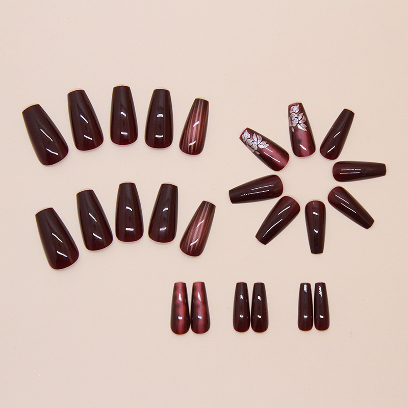 外贸穿戴甲高级感暗红美甲贴片可拆卸假指甲片芭蕾甲美甲24片批发