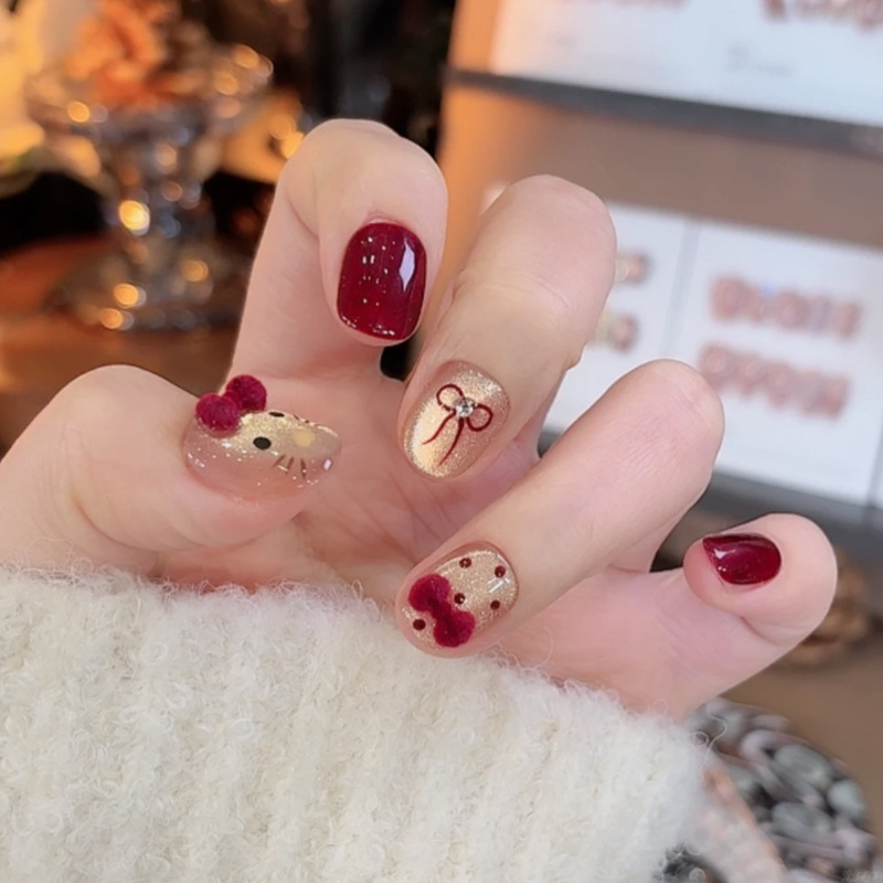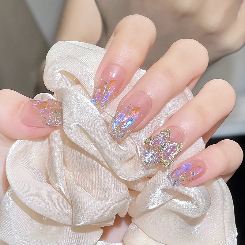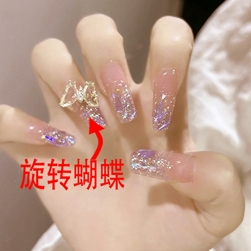 手工穿戴甲批发网红爆款碎钻蝴蝶闪粉美甲甲片成品指甲贴片合集