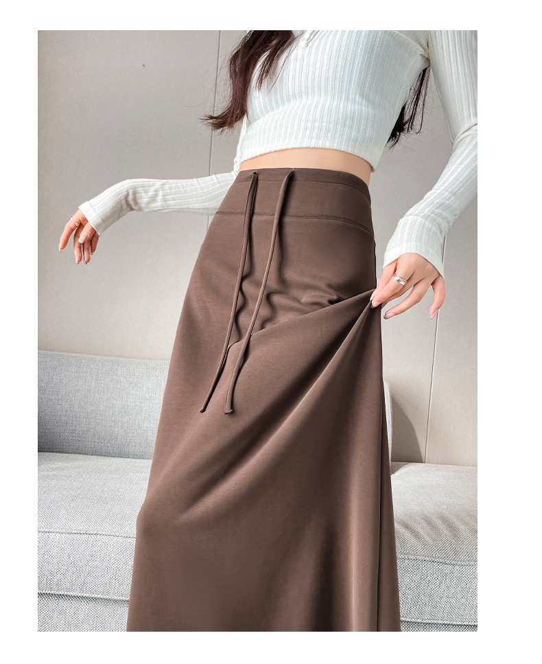 灰色运动半身裙女春秋新款高腰直筒开叉a字半裙垂坠感卫裙长裙子
