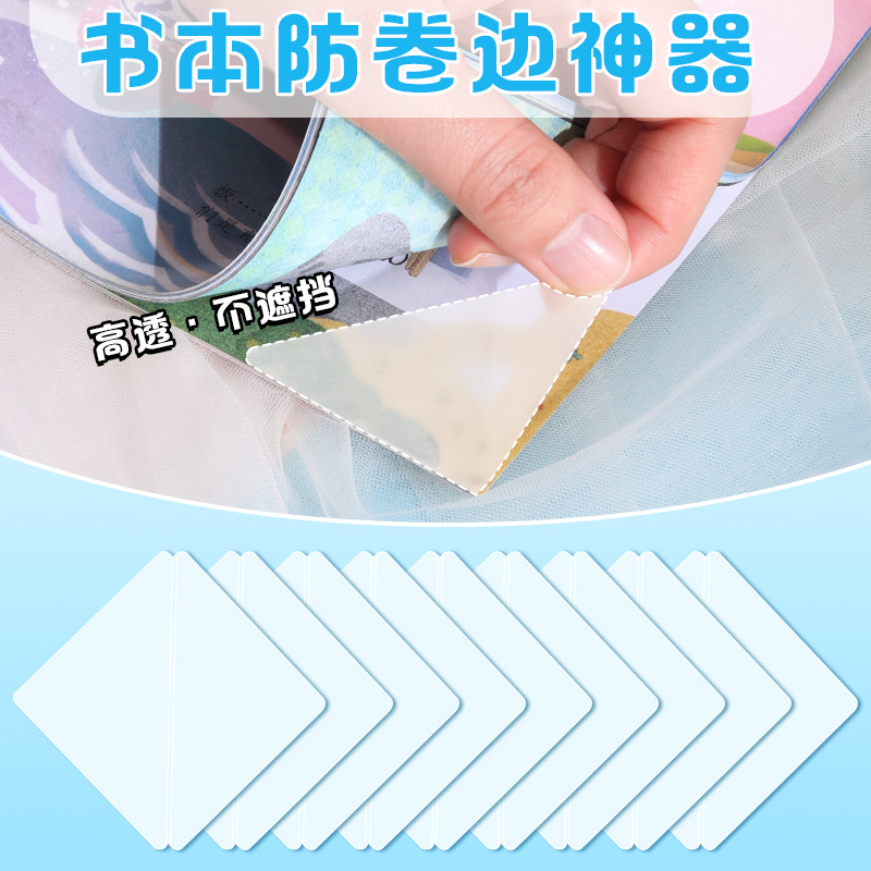 书本防卷边小学生课本作业本子书页护角透明封面保护贴【发100帖