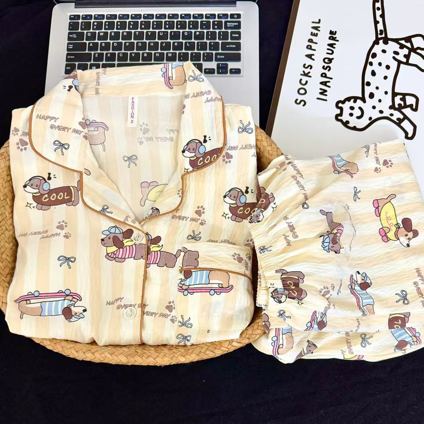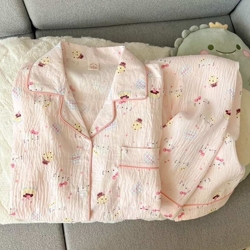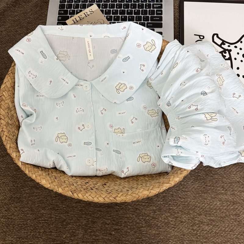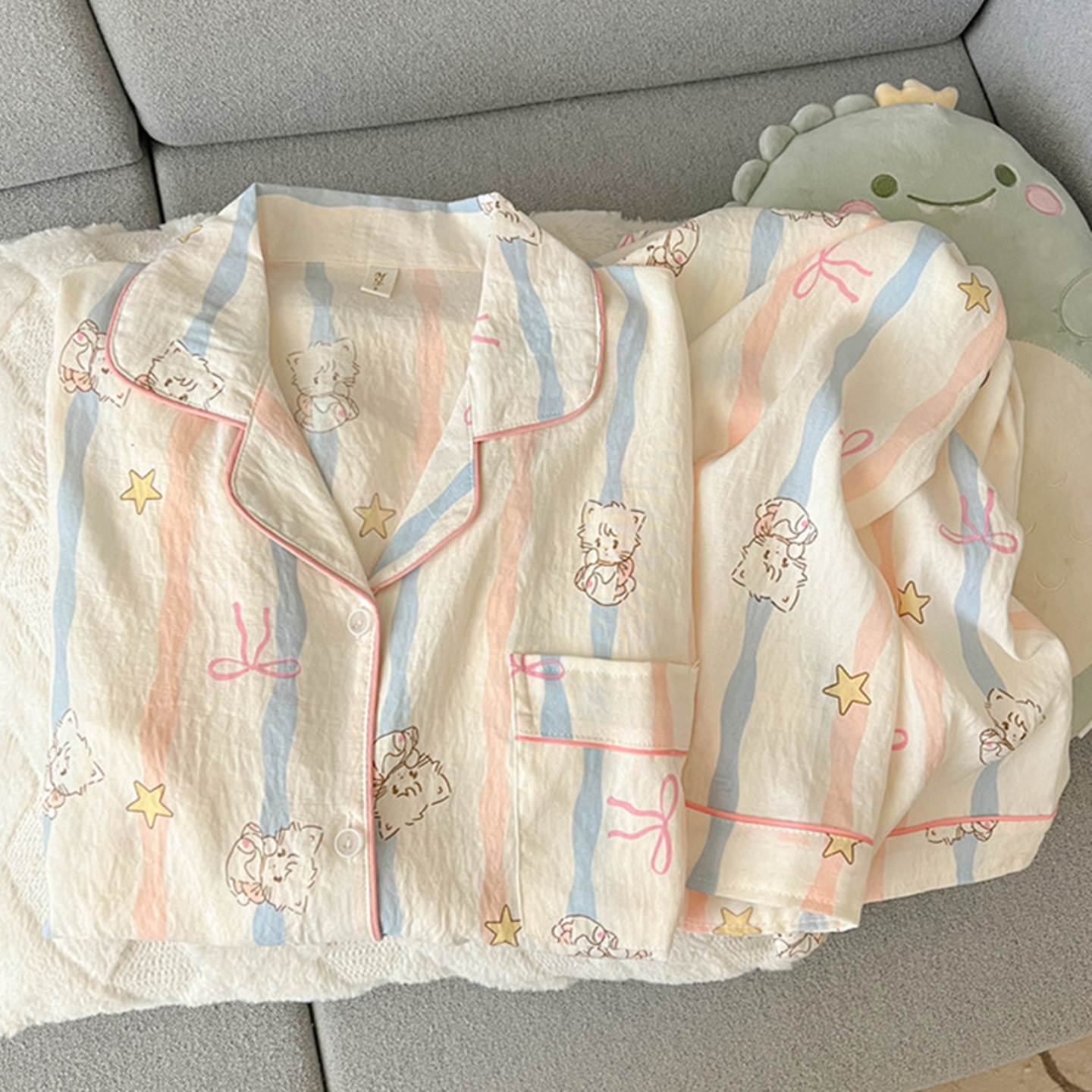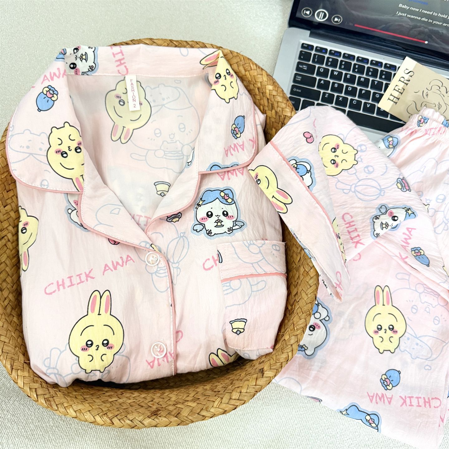 吉伊卡哇乌萨奇睡衣女款春秋夏季云朵棉纱长袖学生大码小八家居服