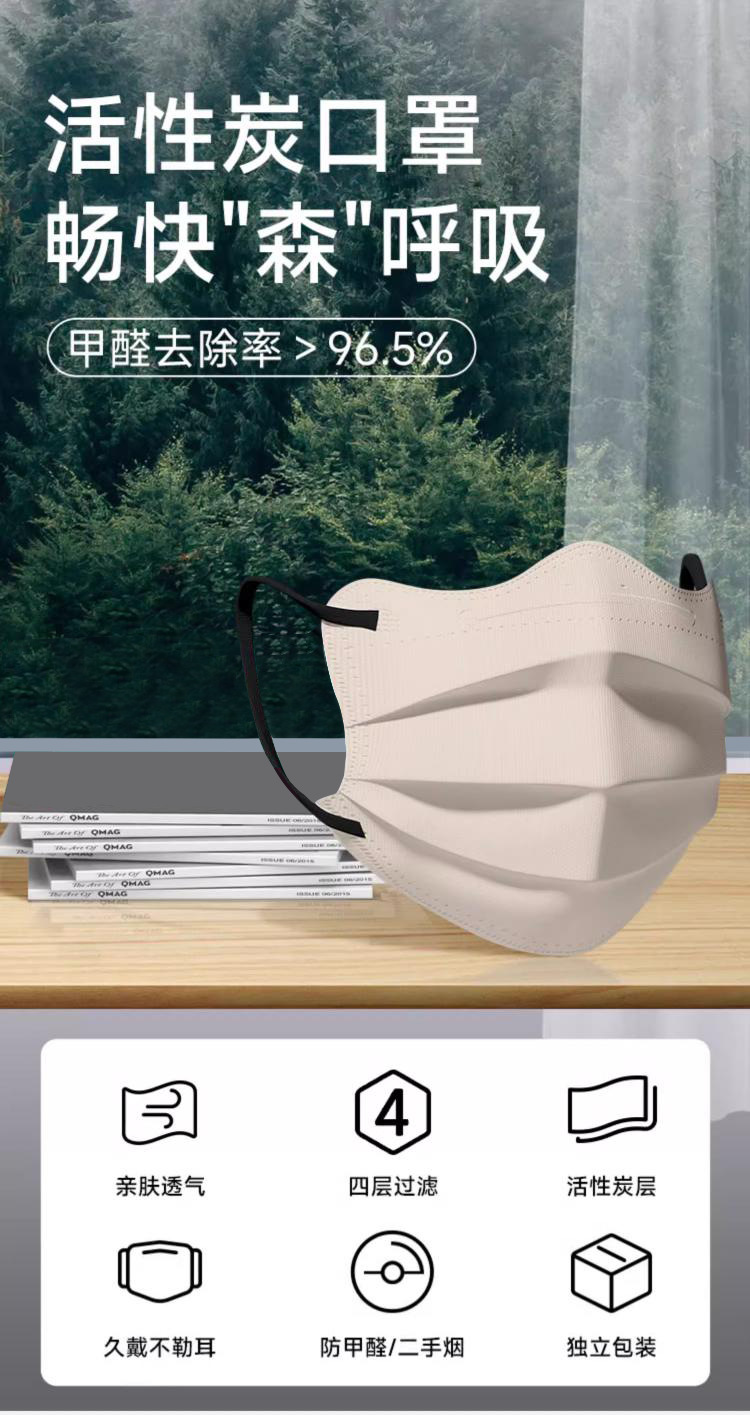 四层加厚活性炭孕妇口罩放二手烟专用防油烟活性炭防甲醛异味高颜