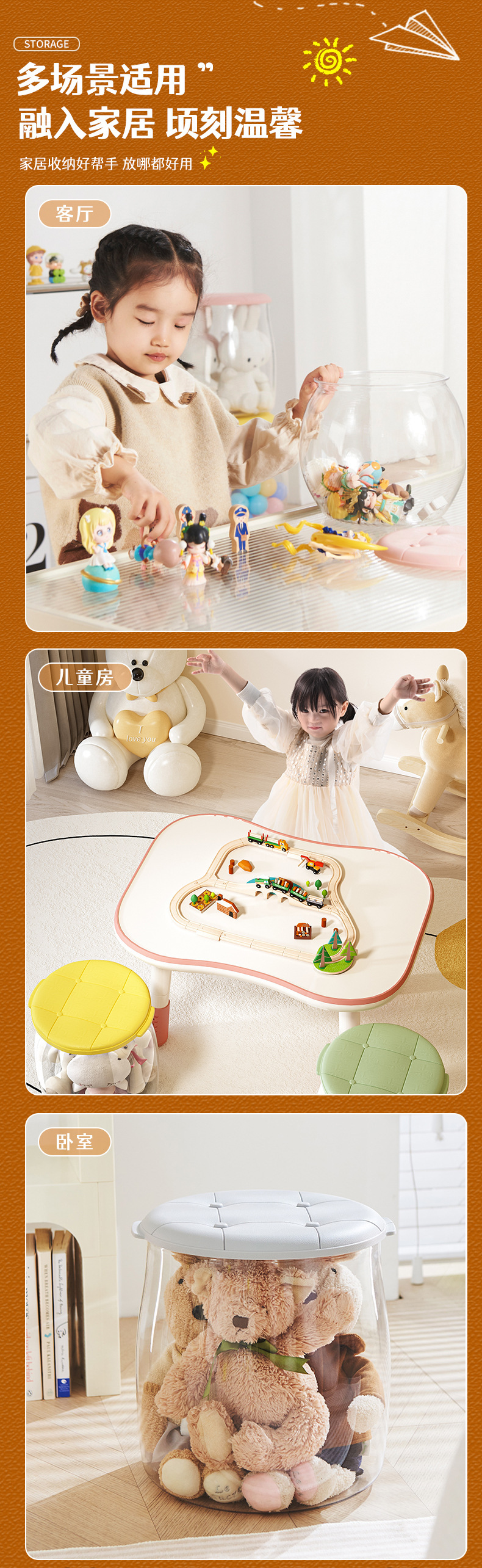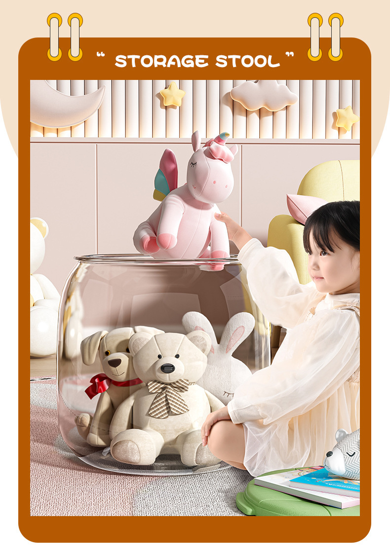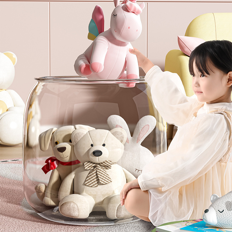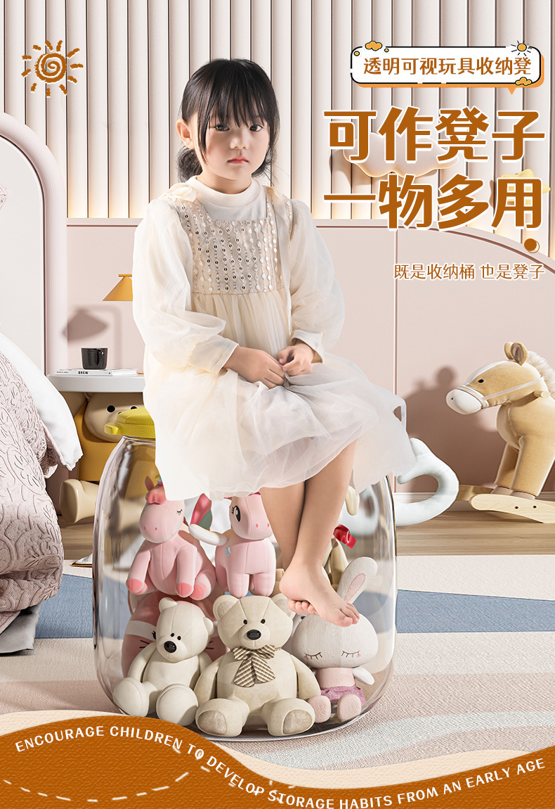 杂物收纳凳娃娃超大玩偶坐透明儿童储物凳收纳箱收纳桶毛绒玩具可