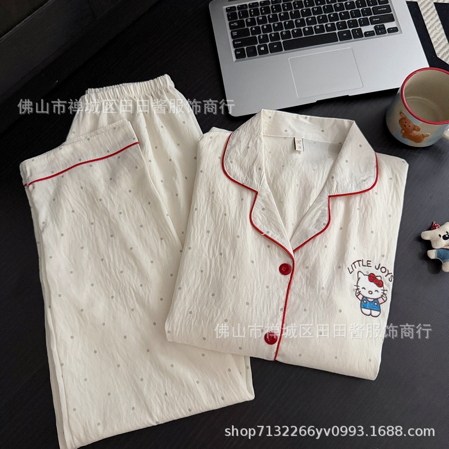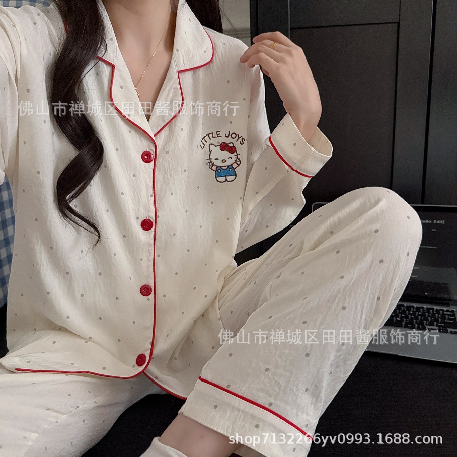 批发外贸跨境秋季新款直播爆款女士翻领印花休闲卡通睡衣家居服女
