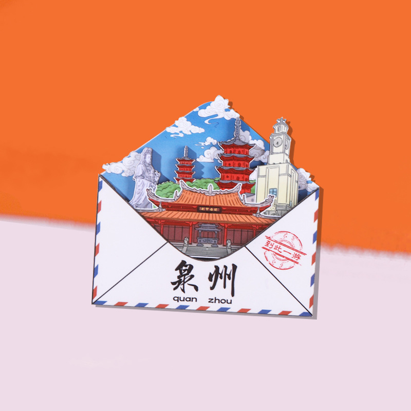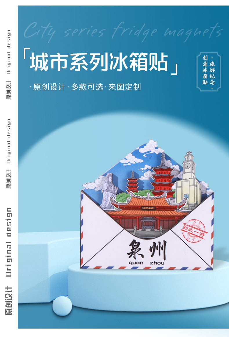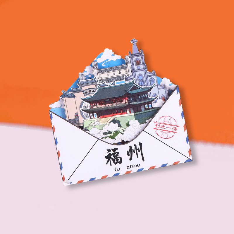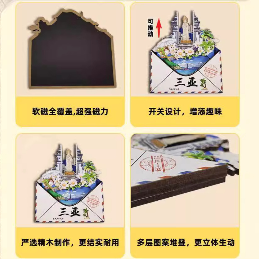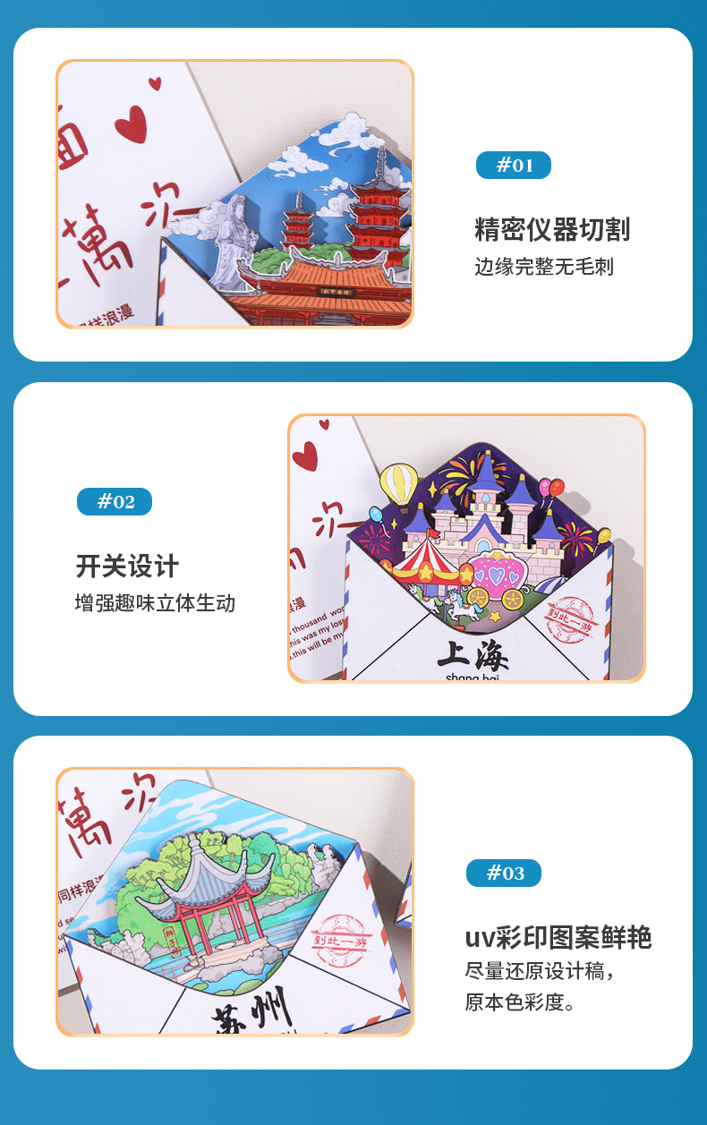信封款冰箱贴定制城市冰箱磁吸贴抽拉式磁贴立体创意旅游纪念品