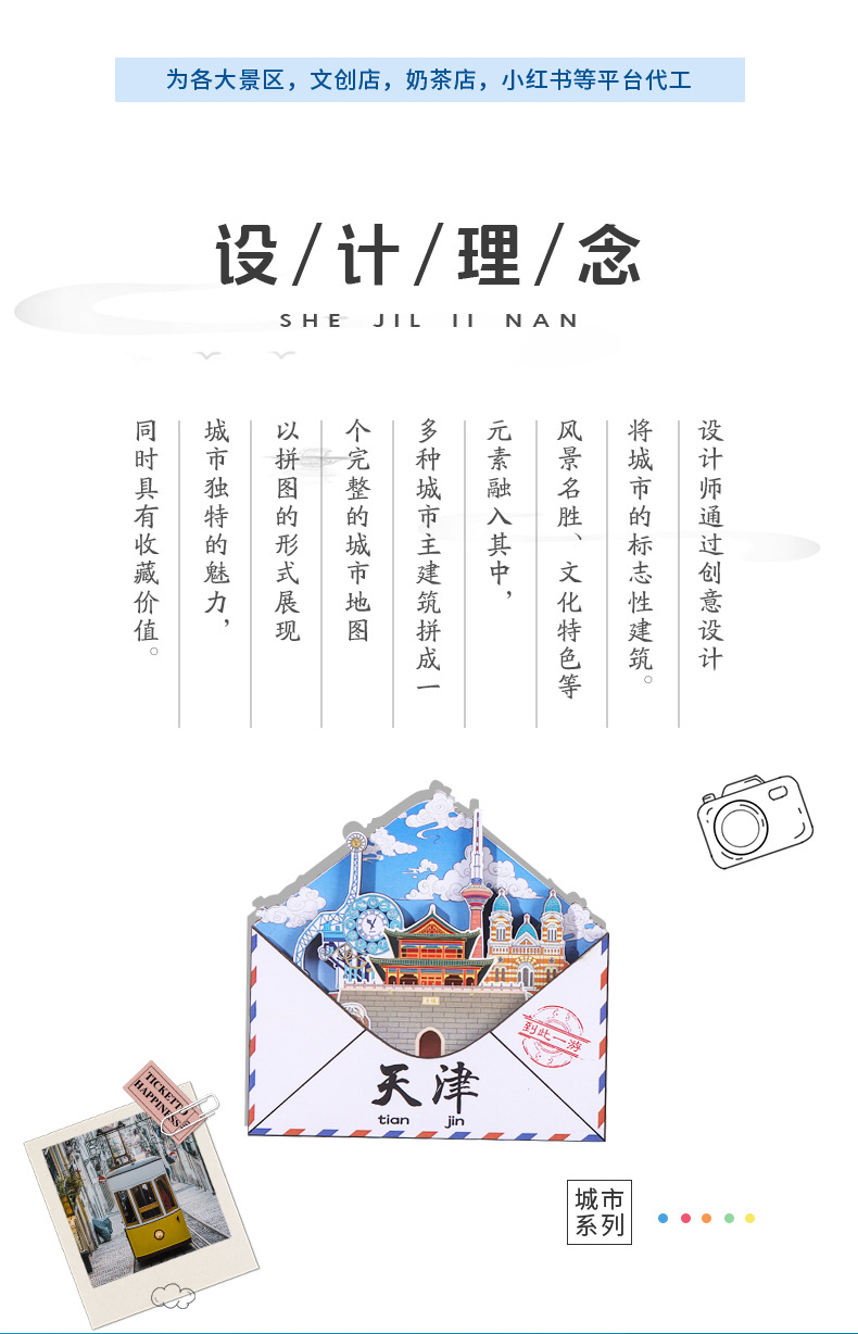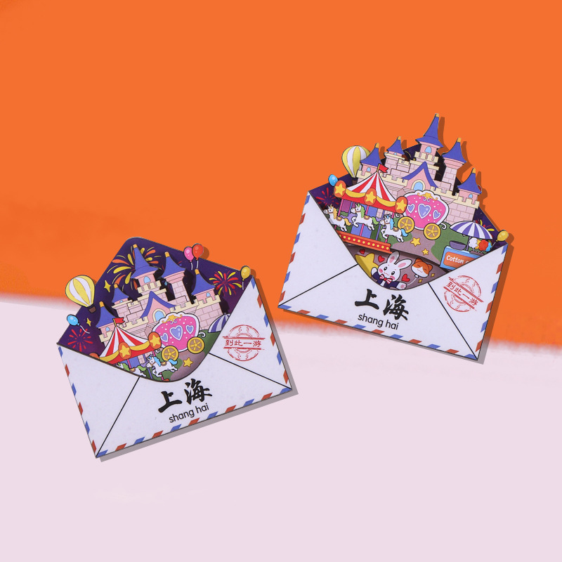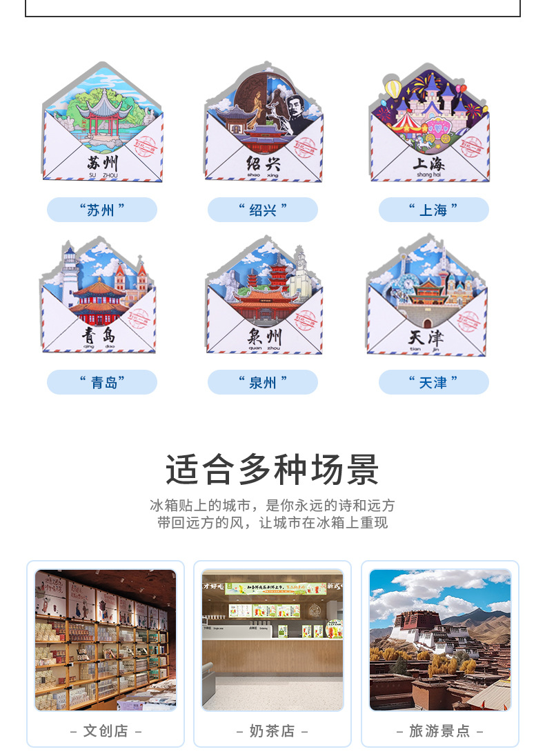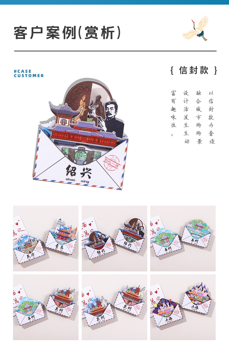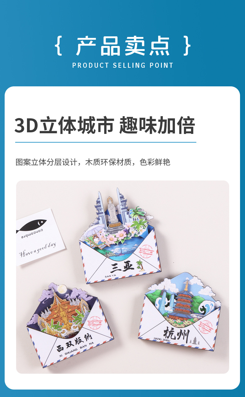 信封款冰箱贴定制城市冰箱磁吸贴抽拉式磁贴立体创意旅游纪念品